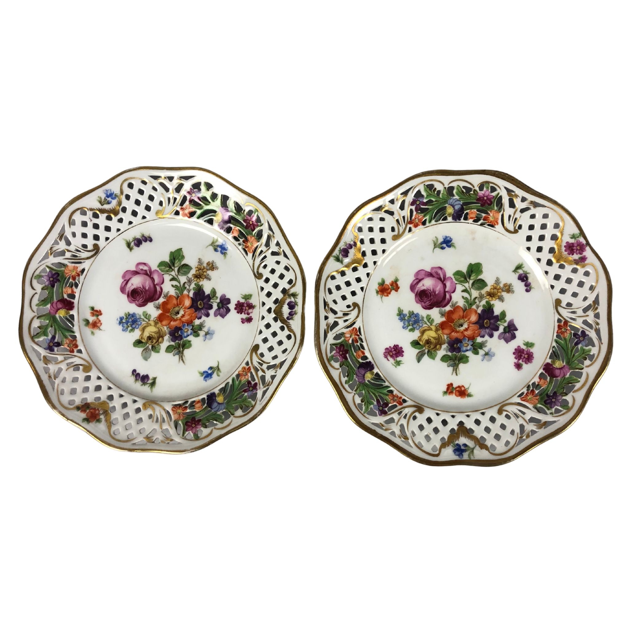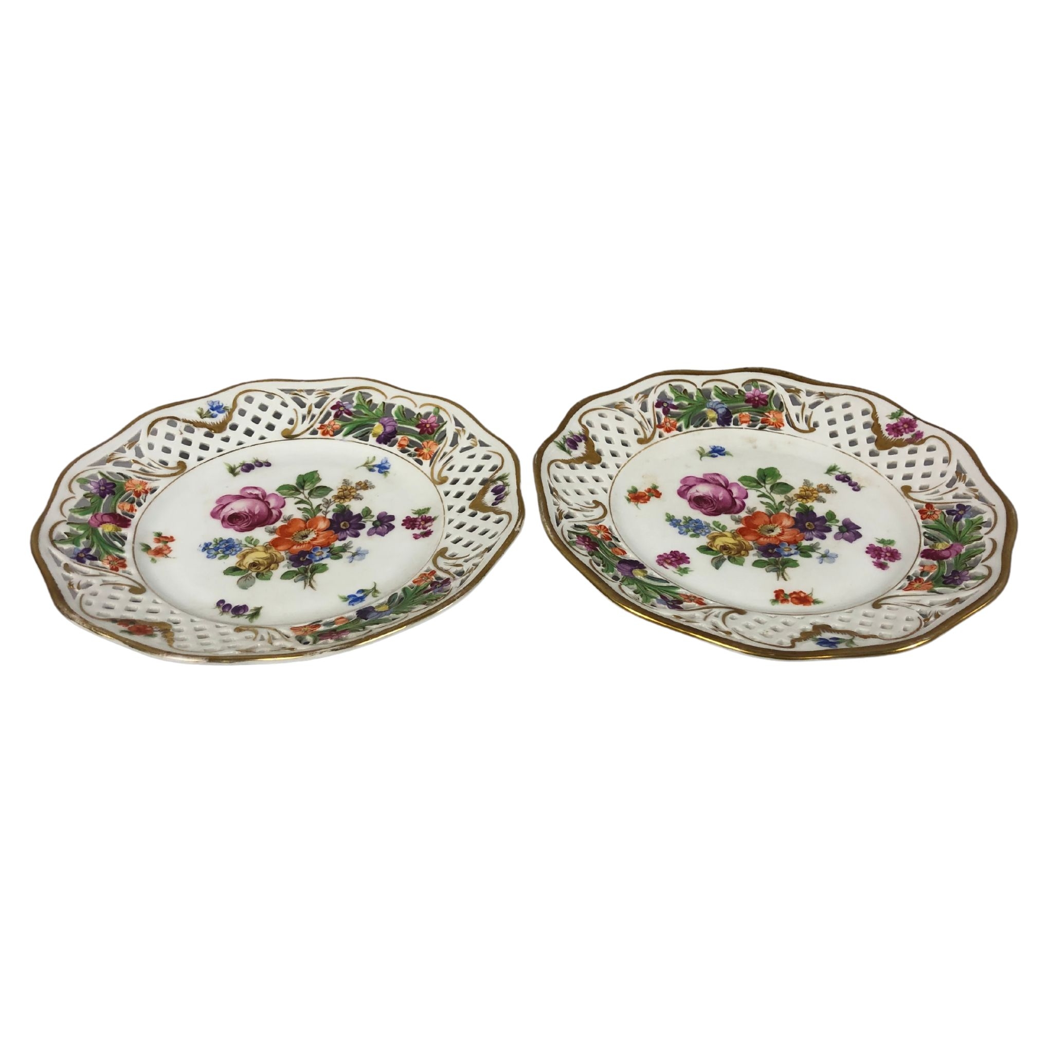 Two Dresden Lattice Plates with Floral Design