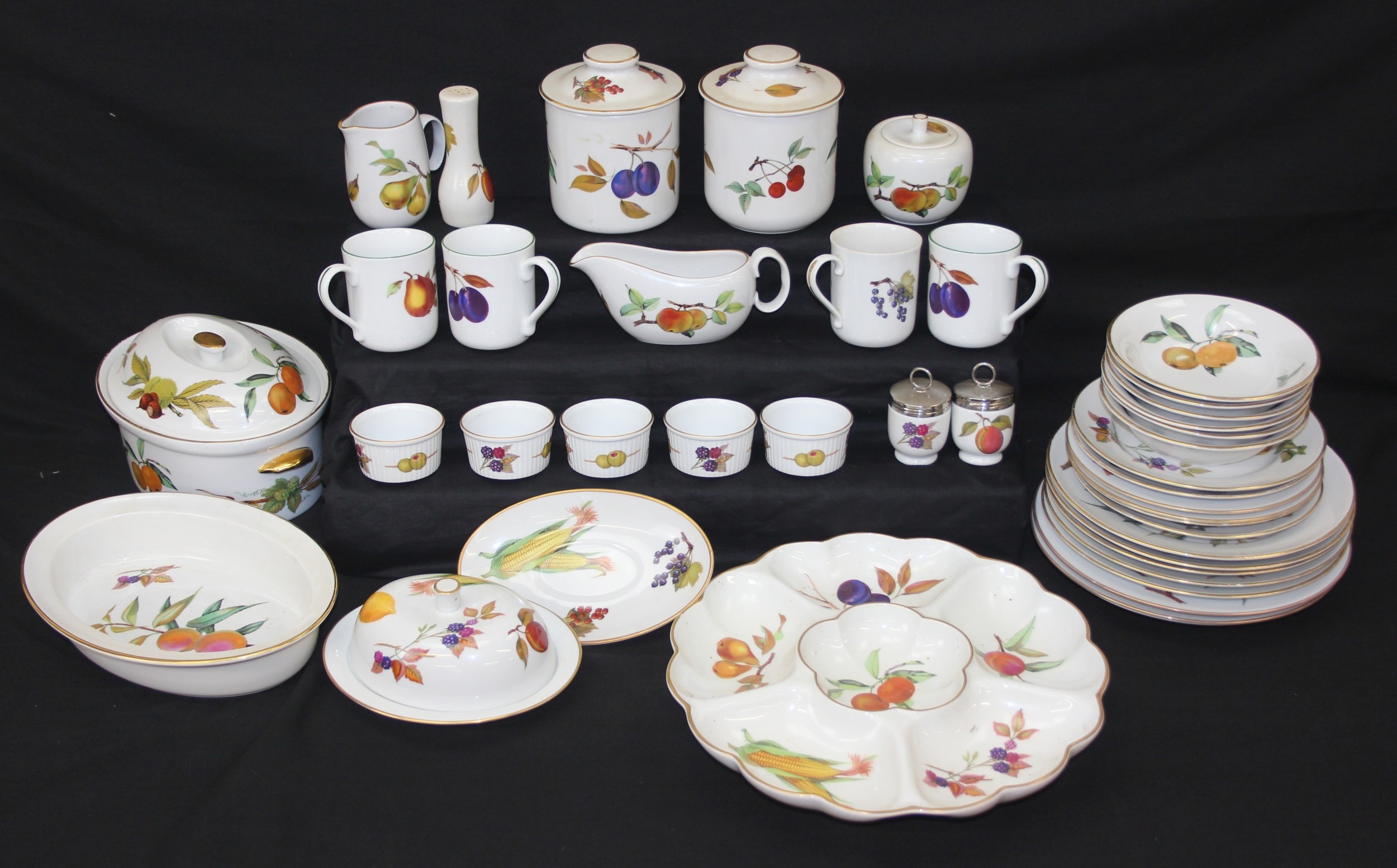 Royal Worcester Evesham & Evesham Vale, an extensive dinner and tea service comprising of plates, bowls, tureens, dishes mugs etc