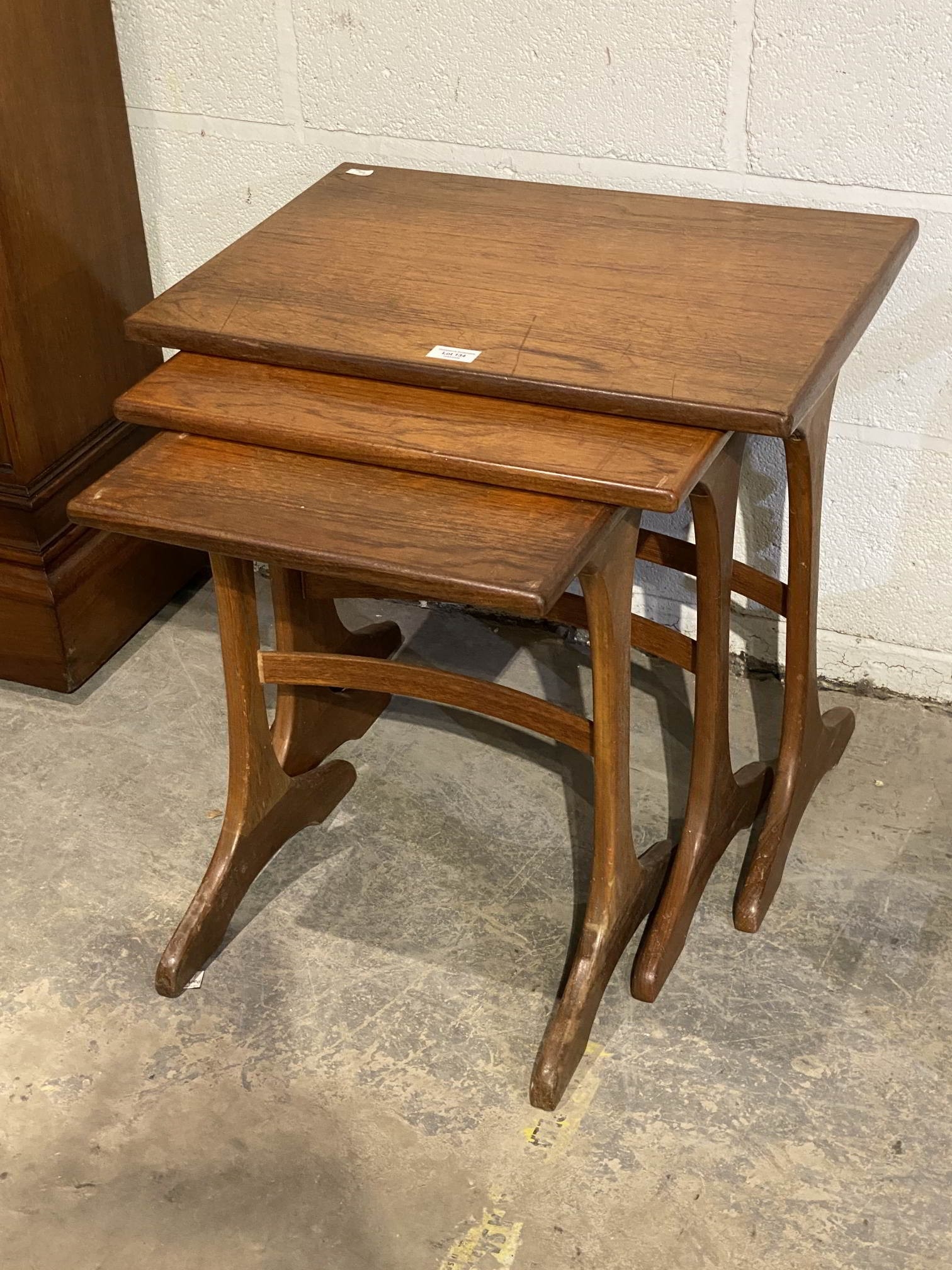Mid century G Plan nest of 3 teak tables 52H 56W 41D