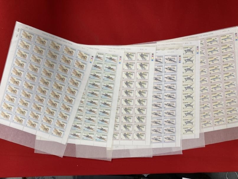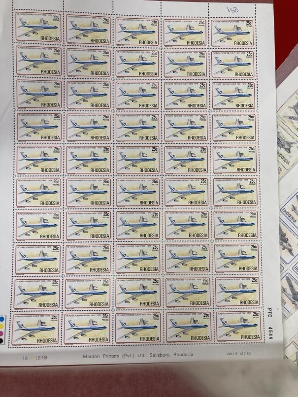 Stamps: Commonwealth, Rhodesia, history f flight 1978, SG570 - SG575, mint unhinged, six sheets of fifty, 4c, 5c, 7c, 9c, 17c and 25c.