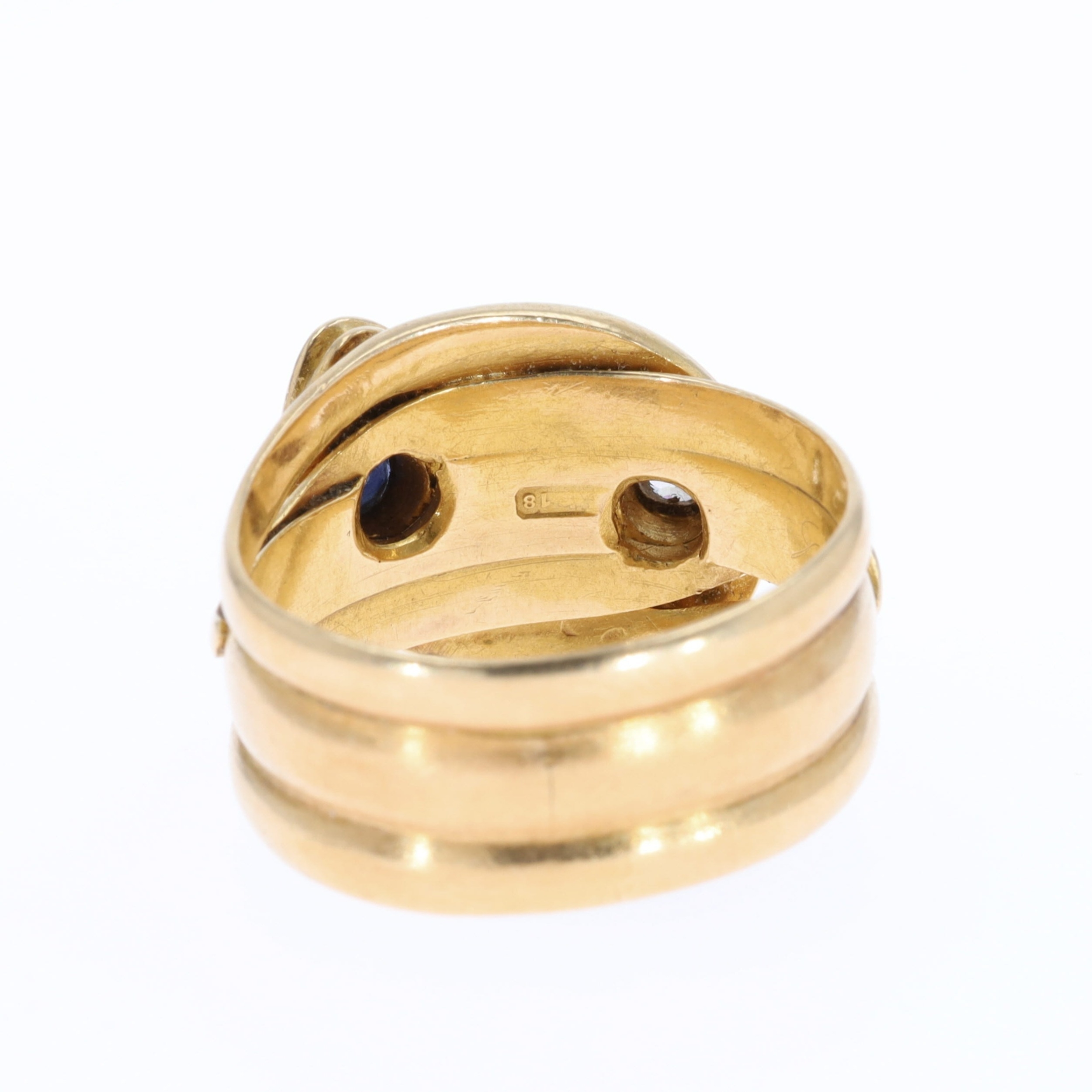 Victorian Sapphire and Diamond 18ct Gold Double Coiled Snake Ring. This ring is hallmarked 18ct gold. UK Finger size R 1/2. Weighs 10.2g UK.