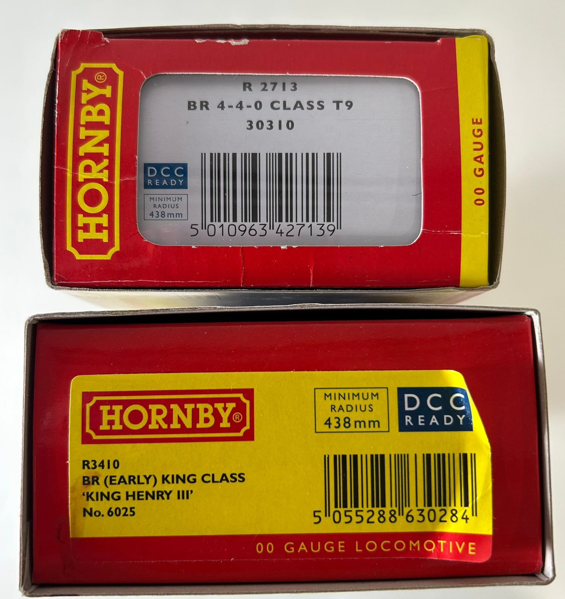 2 Hornby OO Guage Locomotives R3410 BR (Early) King Class 'King Henry 111' No.6025. Together with a R2713 BR 4-4-0 Class T9 30310. Both boxed and DCC Ready. GC