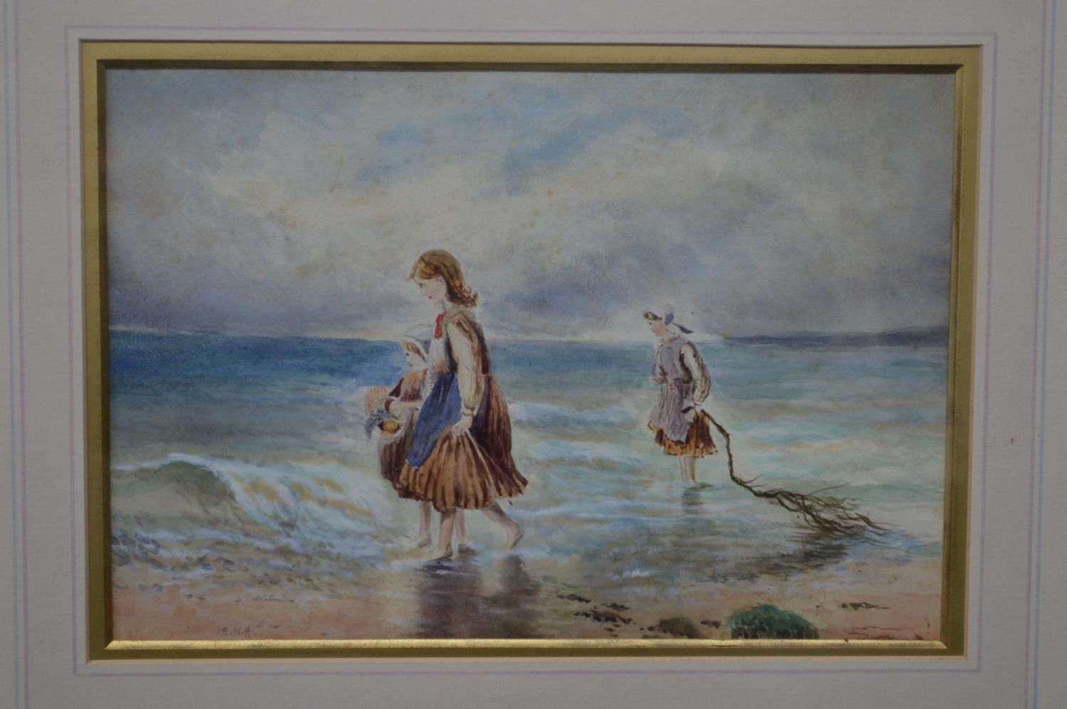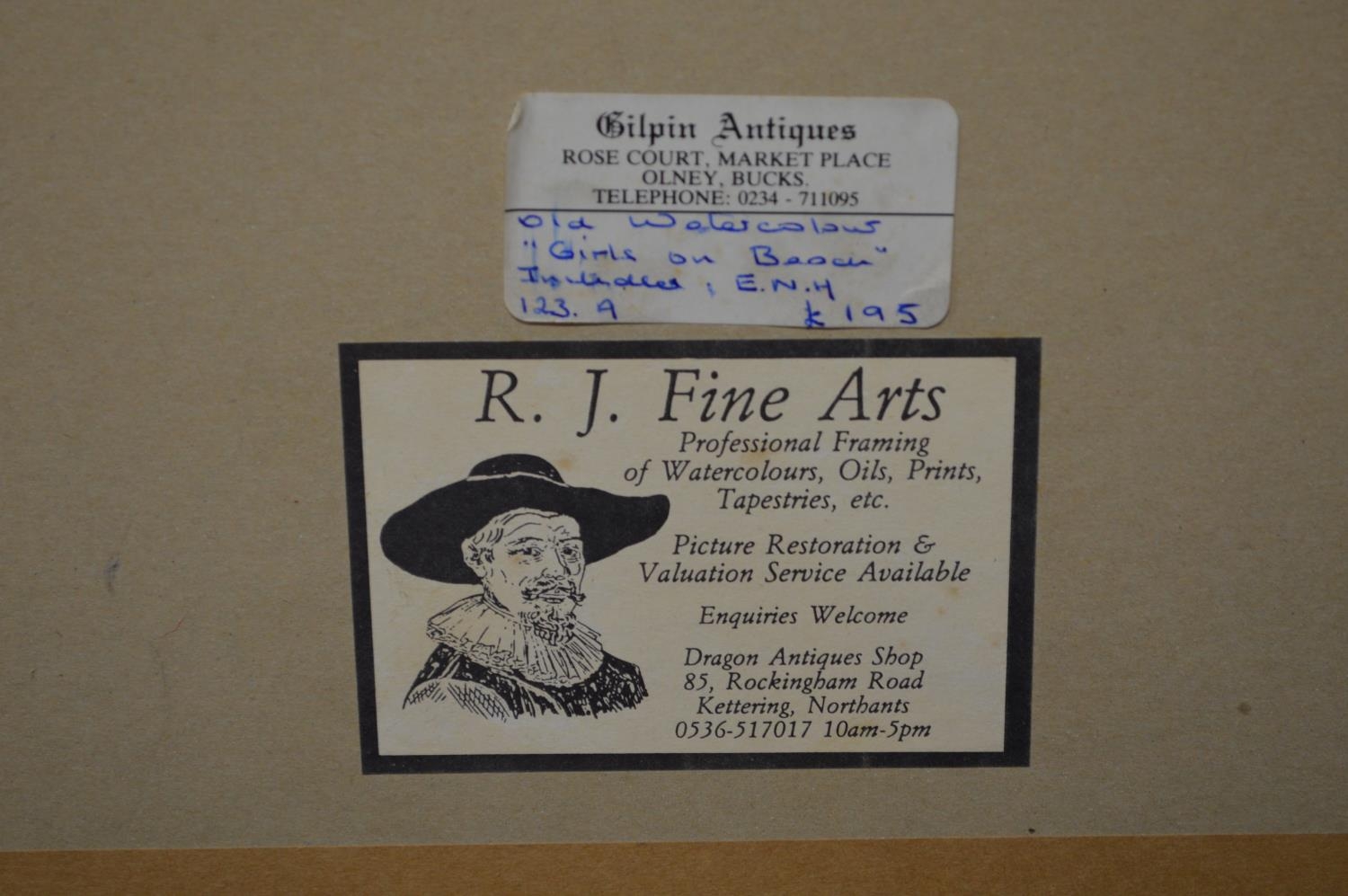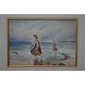 Edward William Hereford, RN (1884-1915) watercolour titled Girls On Beach, No. 123 and signed EWH, in glazed gilt frame - 12.75" x 8.75"