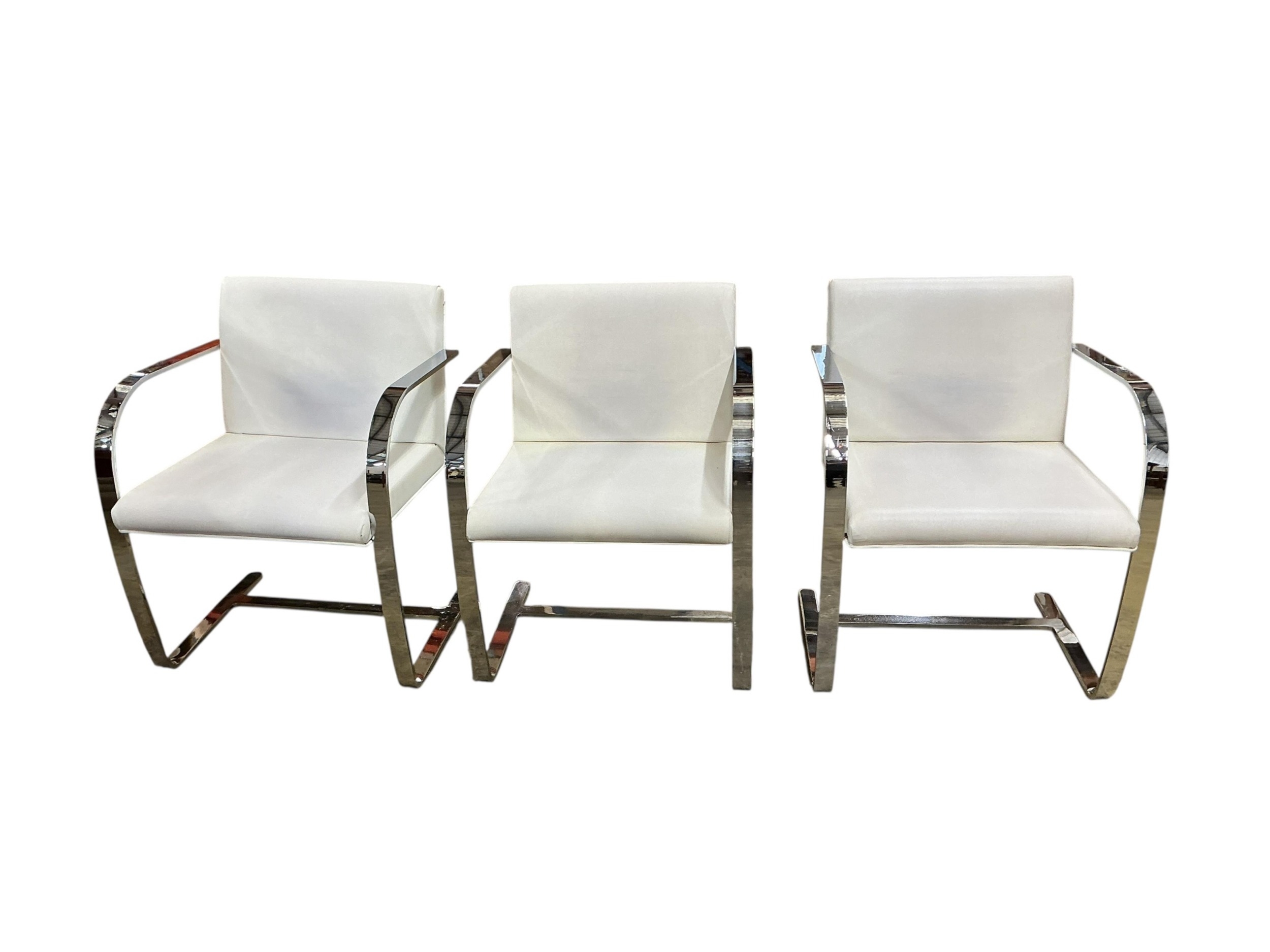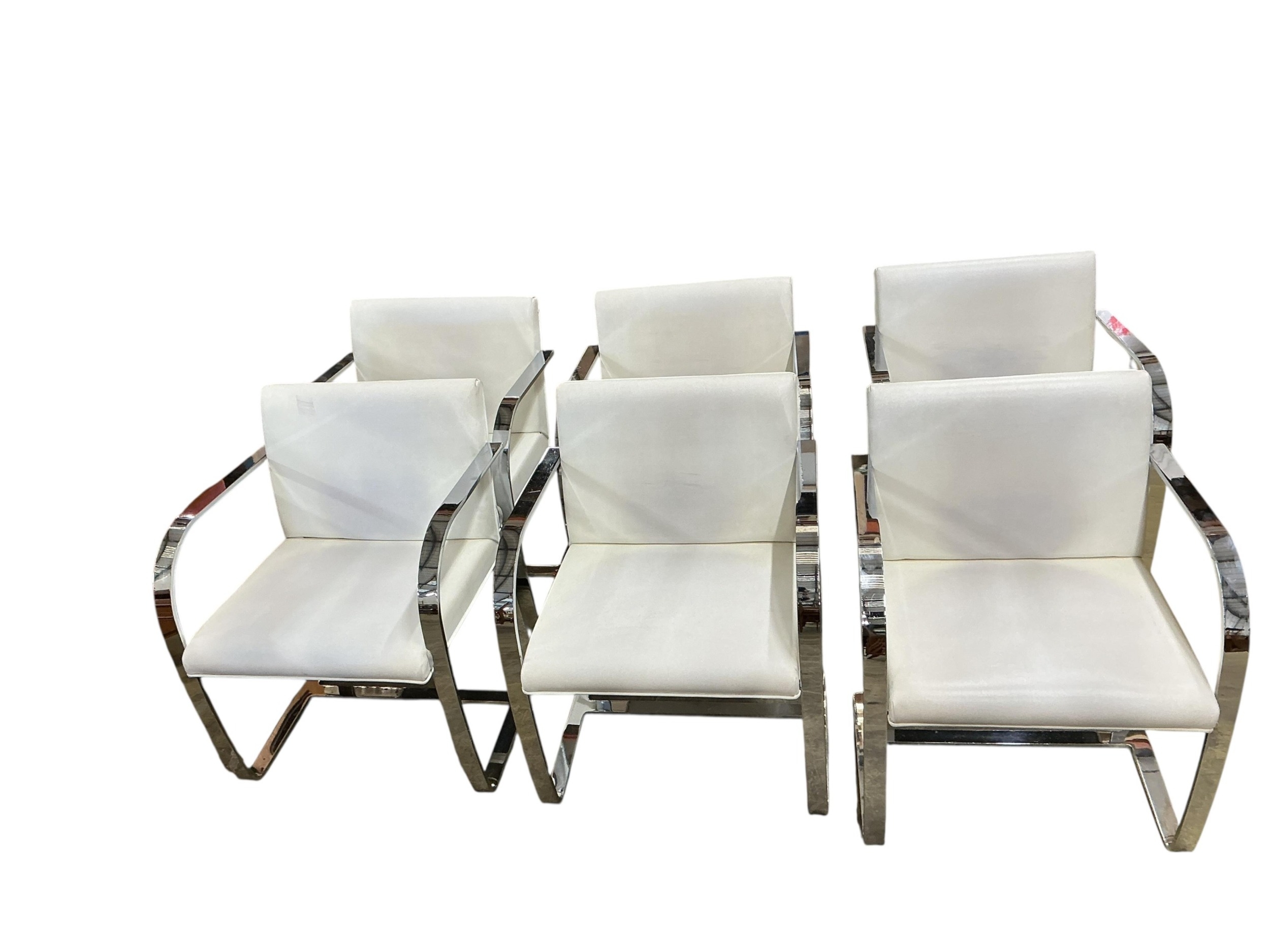 Six Knoll BRNO style leather and chrome flat bar chairs, width 58cm, depth 50cm, height 76cm