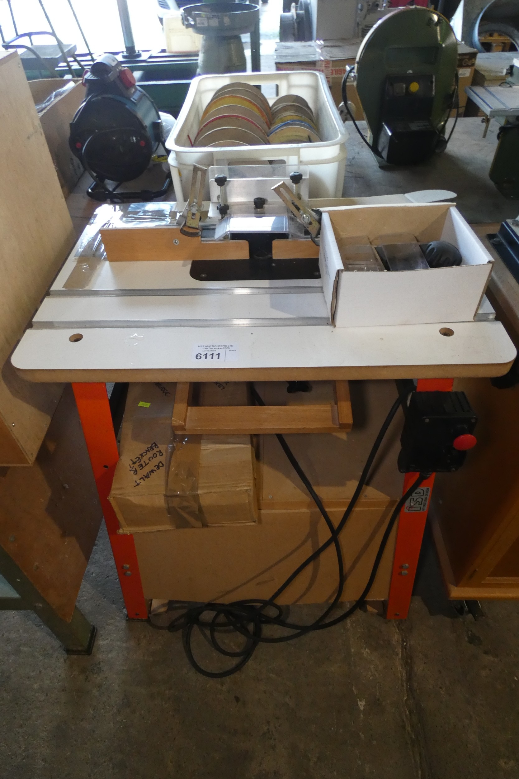 1 x ISD router table fitted with a Elu MOF 177/02 router 240v and supplied with various accessories including mounting brackets for a Dewalt router