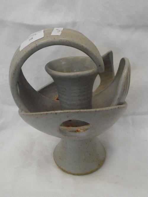 A STUDIO POTTERY CANDLE HOLDER BY ALAN WARD