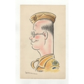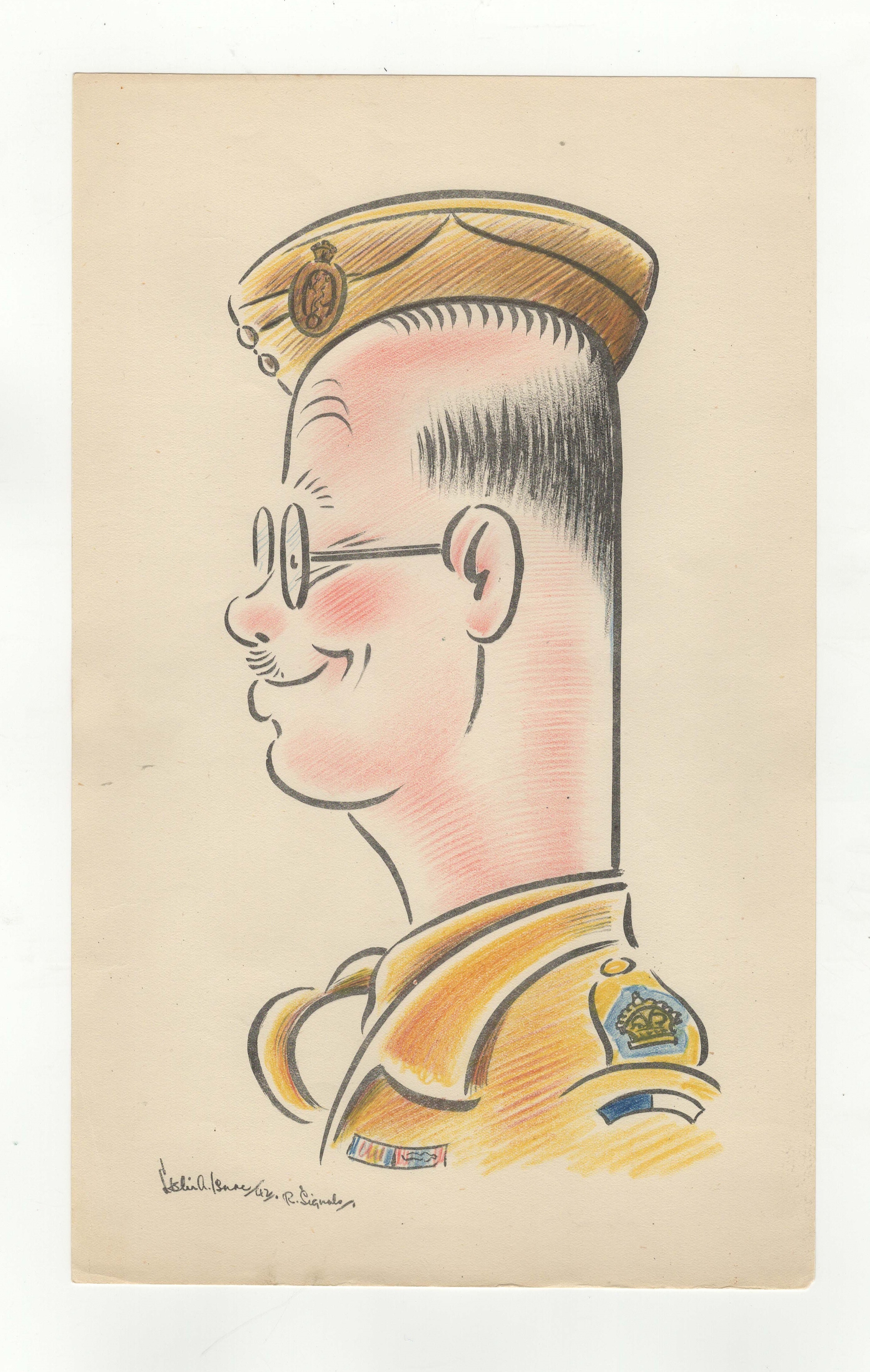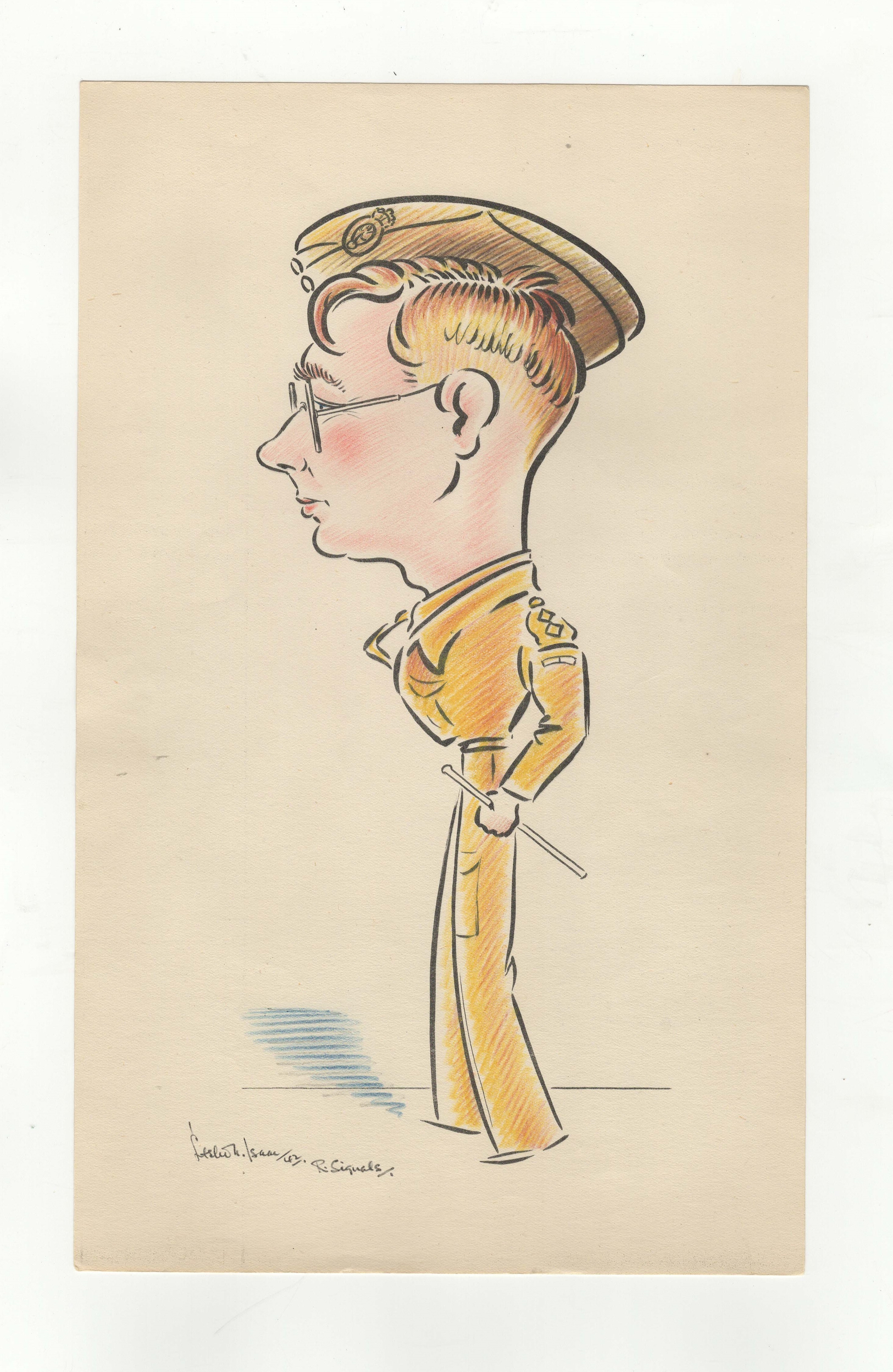 British WWII Caricatures of the Officers of the 3rd Trades Training Battalion, Royal Corps of Signals. Drawn by Signalman Leslie A. Isaac, sketched in colour pencil in original folder. An excellent period selection. (20 Caricatures in total)
