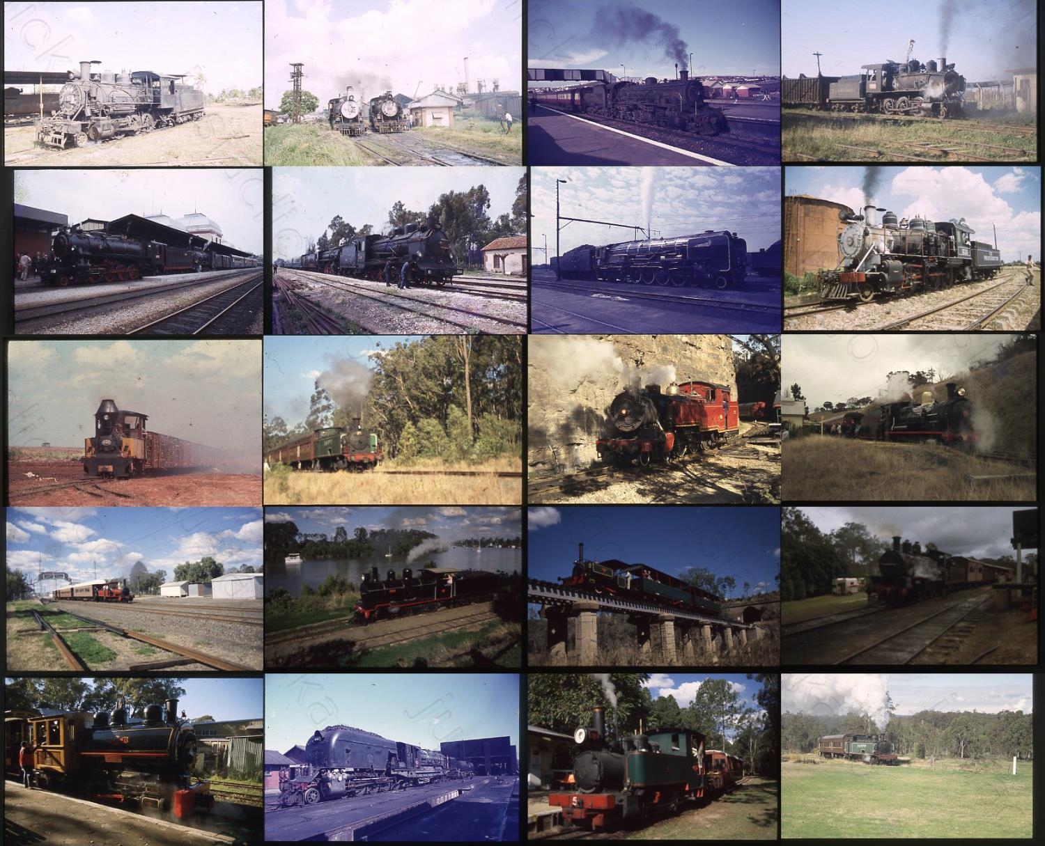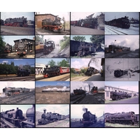 Railway. World Steam. Approx. 170 x 35mm colour slides, on mostly Agfa film stock with some Fuji, housed in a plastic slide storage box. The slide box isn't marked, however the slides identified include SOUTH AFRICA, GREECE and SOUTH AMERICA. There may be other countries not identified. Including working steam, around a fifth of the box probably late 1960's early 1970's the rest are 1990's. There are some captions and they aren't very legible! Sold with copyright, sample illustrated.