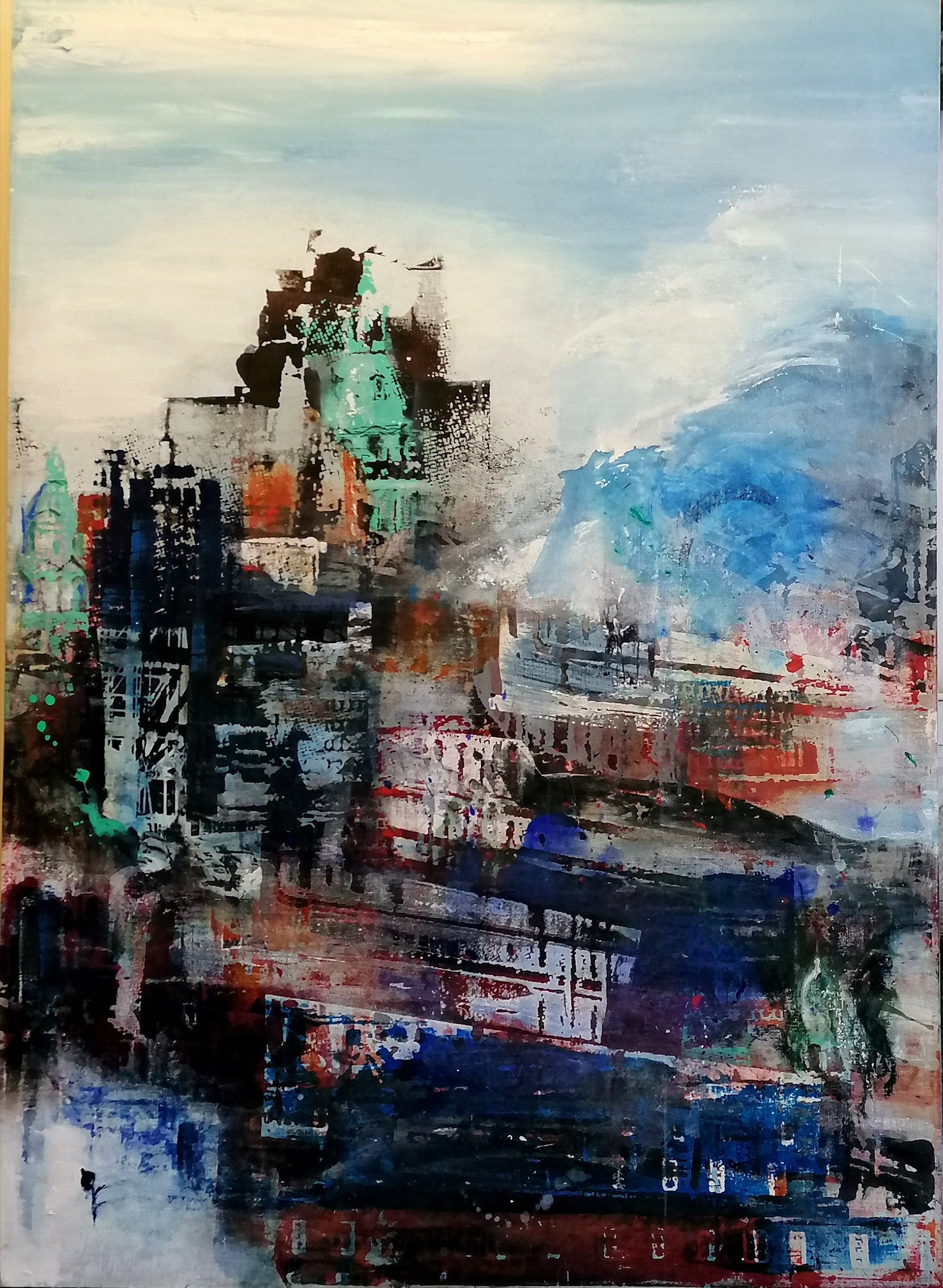 Judith Uehling (b.1935) large oil on canvas of a London vista (signed and dated to the reverse) - 100cm x 140cm
