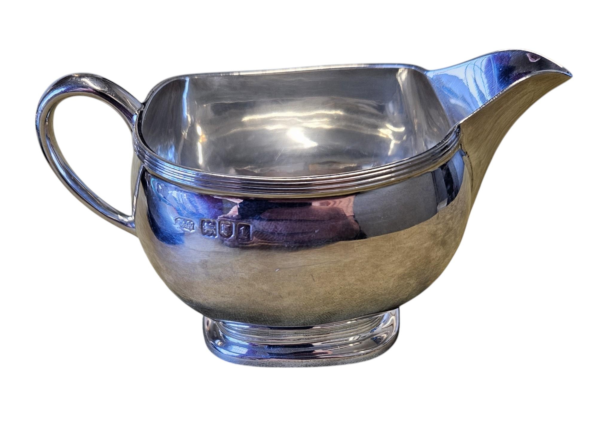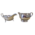 A London Silver milk Jug along with a Sheffield Silver sauce Boat, 265 grams approx. TB 7 cm approx.