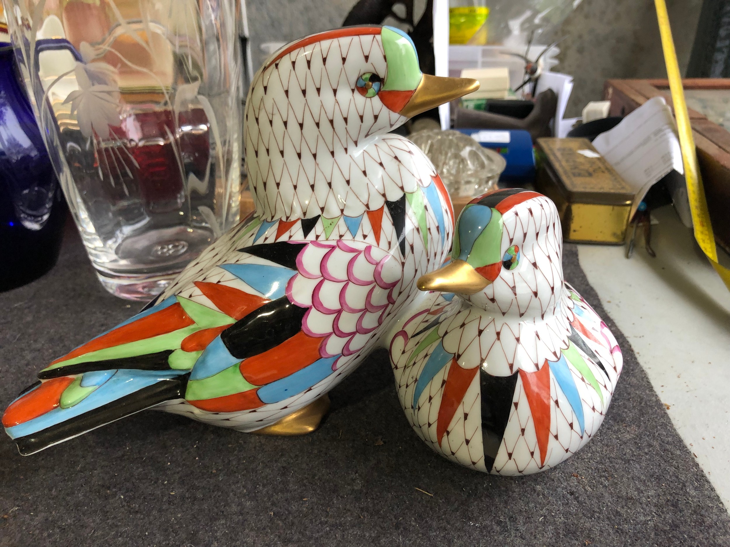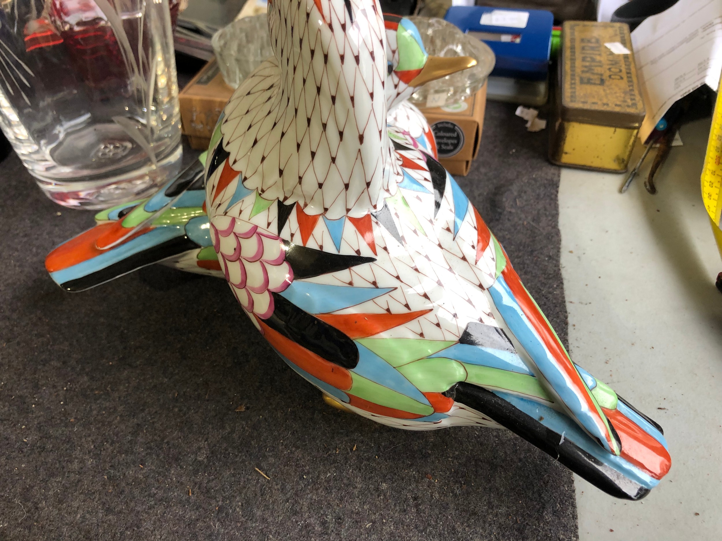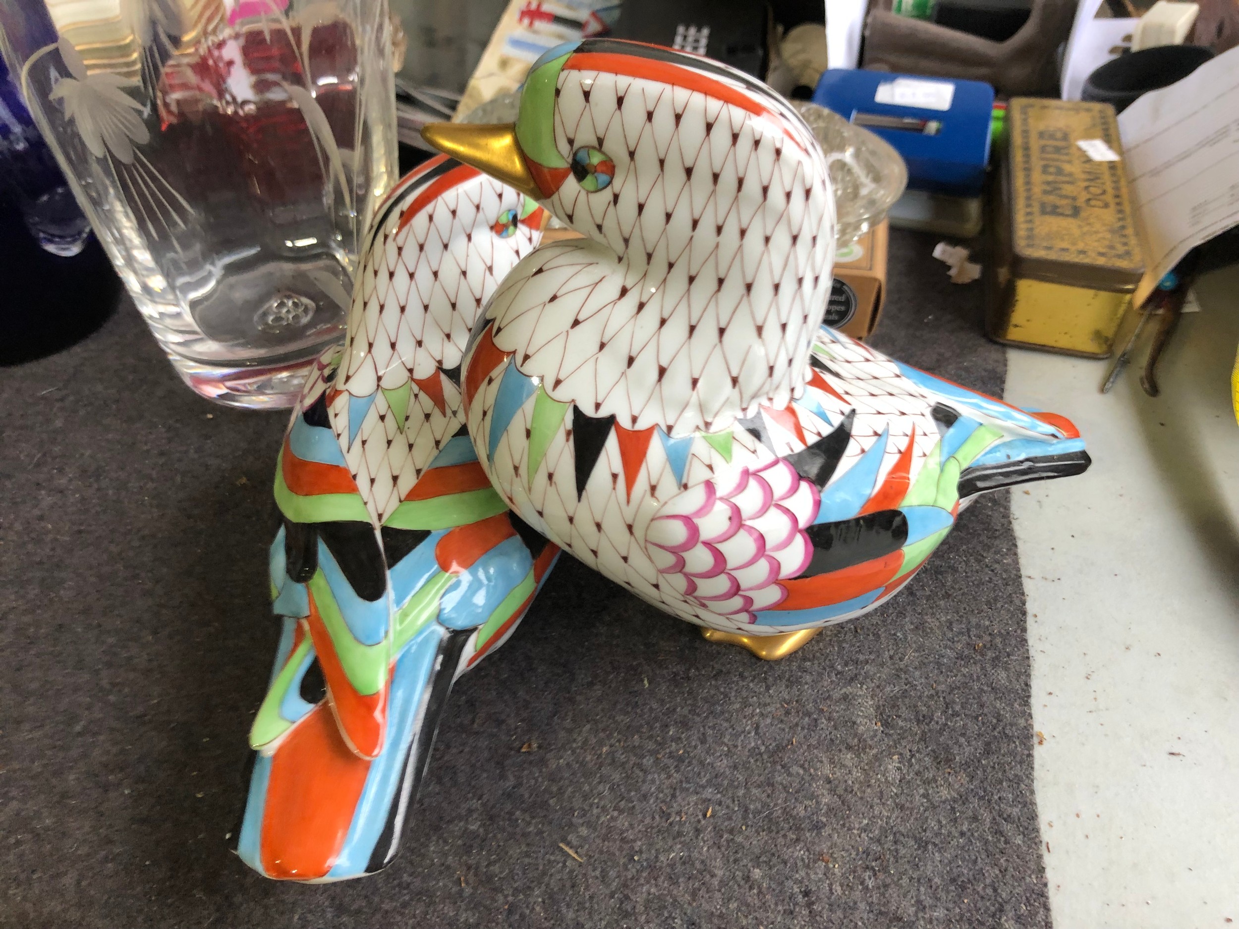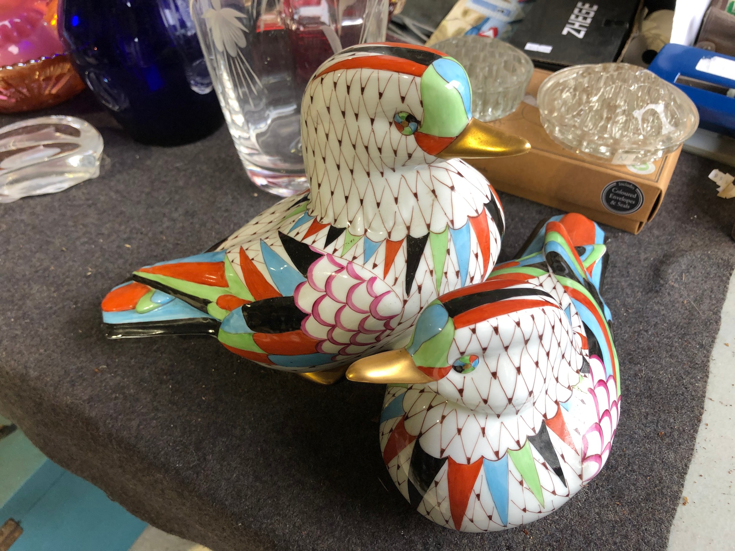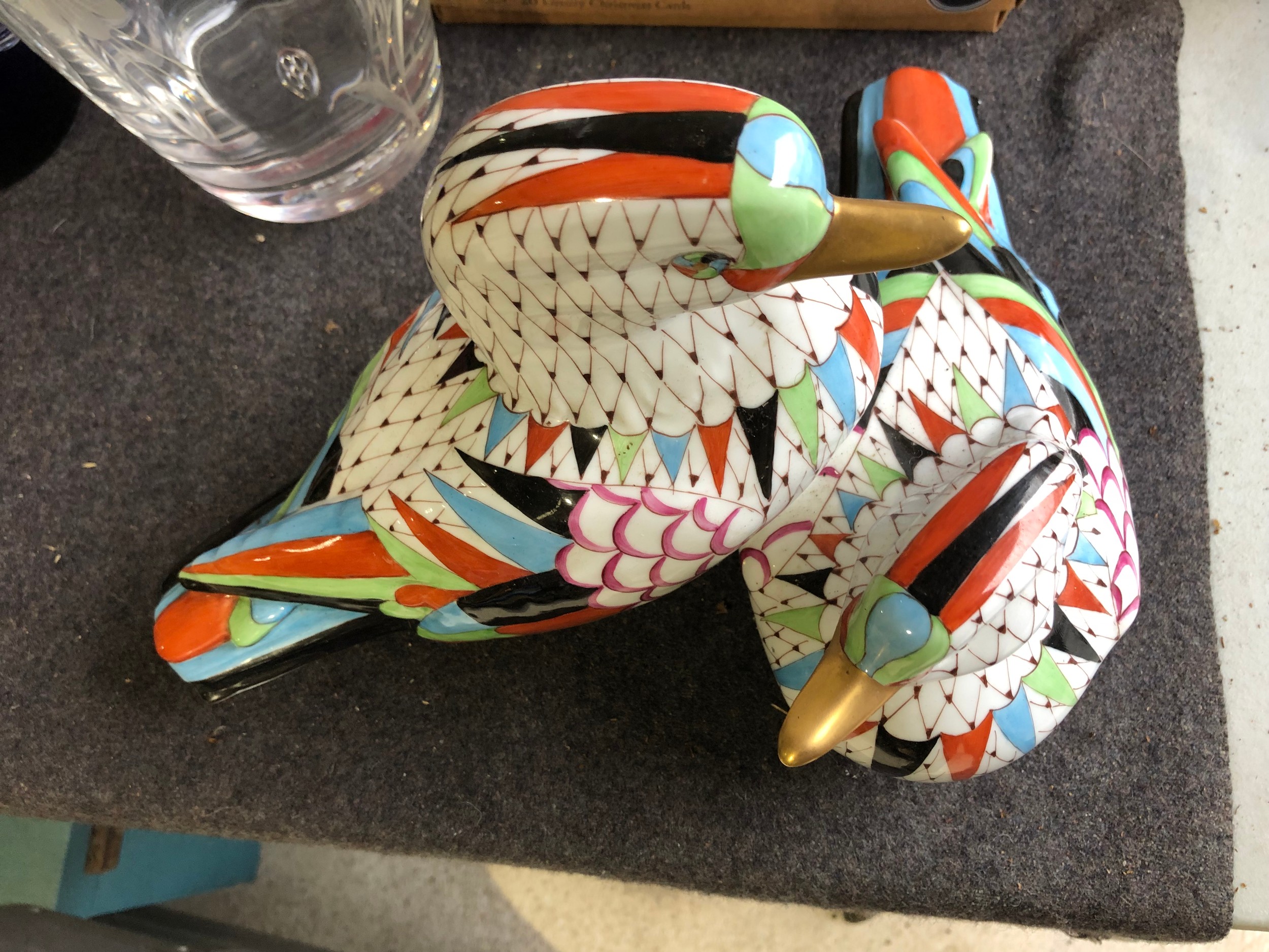 Large pair of joined ducks by Hollohaza of Hungary. Damage to tail of one duck