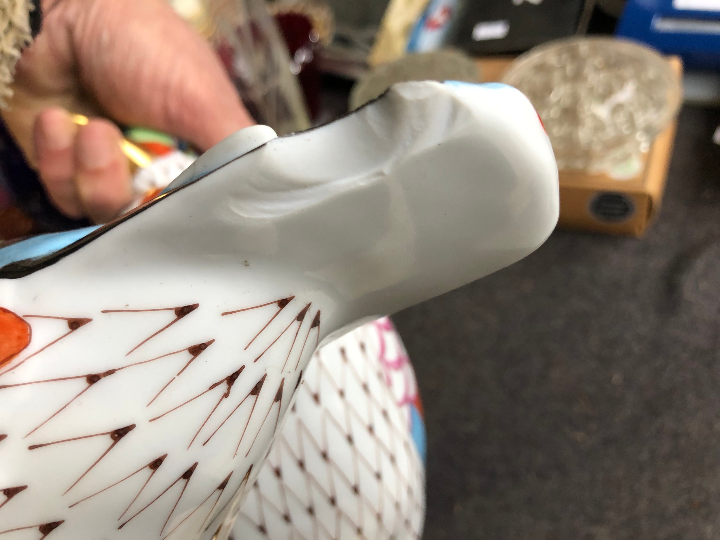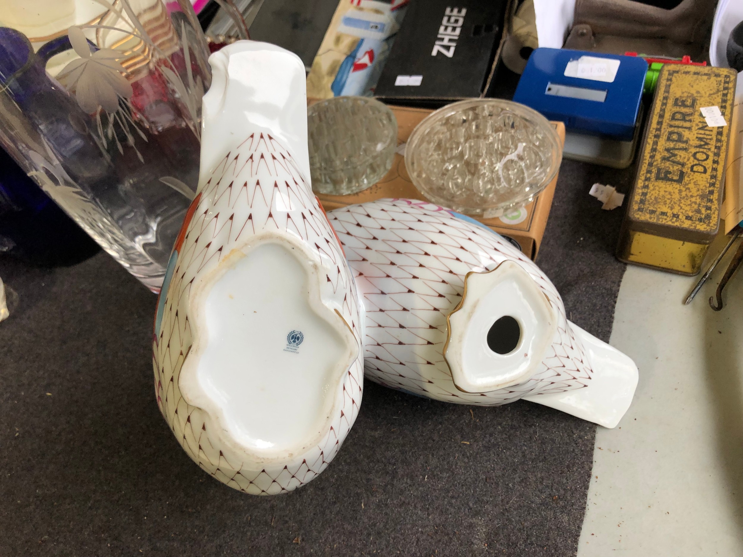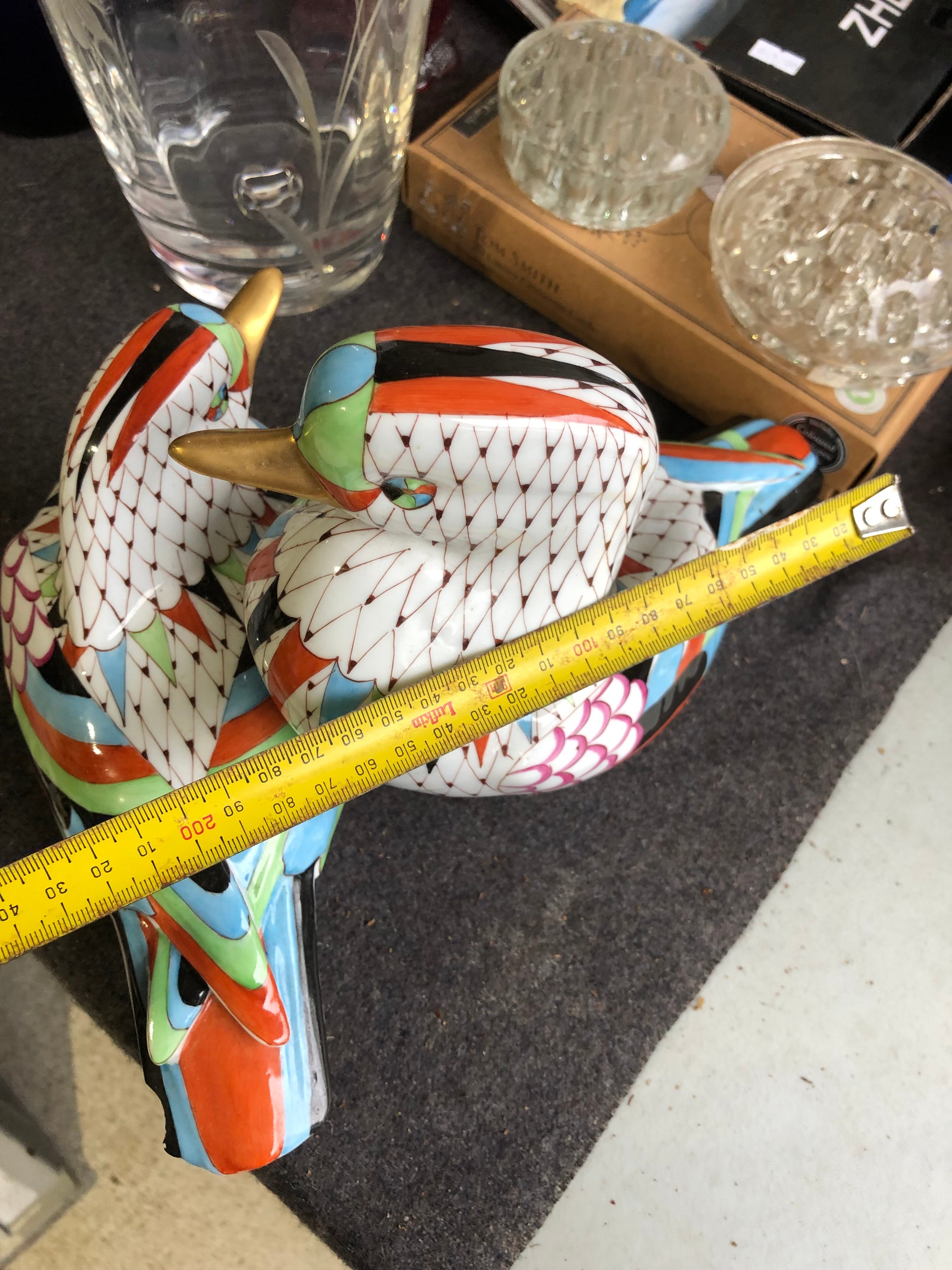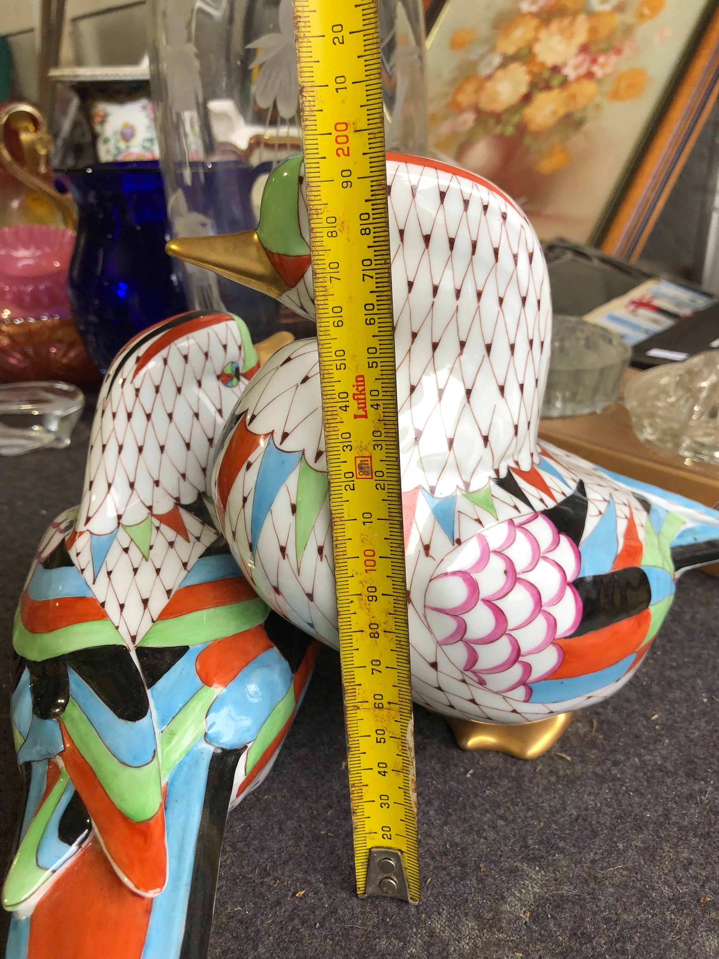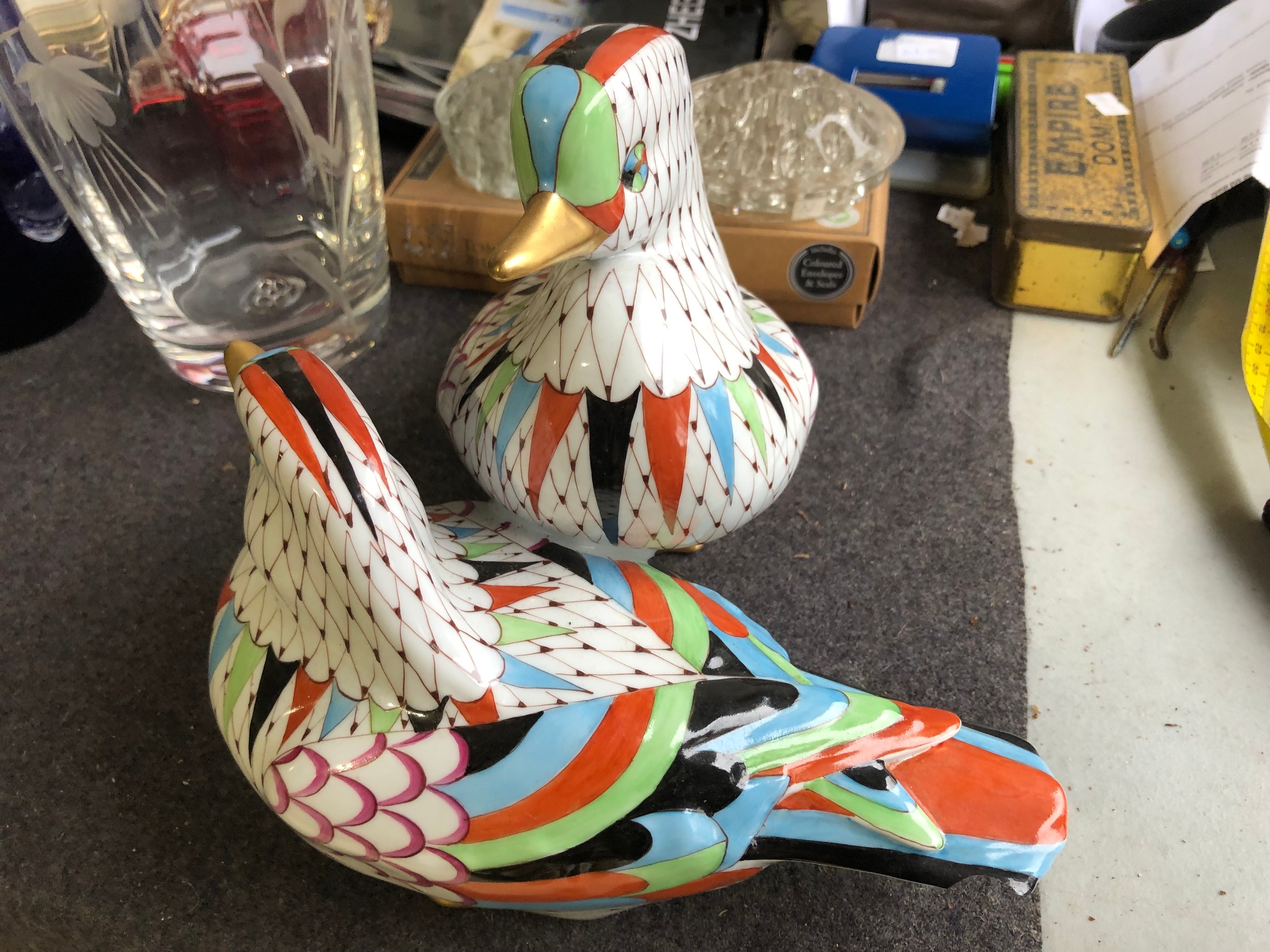 Large pair of joined ducks by Hollohaza of Hungary. Damage to tail of one duck
