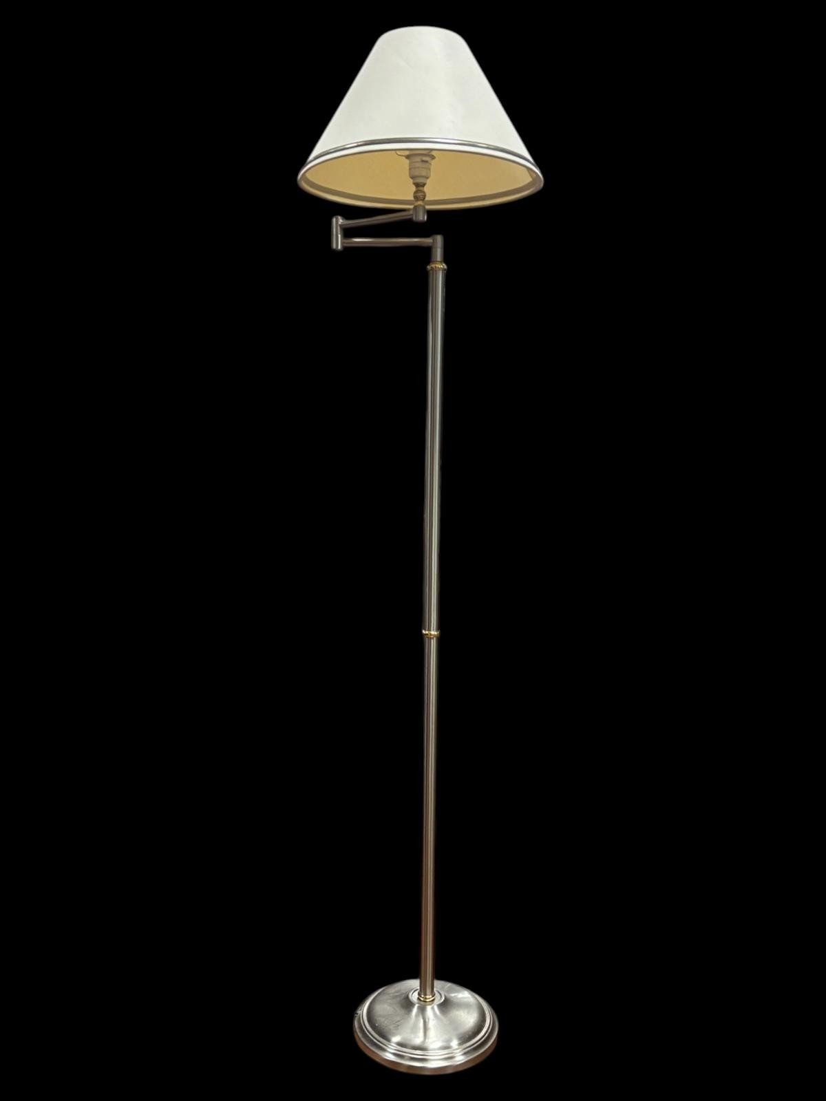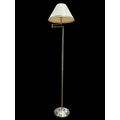A CONTEMPORARY CHROME FLOOR STANDARD LAMP with adjustable arm and shade raised on a circular foot 157cm (h)