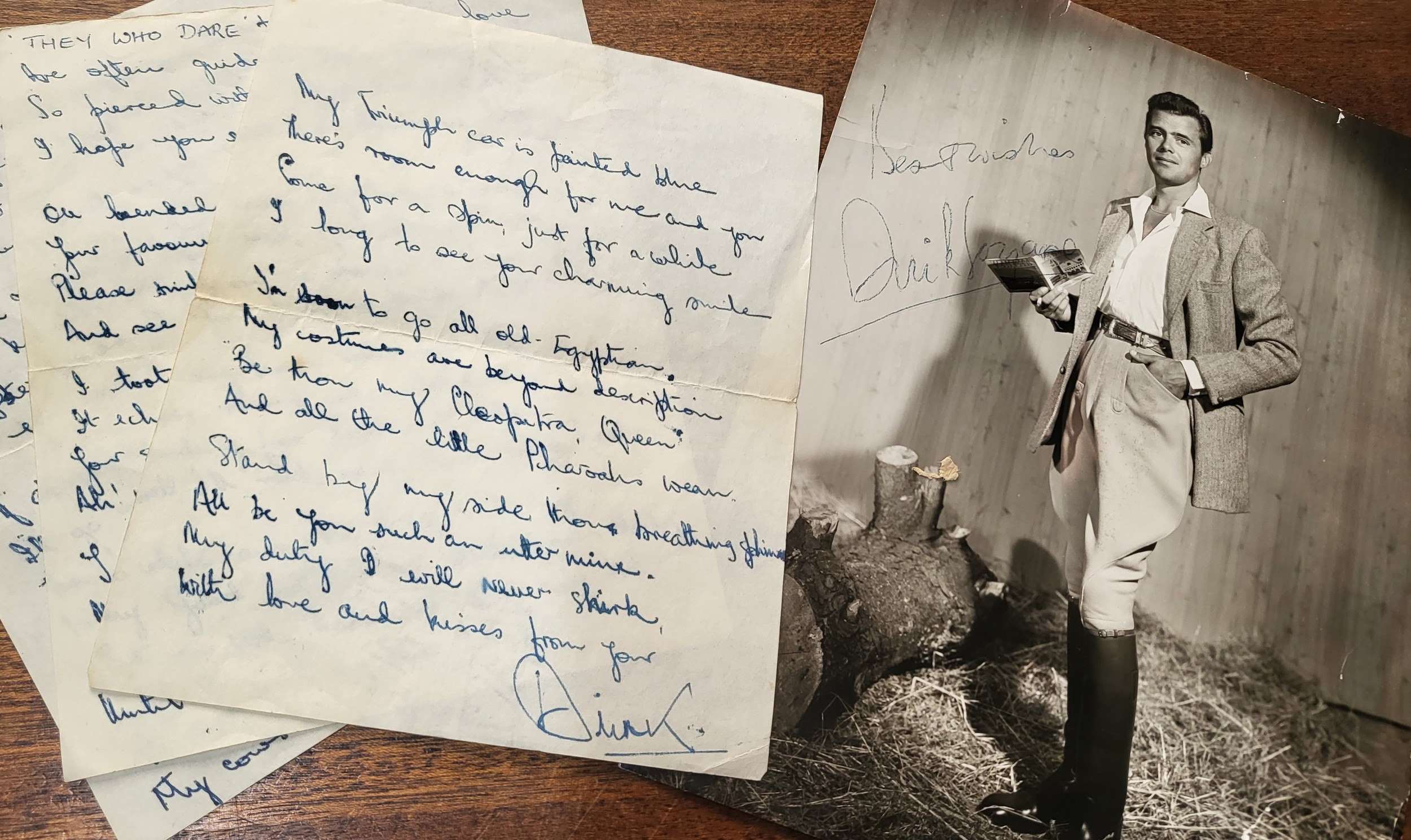 A signed photo (24cm x 18cm) and an intimate handwritten letter/poem from Dirk Bogarde.