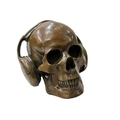 Novelty brass model of a skull wearing headphones.