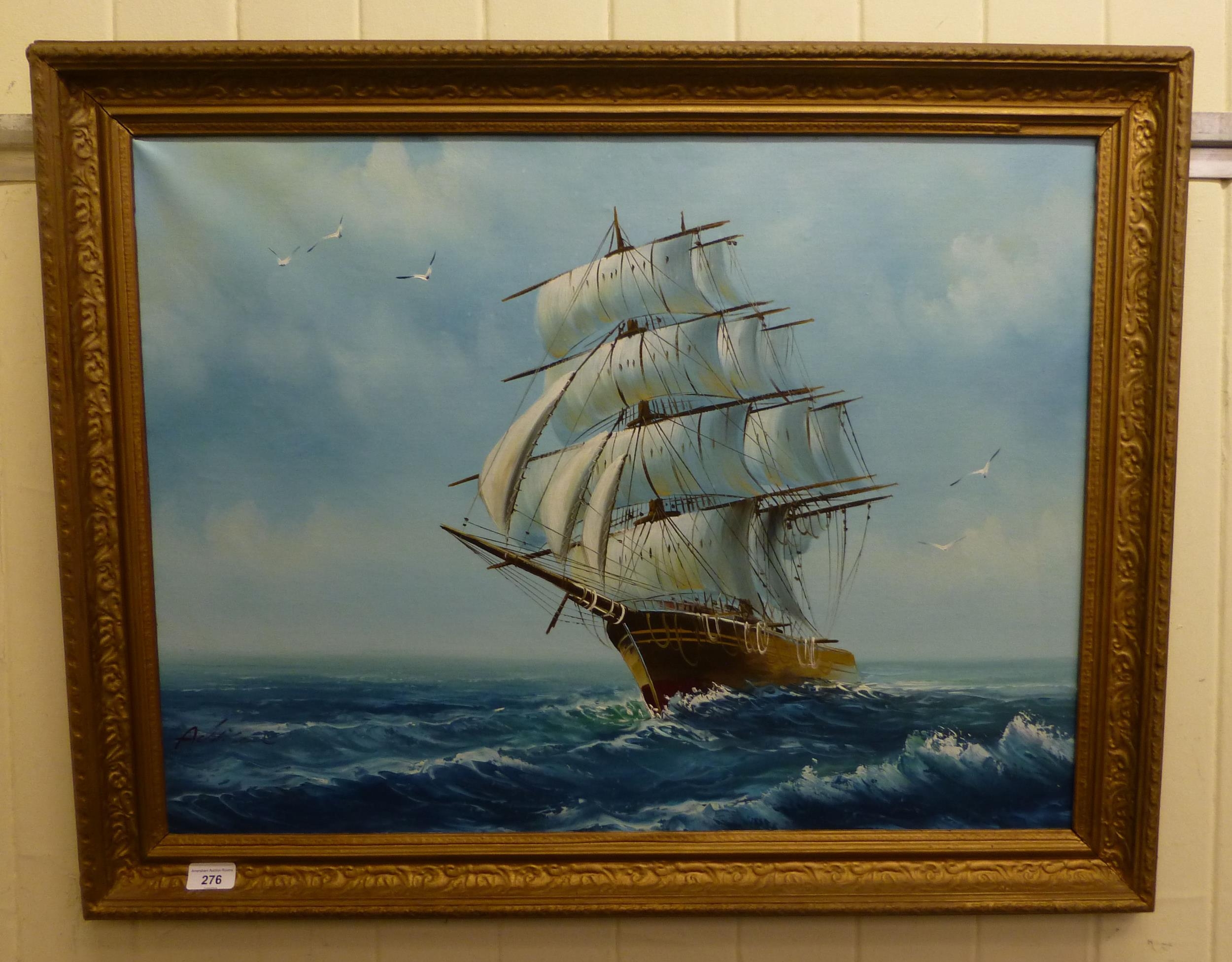A ship at sea  oil on canvas  bears an indistinct signature ...