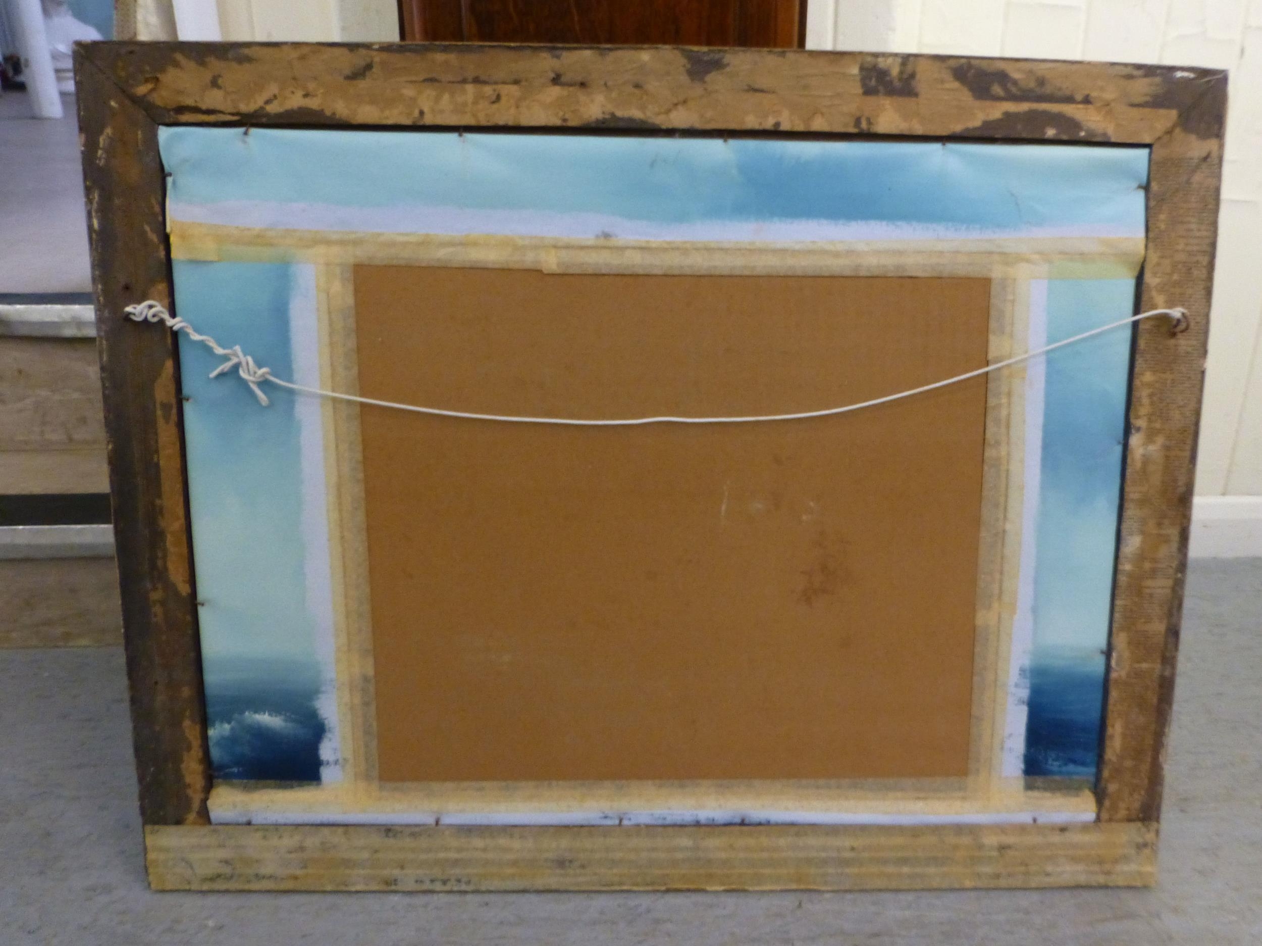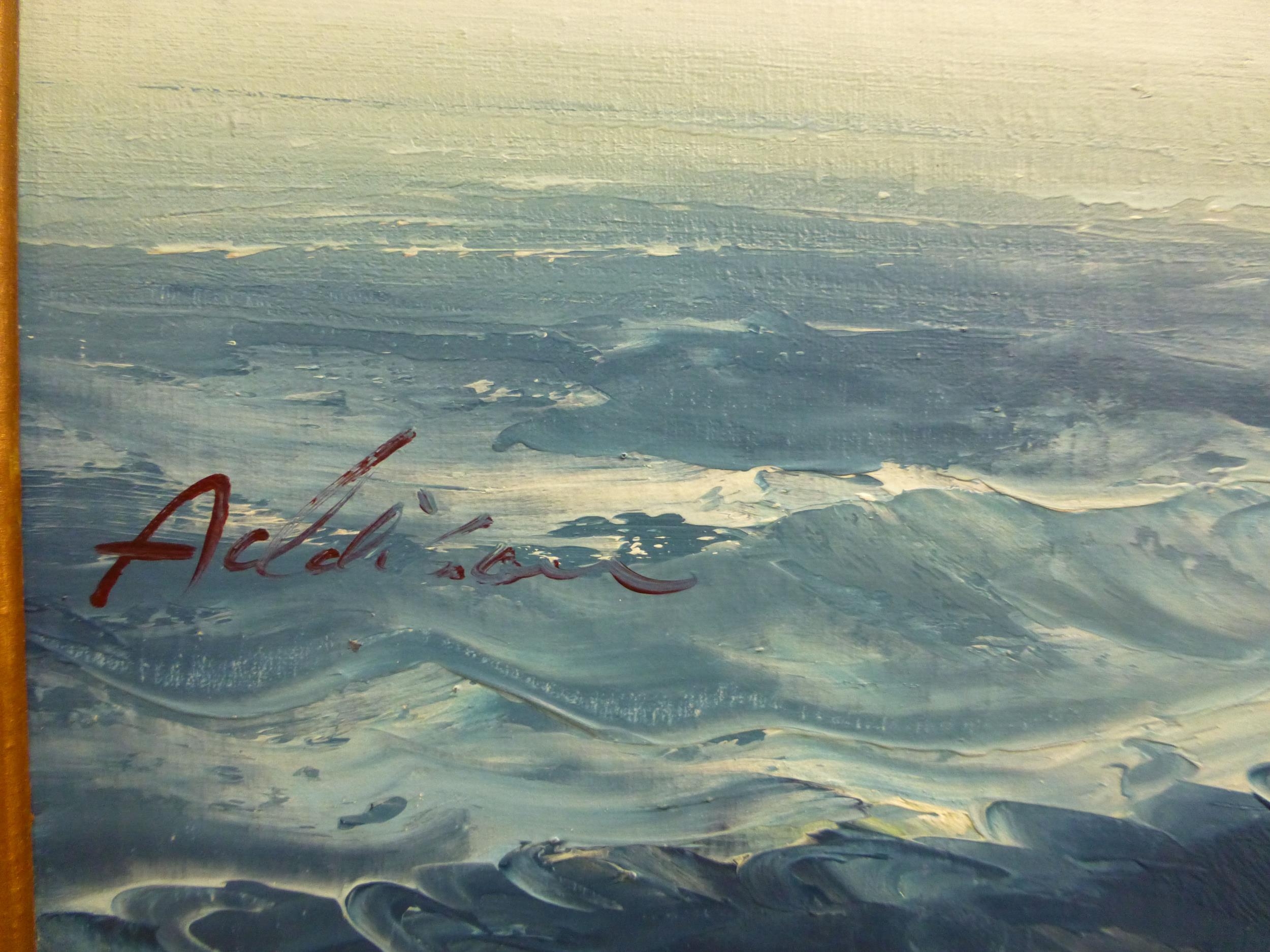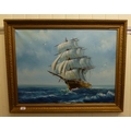 A ship at sea  oil on canvas  bears an indistinct signature  22" x 29.5"  framed