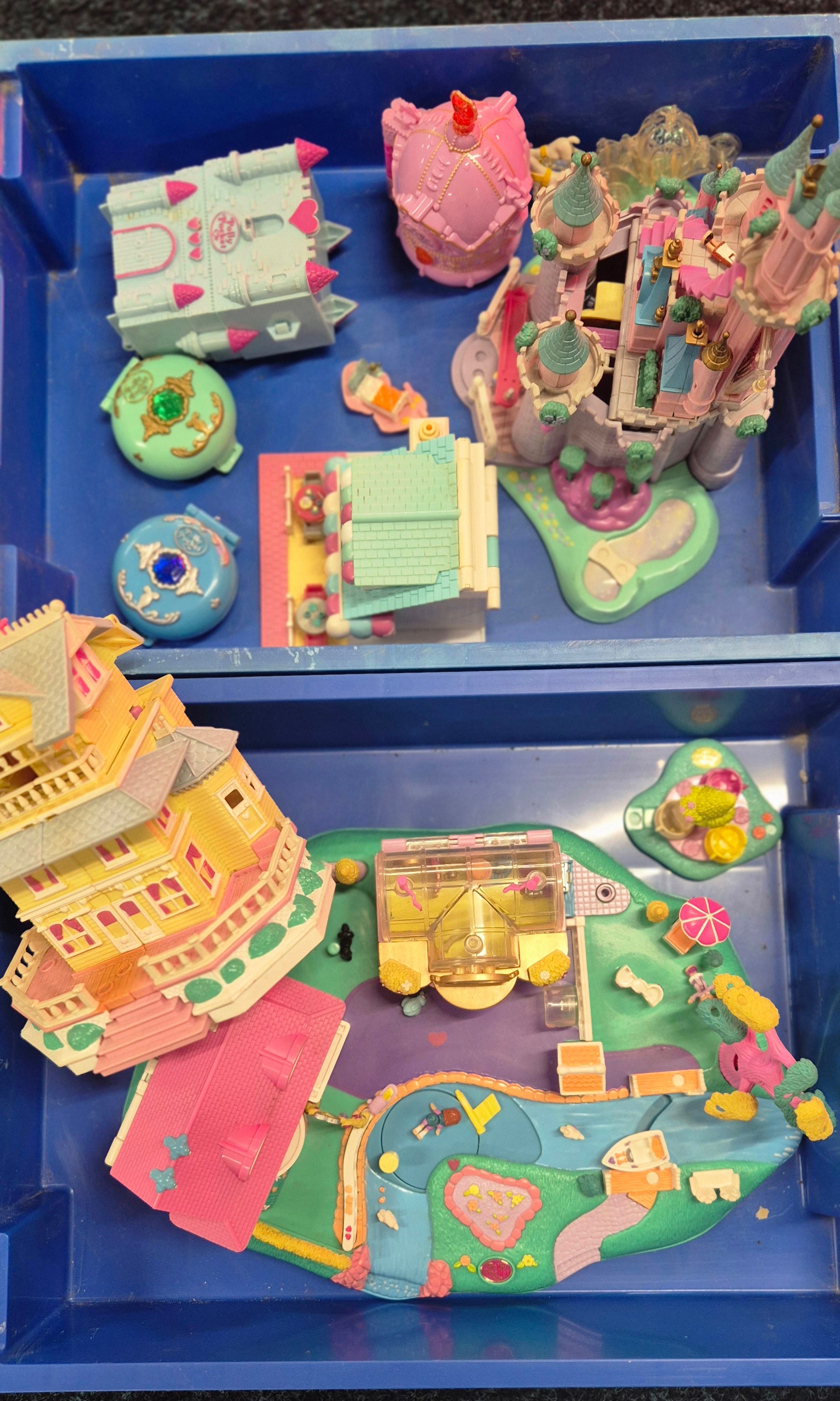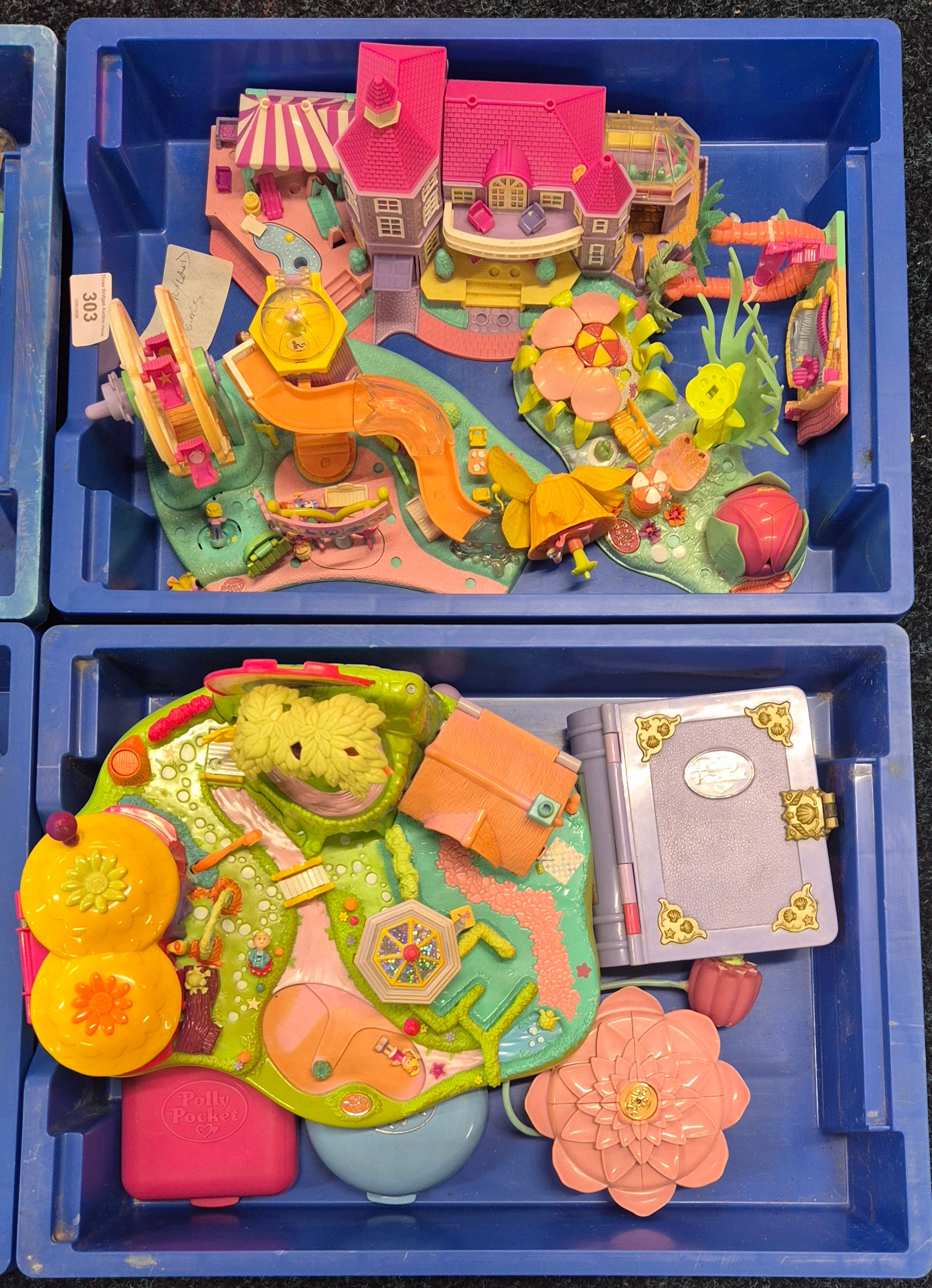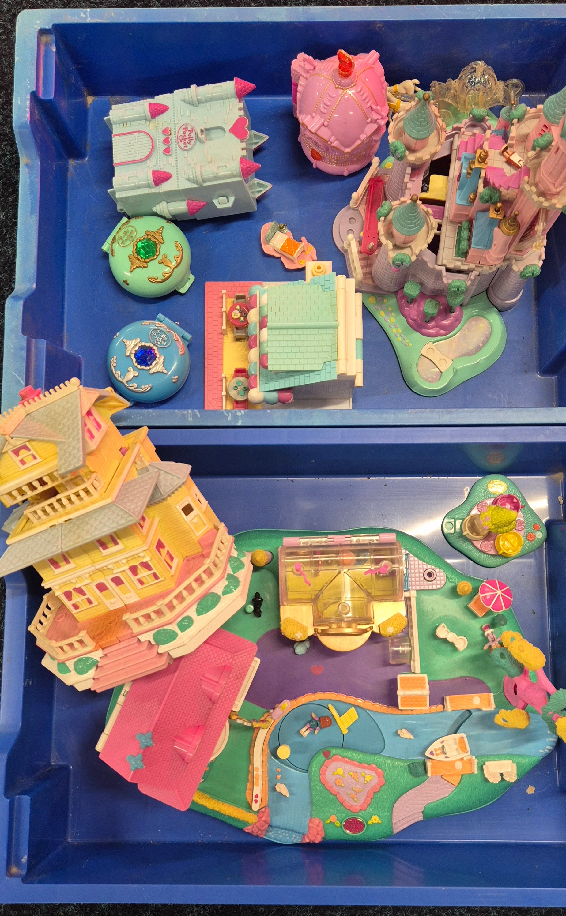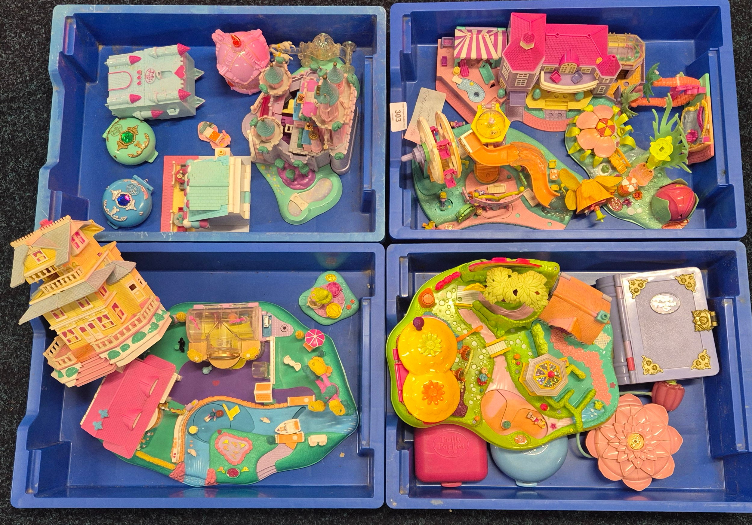 Four trays of Polly pocket play sets and figures.