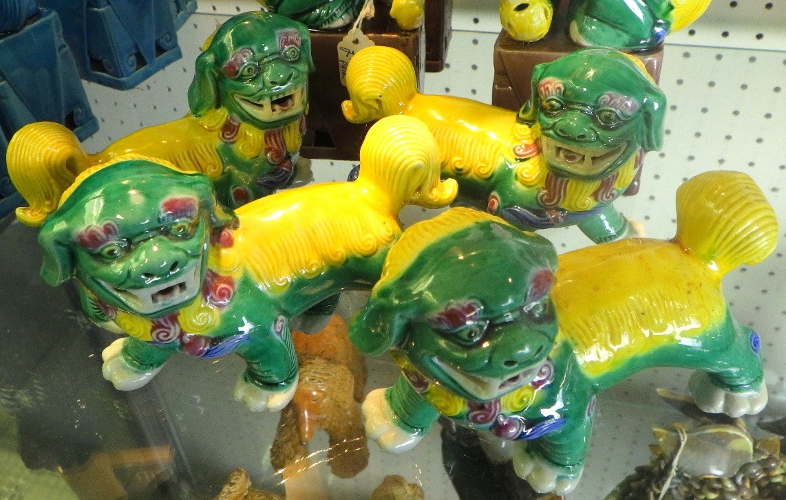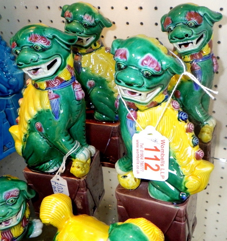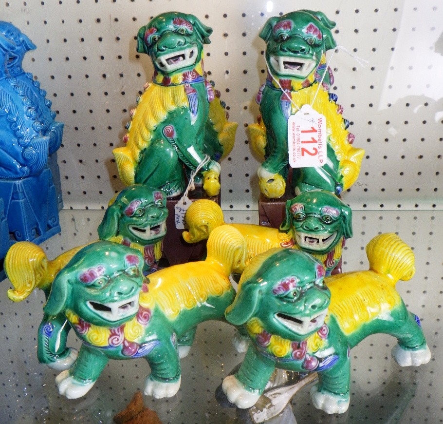 Four pairs of green Foo Dogs, 9-20cm tall (8)