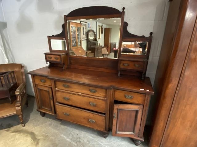 Victorian oak mirror back sideboard (190H 185W 55D cm)