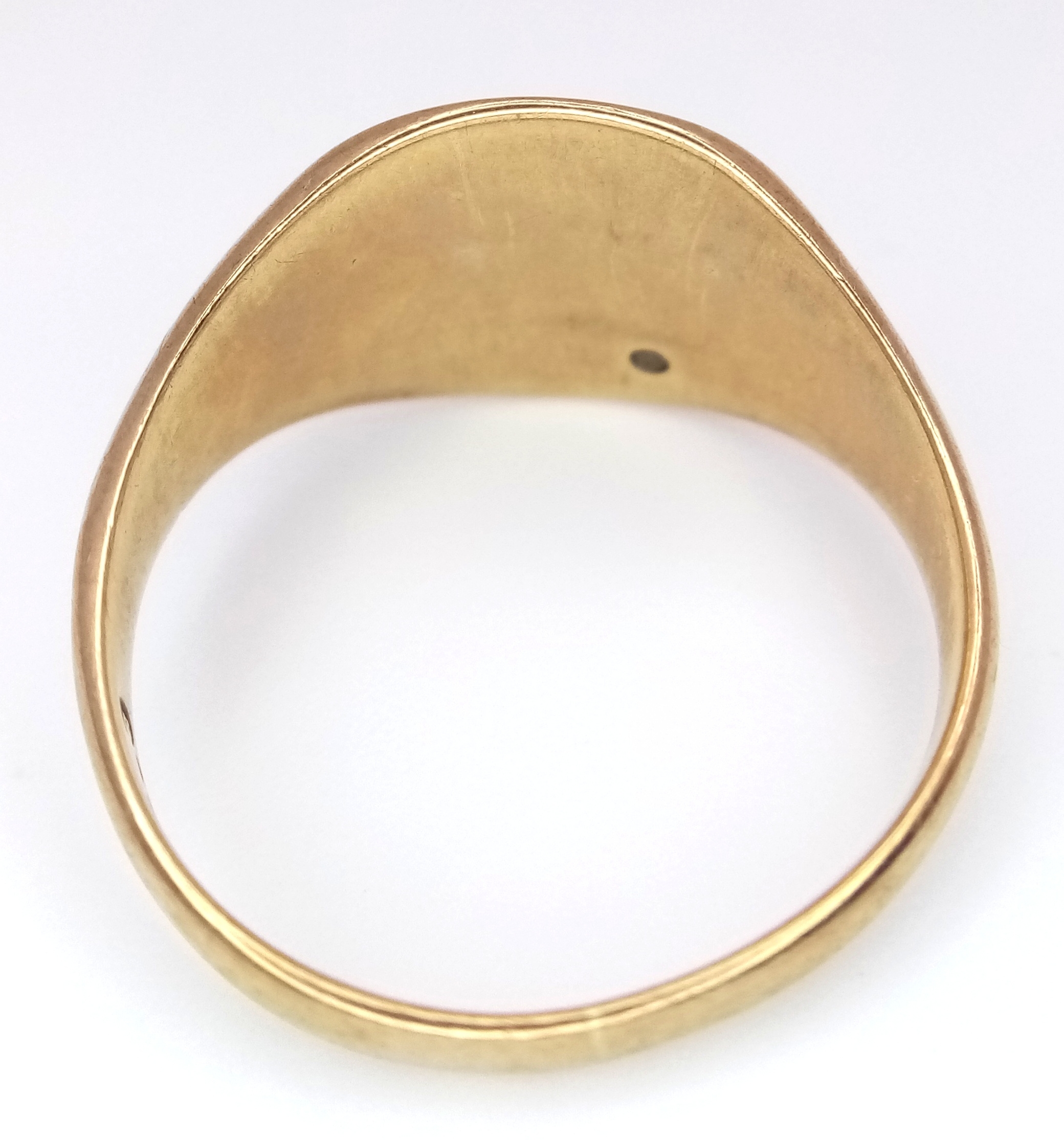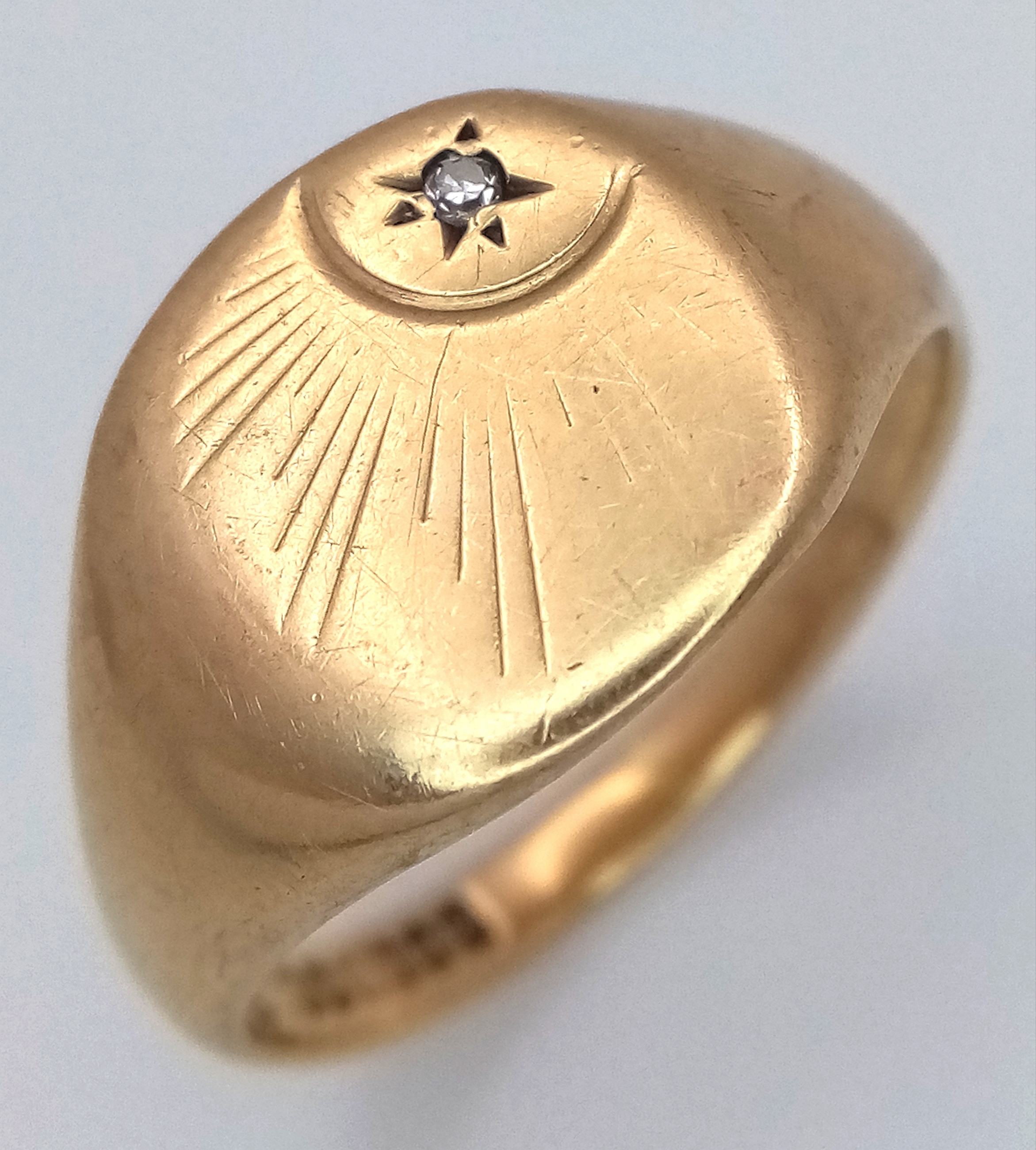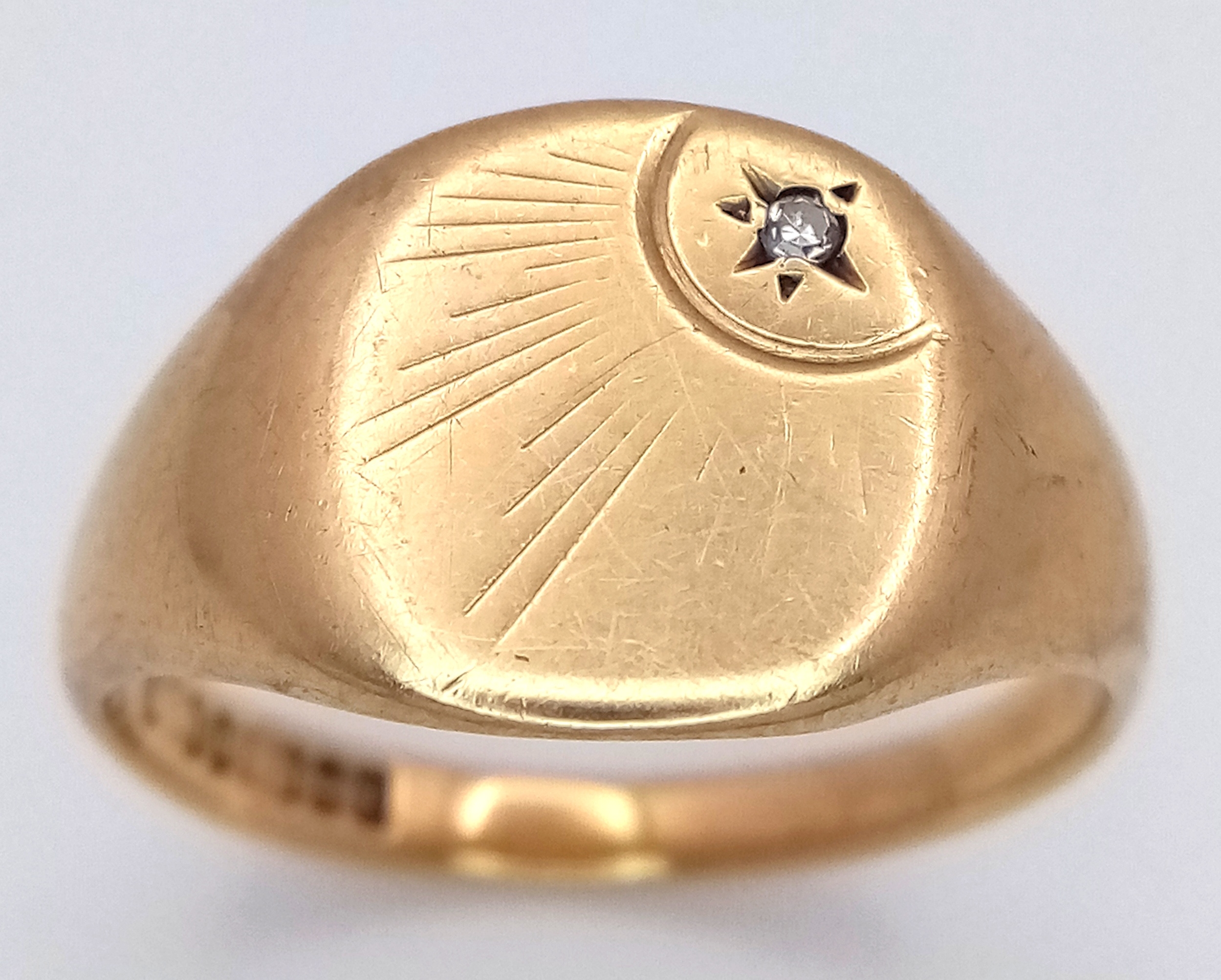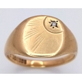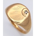 A GENTS 9K GOLD VINTAGE SIGNET RING WITH SMALL DIAMOND . 5.9gms size U
