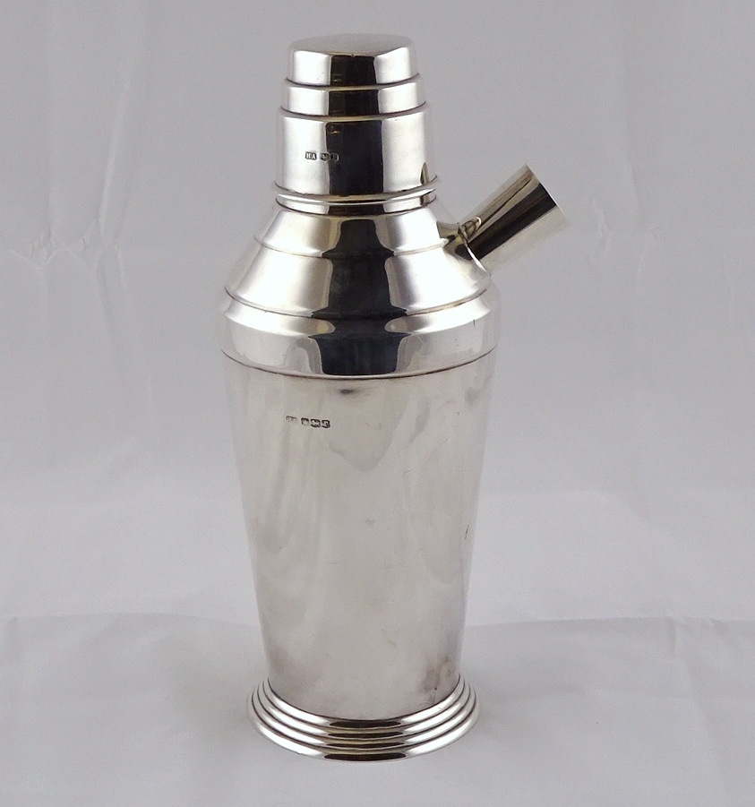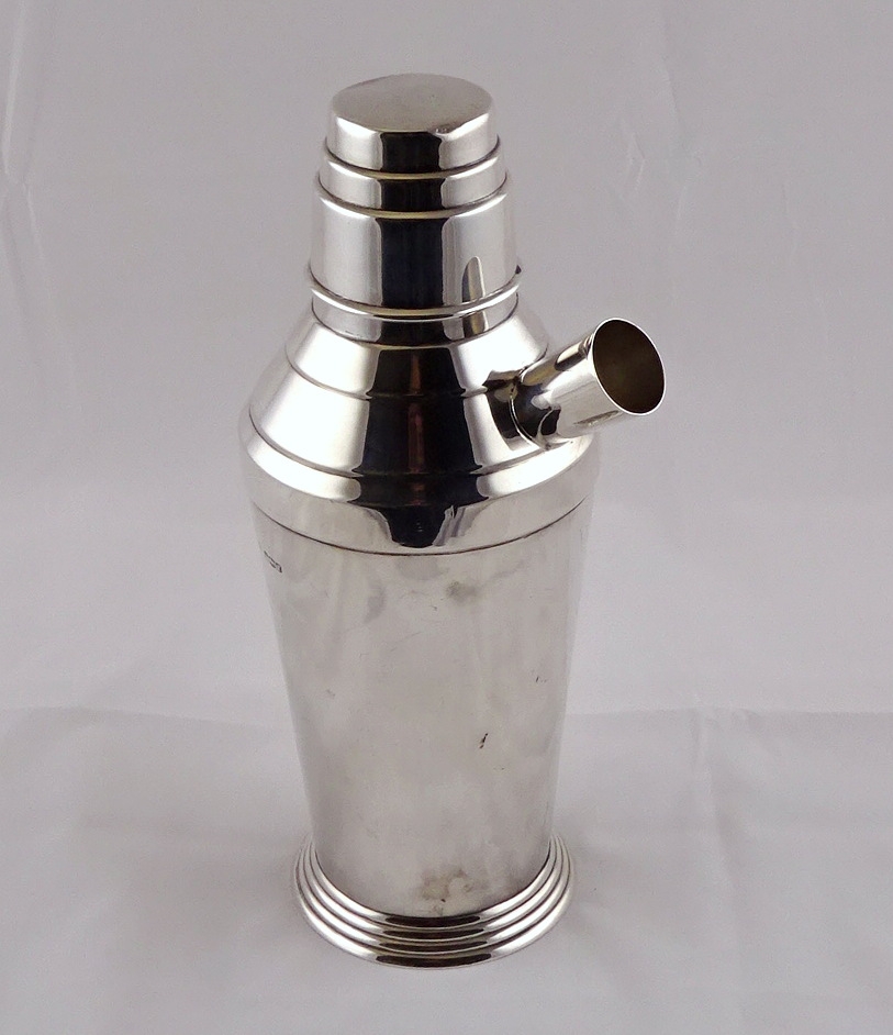 An Art Deco influence silver cocktail shaker, Sheffield 1934. 660gr / 255mm tall. a/f minor dents (by instruction of the family of Dame Fanny Waterman)