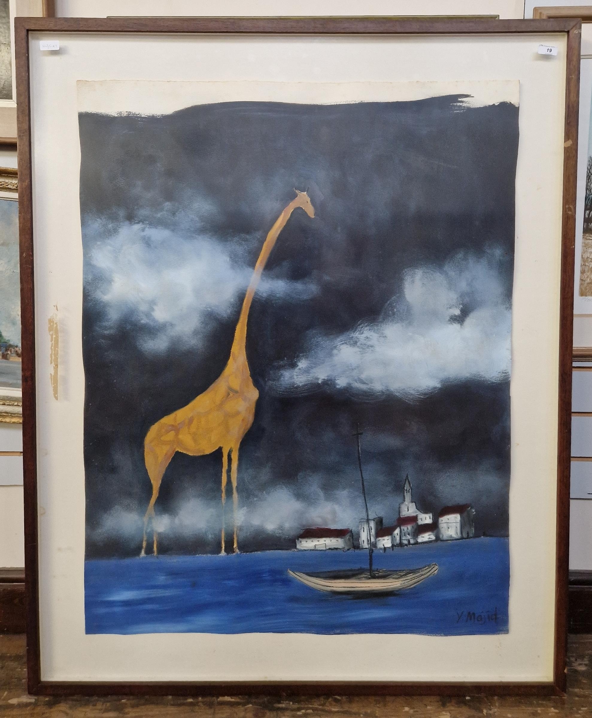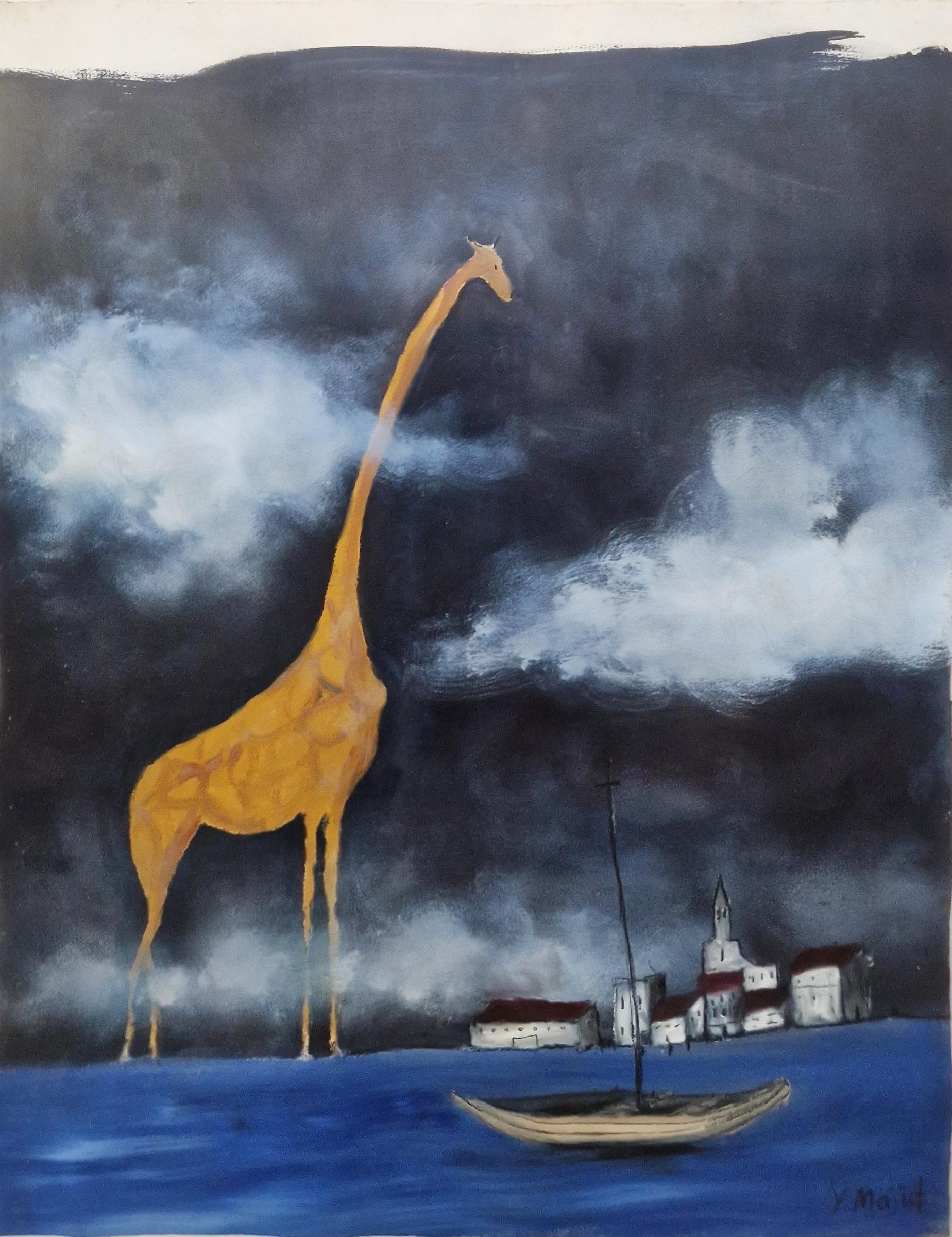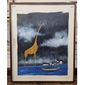 'Giraffe', signed lower right, framed and glazed, 106cm x 82cm