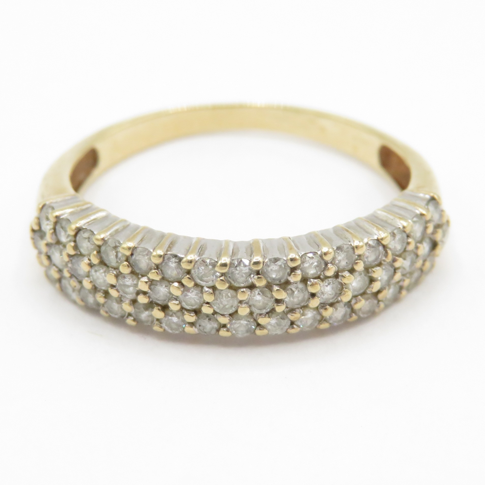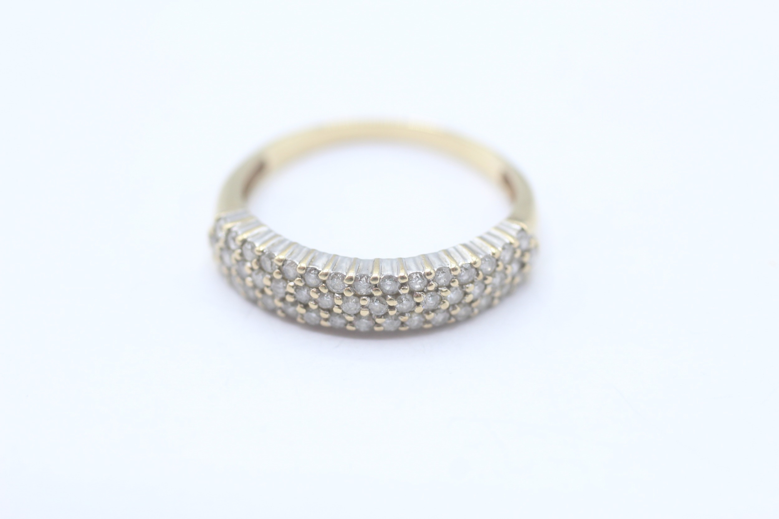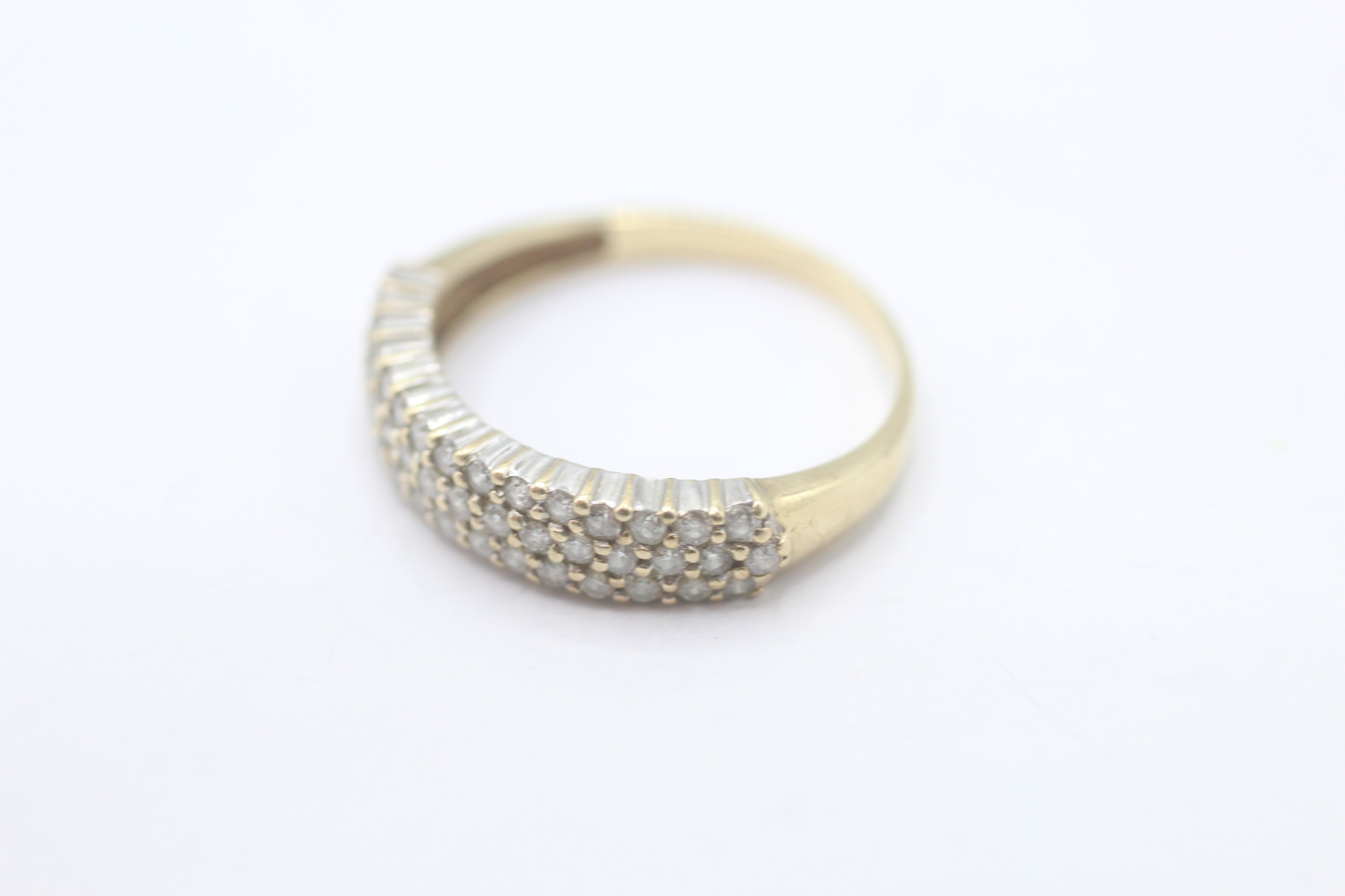 9ct gold diamond three row ring (2.1g) - misshapen Size P