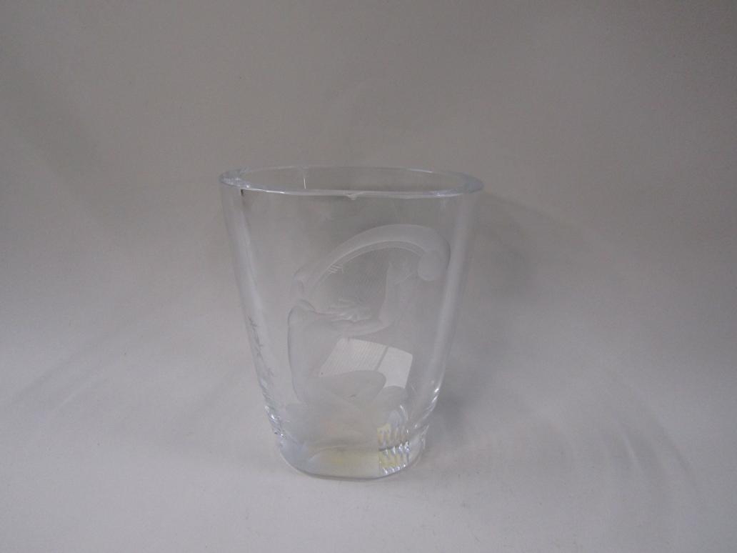 ENGRAVED GLASS BOWL, A/F CHIP TO RIM