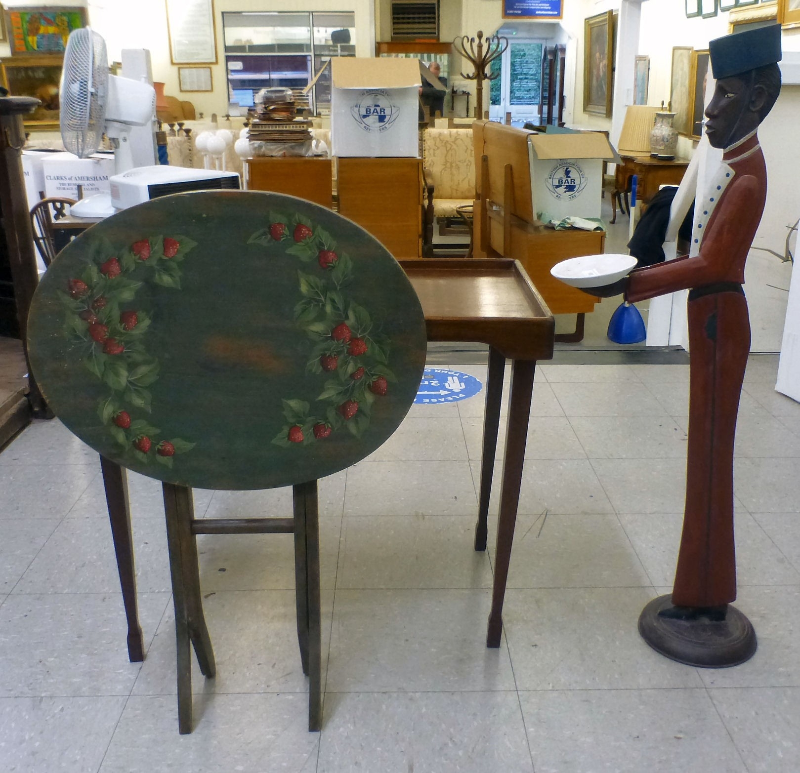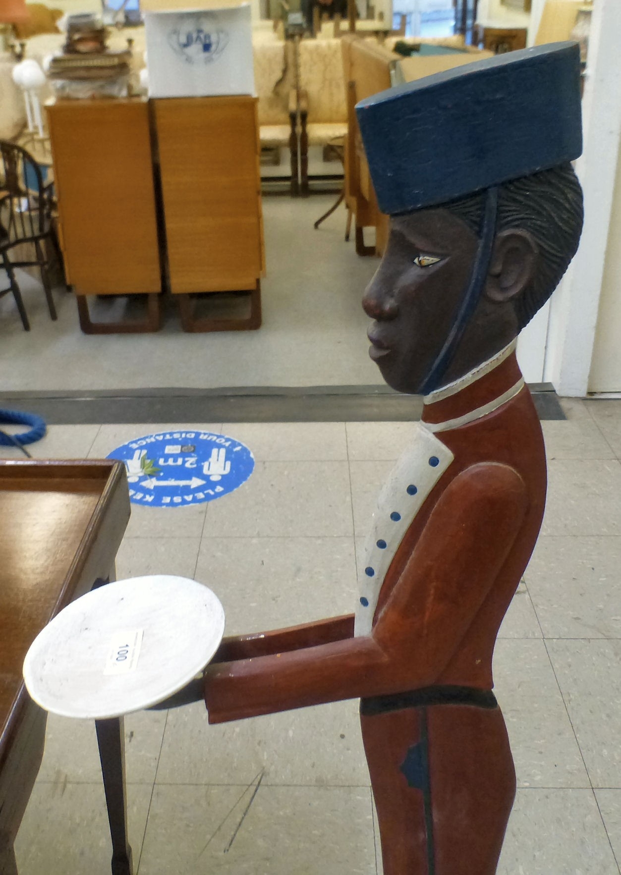 Small furniture: to include a carved wooden Blackamoor menu stand 39"h