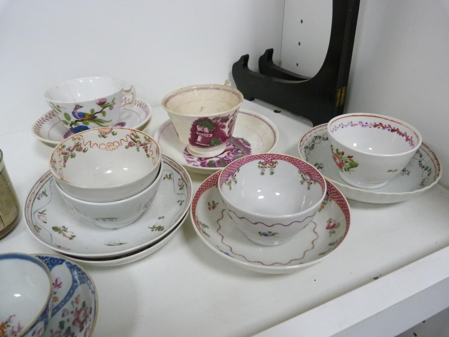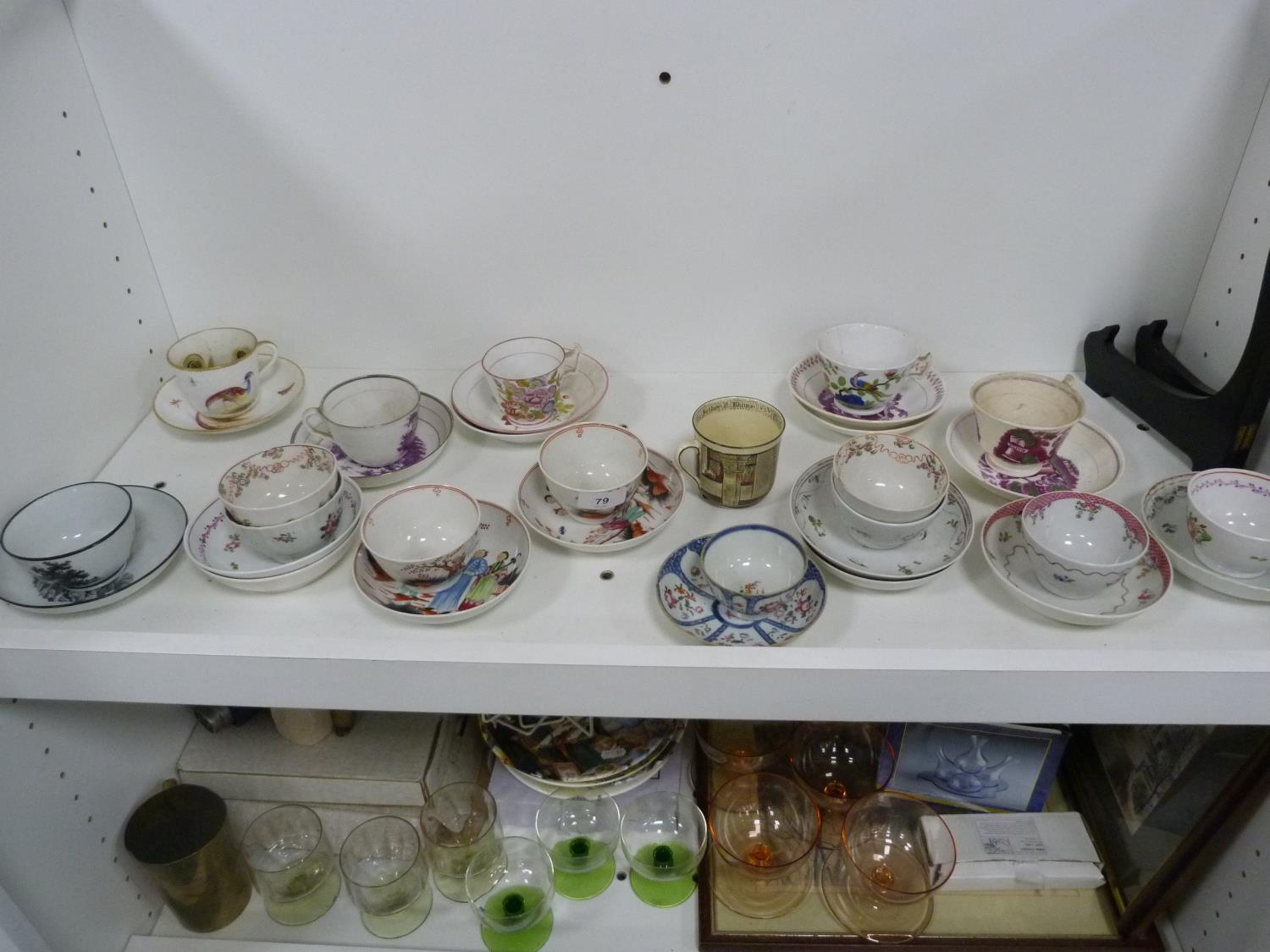 Collection of 19th century porcelain cabinet cups and saucers, two 19th century Chinese tea bowls with saucers and others etc.