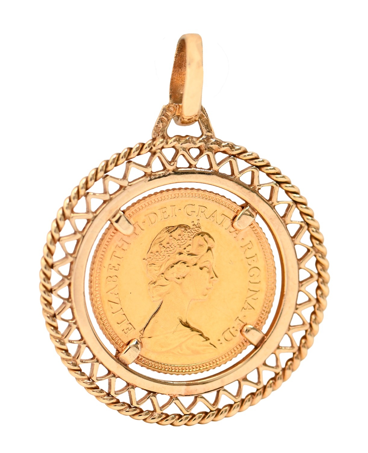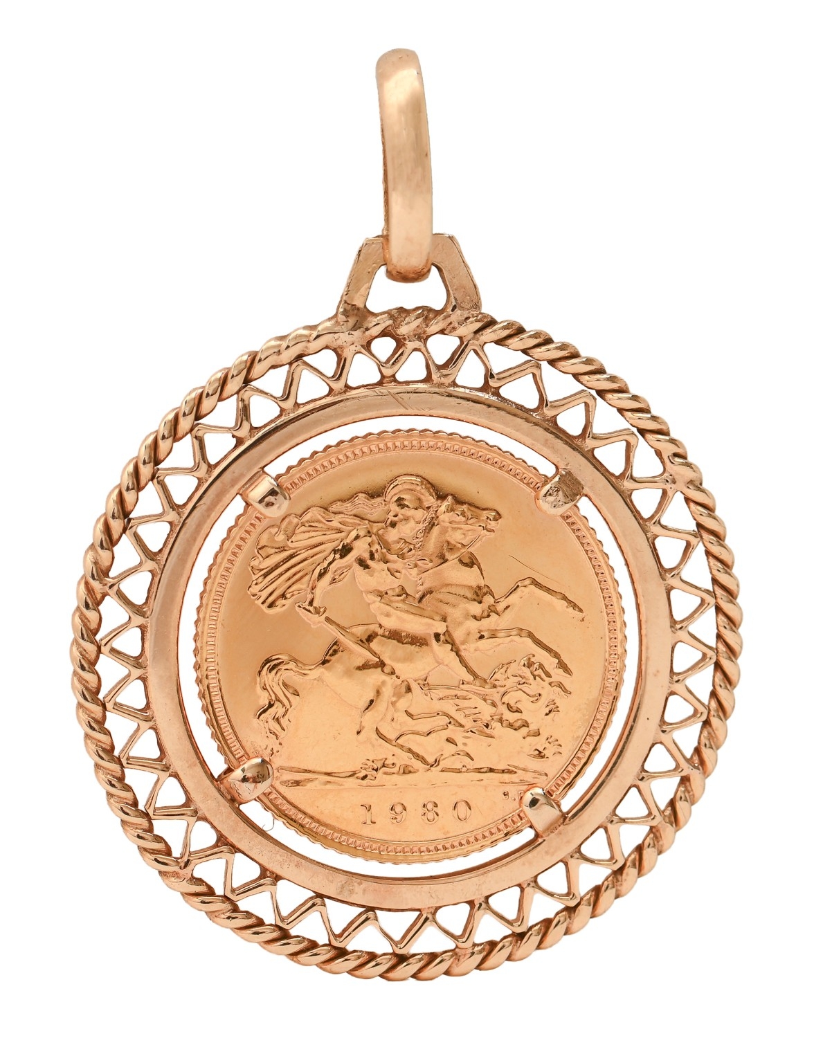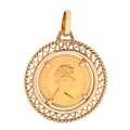 Gold coin. Half Sovereign 1980, in 9ct gold pendant, 7.8g