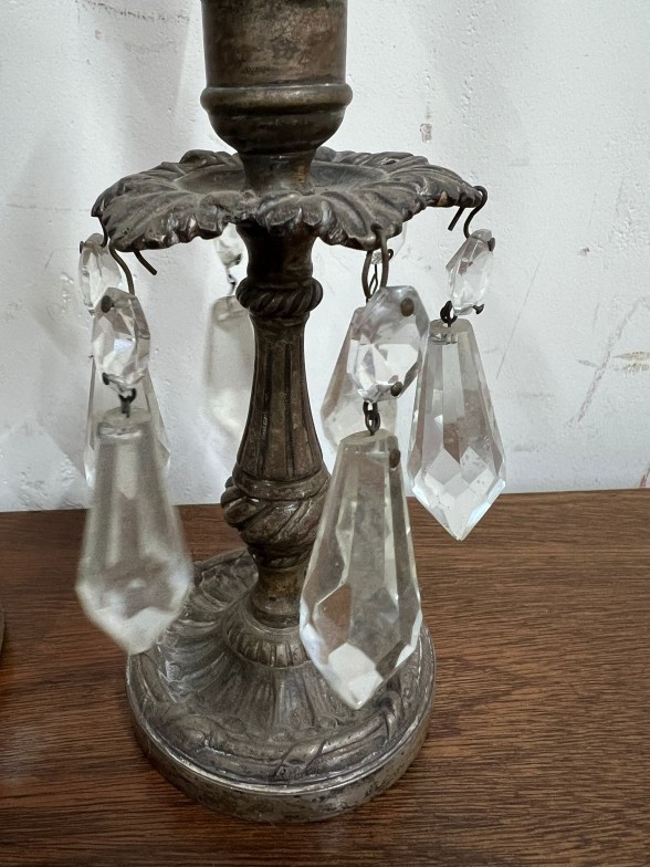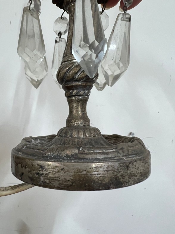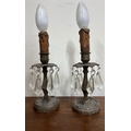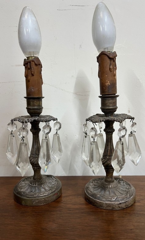 A pair of brass lamps with glass crystal droplets on each leaf AF