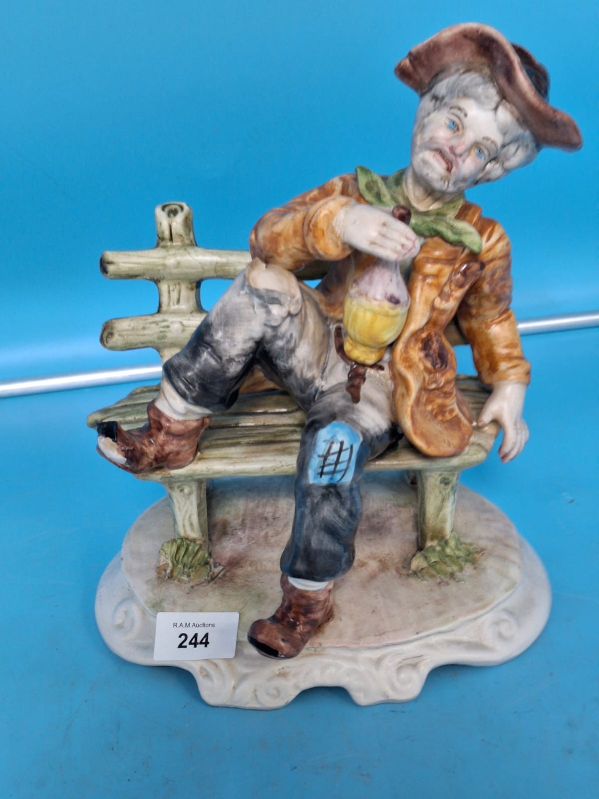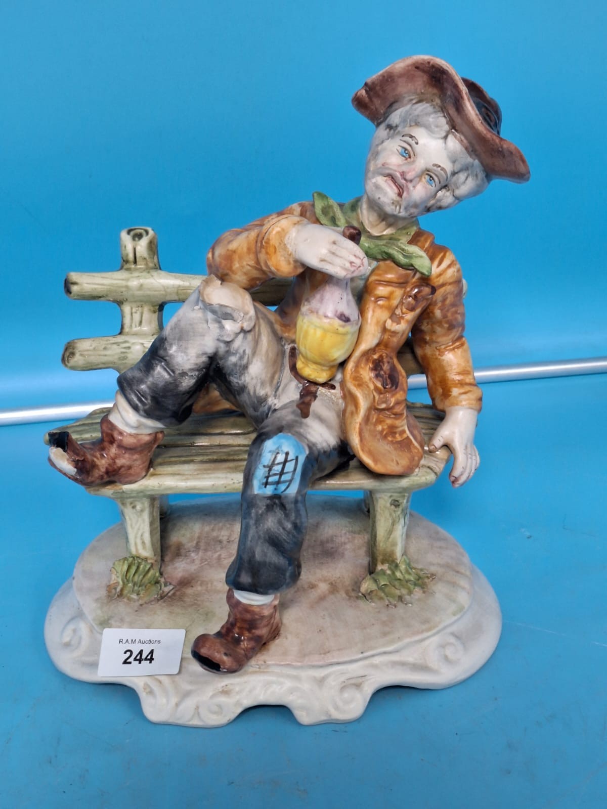 Signed Capodimonte Tramp On a Bench