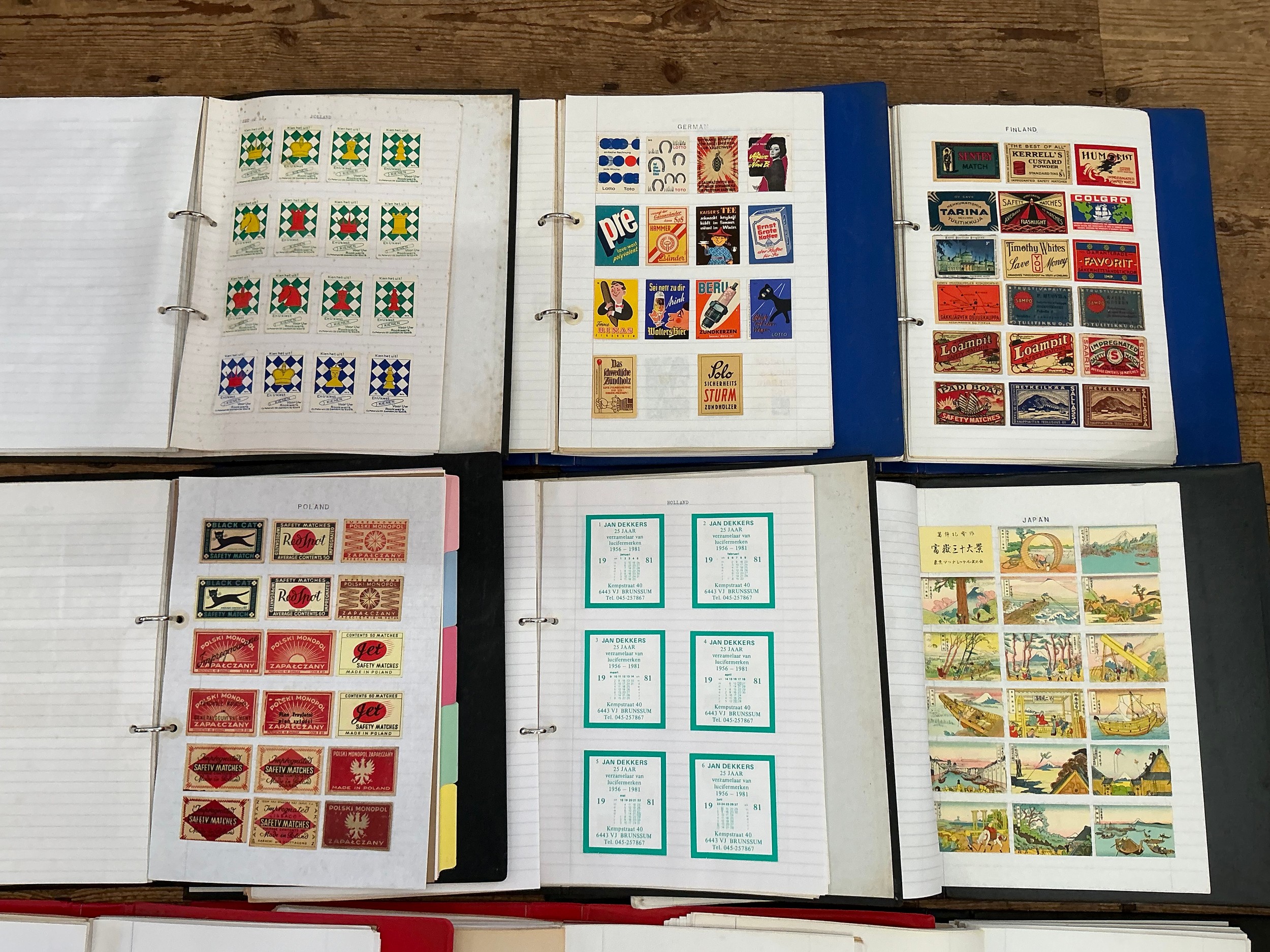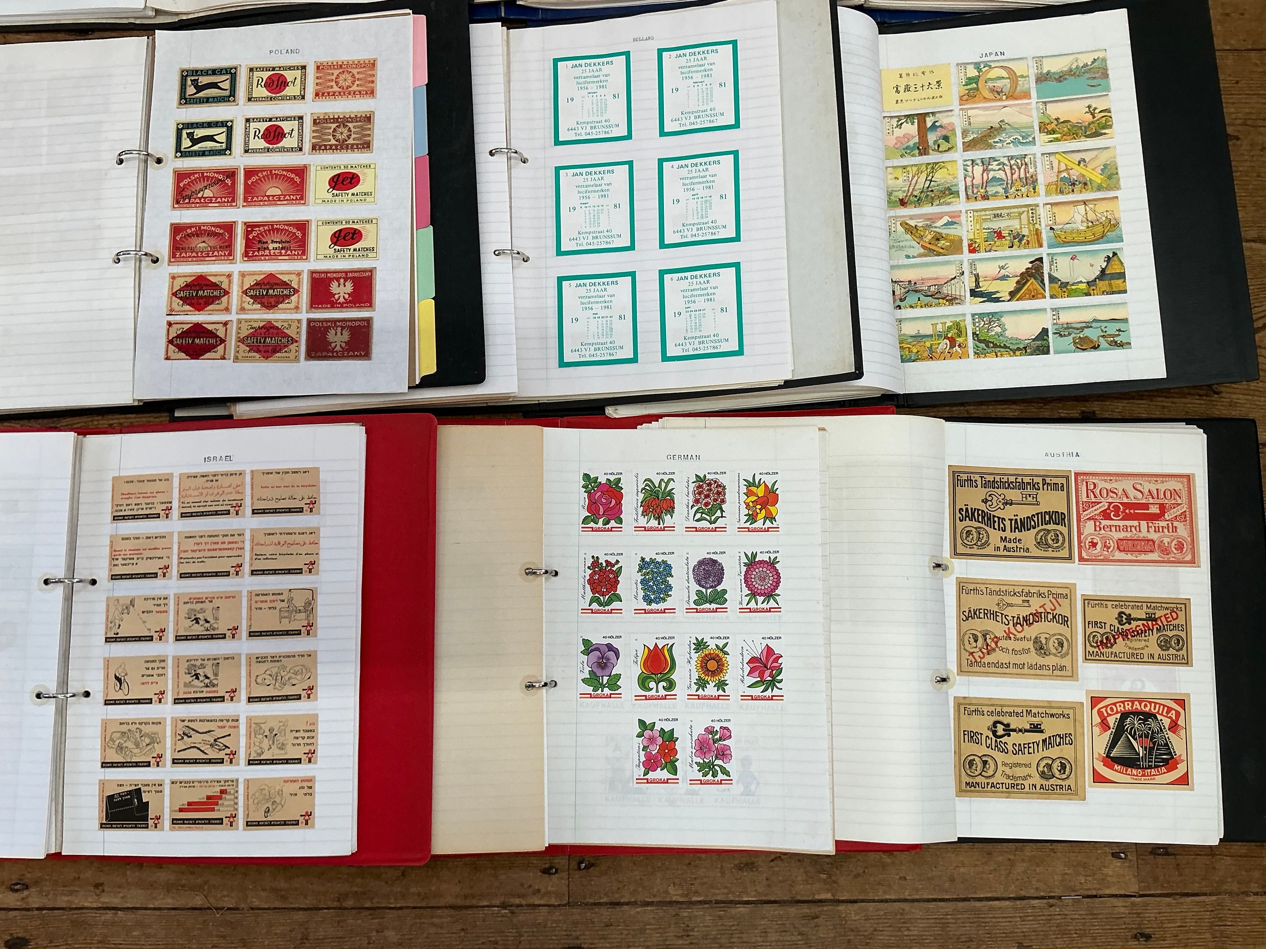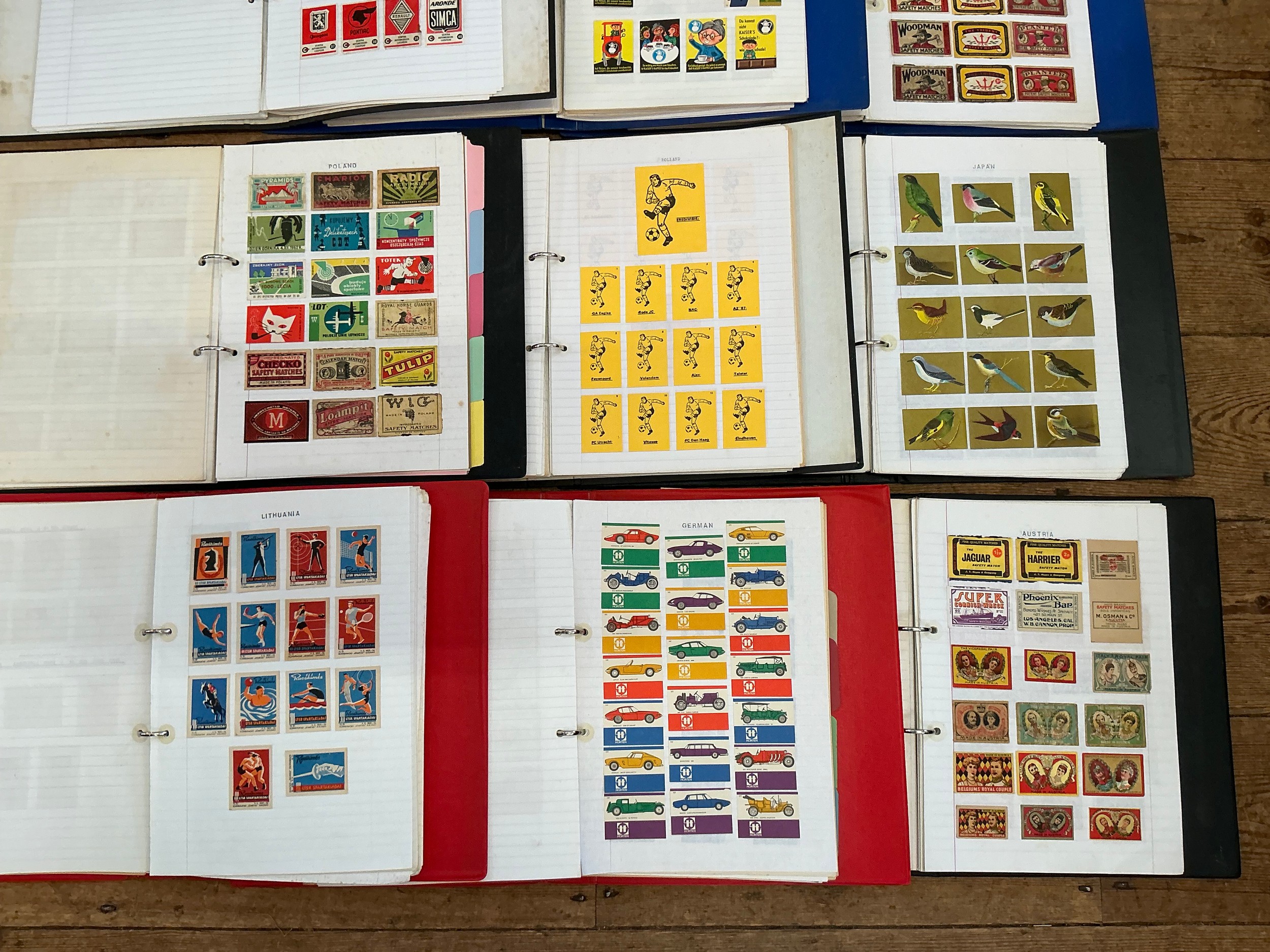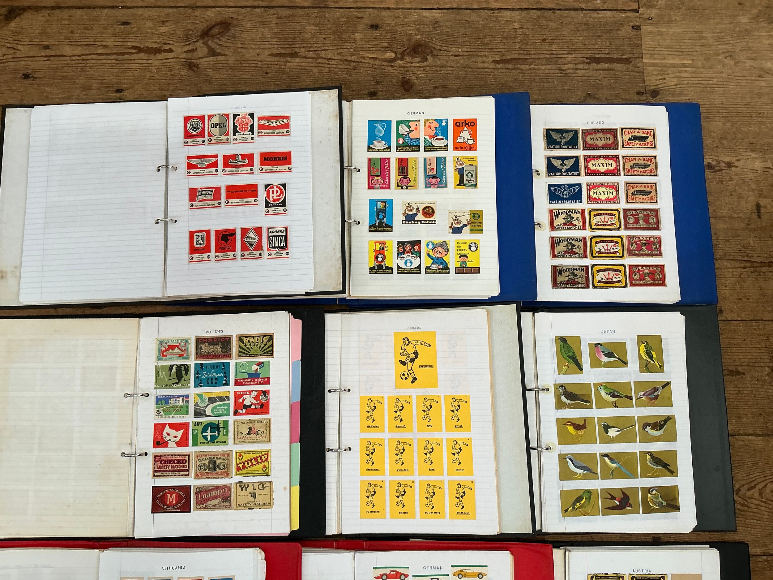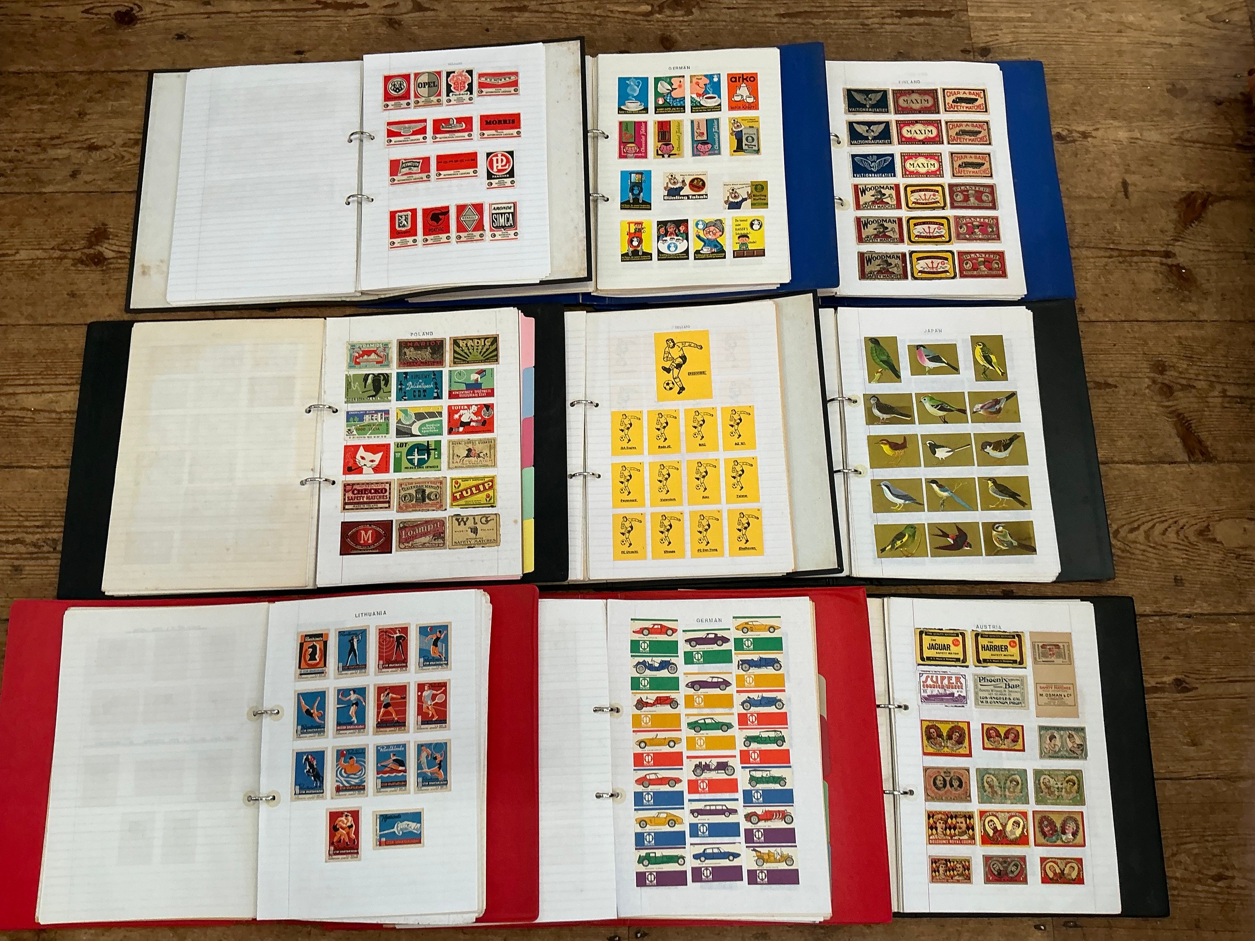 A Large Collection of Nine Albums of Vintage Matchbox Labels & Matchboxes from over the World to include Malta, Poland, Holland, Finland, West Germany, German, Austria, Japan, etc. Needs Viewing.
