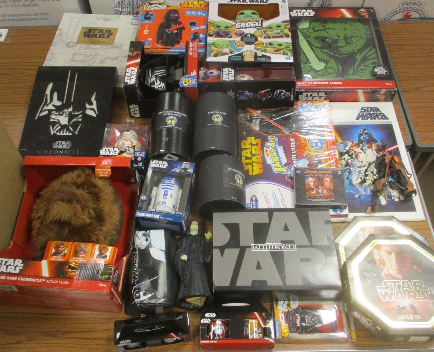 Star Wars. Assortment of various collectables, generally excellent to mint in very good to excellent plus boxes or unboxed, includes lithographs, kits, candles, mugs, etc. Qty 35+ (5B)