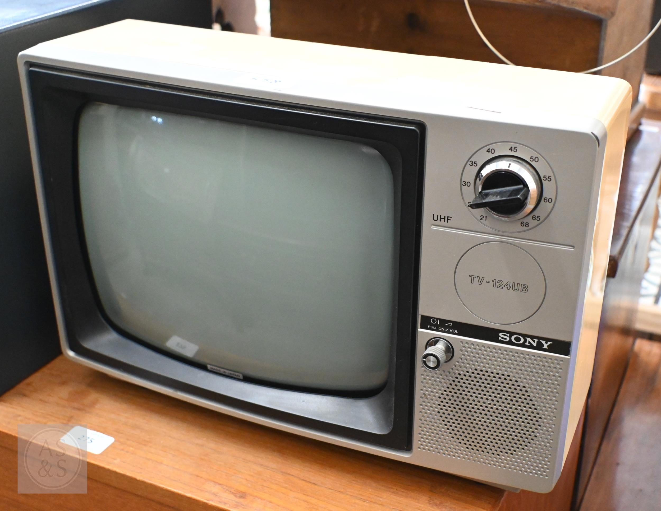 An early c 1960s GEC BT.316 'portable' television with 17" screen and top handle to/w a 1970s Sony TV-124UB with 11.5" screen