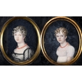 wearing coral necklace and white dress, half length, on ivory 7 x 6cms and a similar portrait possibly of an older sister or her mother, Mrs Turner, both on black background (2)