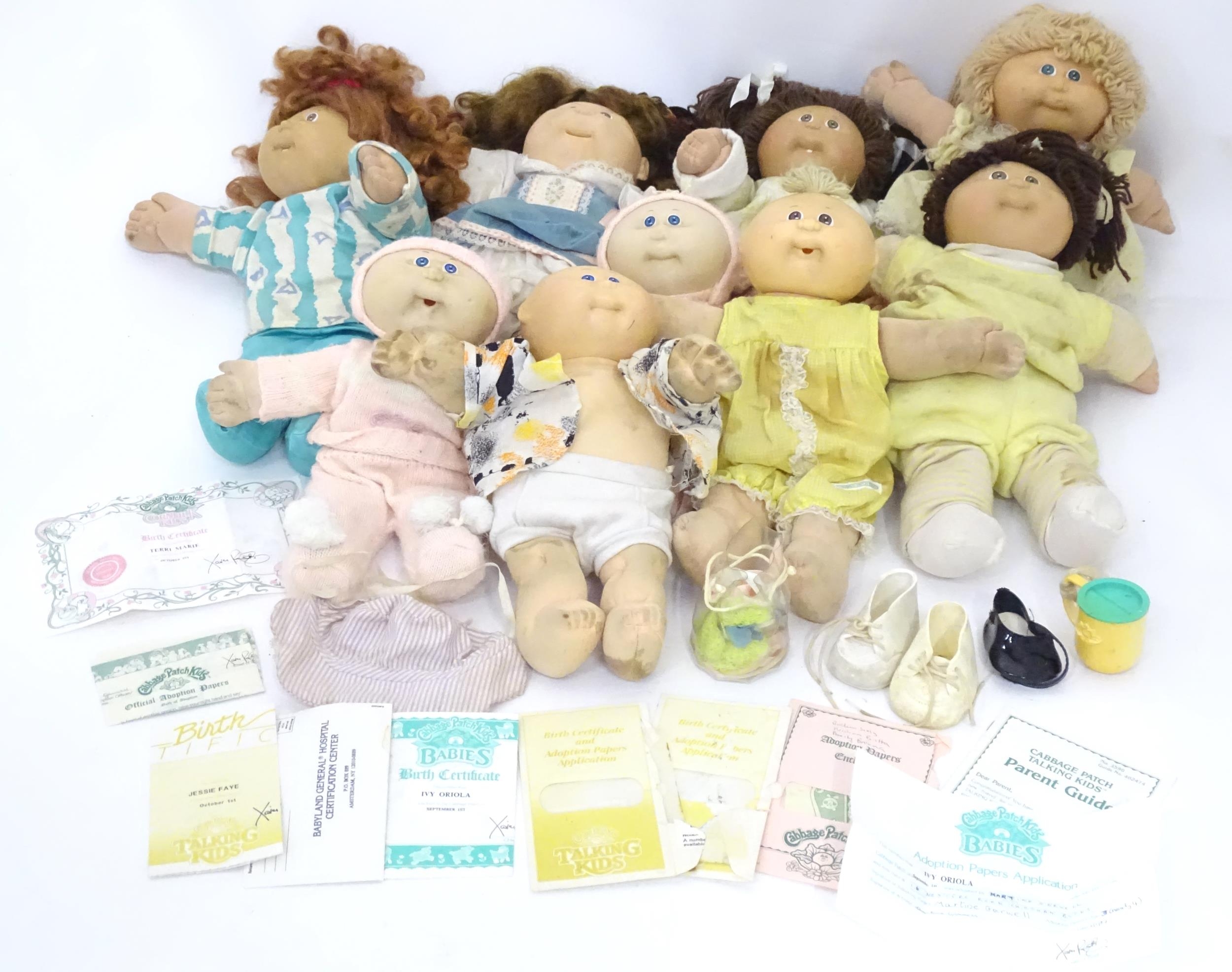 Toys: A quantity of assorted Cabbage Patch Kids dolls etc - some with certificates, to include a Talking Kids example etc.