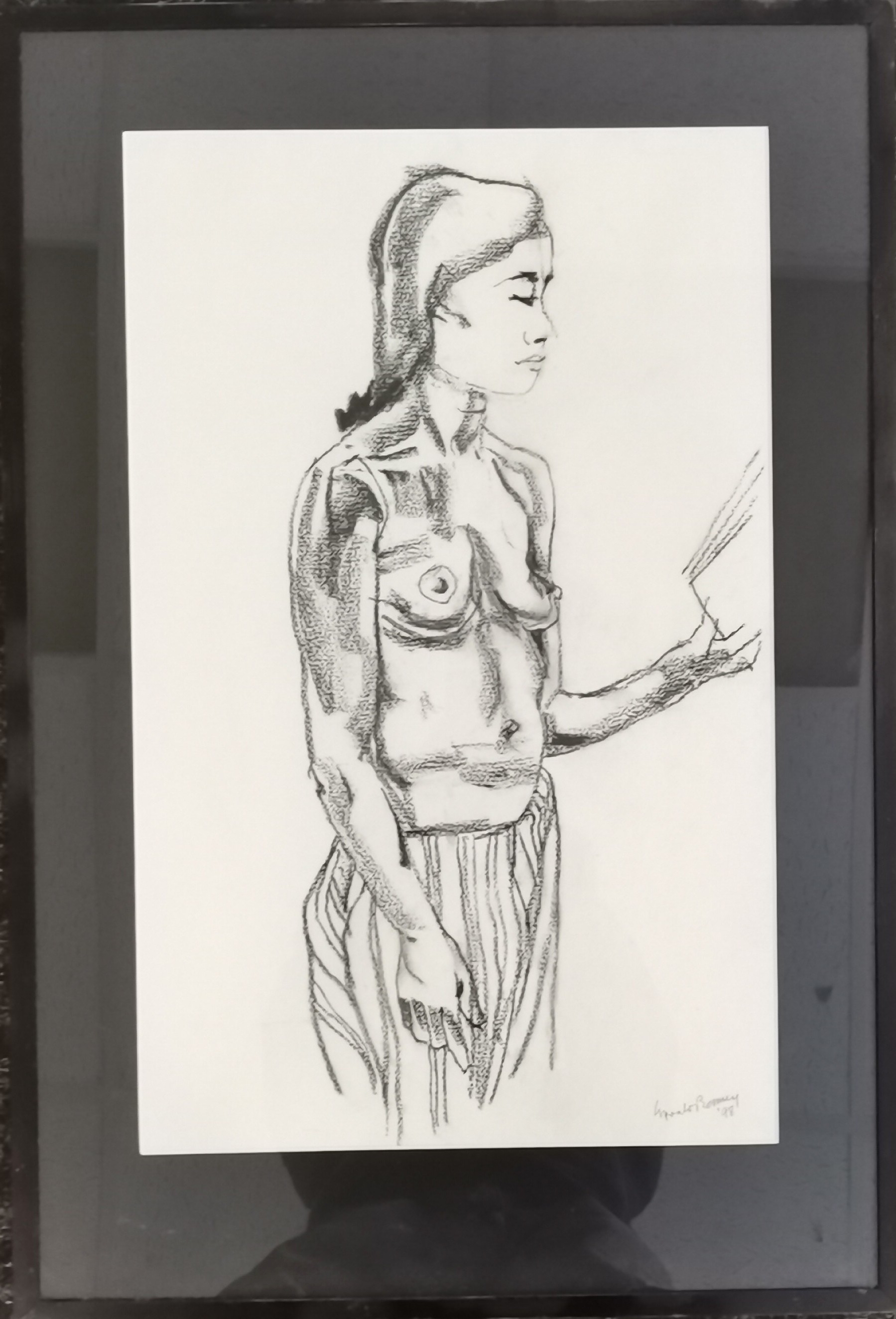 Gerald Benney (1930-2008) nude pastel drawing dated 1998 'Girl with page' - frame 67.5cm x 46cm