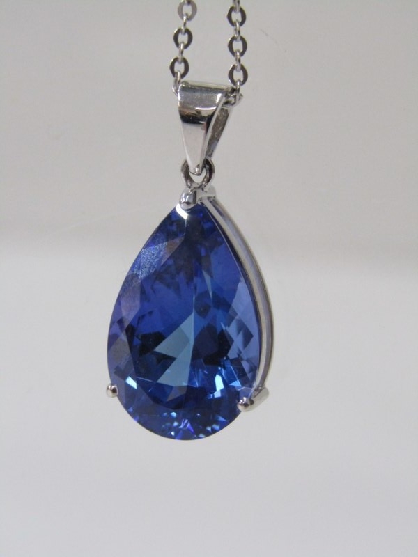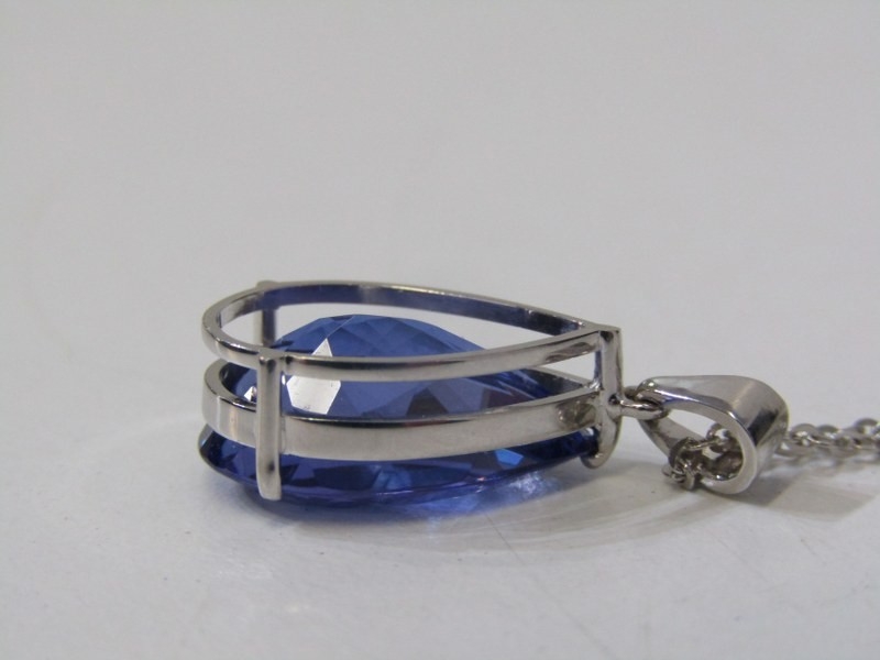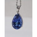 IMPRESSIVE TANZANITE PENDANT, tear drop shape tanzanite, approx. 7.55 carats, set in 18ct white gold mount, on fine link 18ct gold, 16" chain