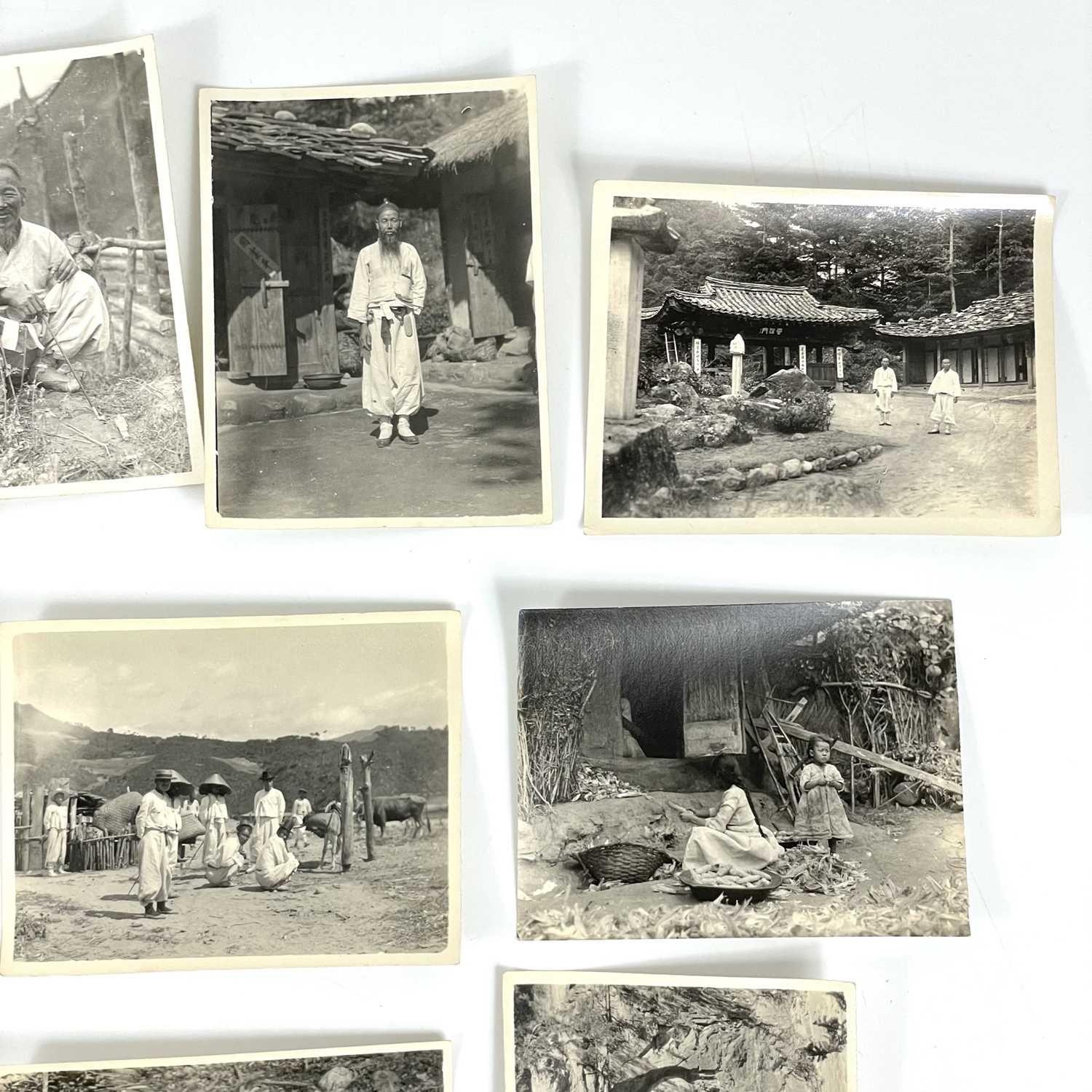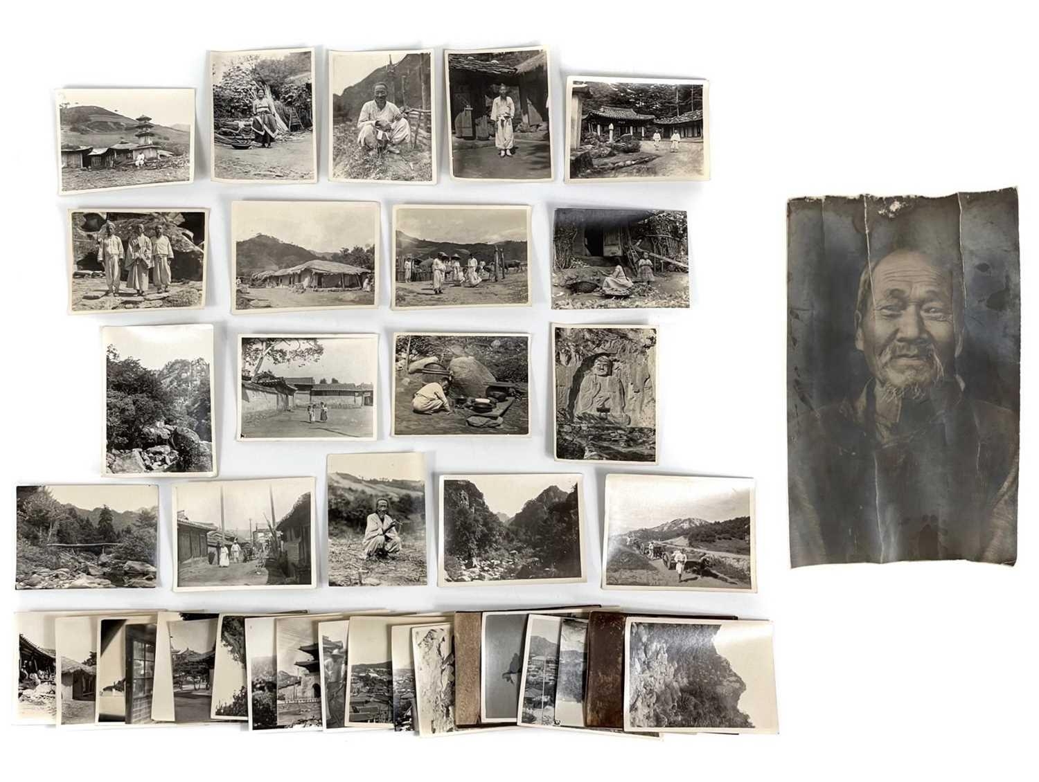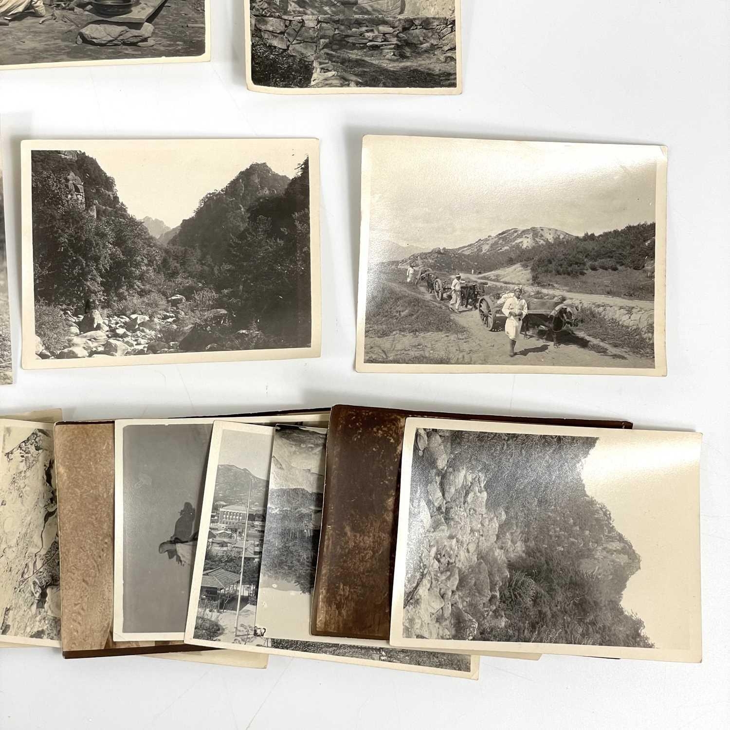 A collection of early 20th century photographs of China and Korea. Over thirty b+w photographs, depicting life in China and probably Korea, including street scenes, labourers, portraiture, architecture, landscapes, etc, shot by W. A. B. Leach using one of his many cameras which included a '3A Graflex' and 'Thornton Pickard Special Ruby', between the years 1902-1926, various sizes, largest 11cm x 8.5cm. (30+)
