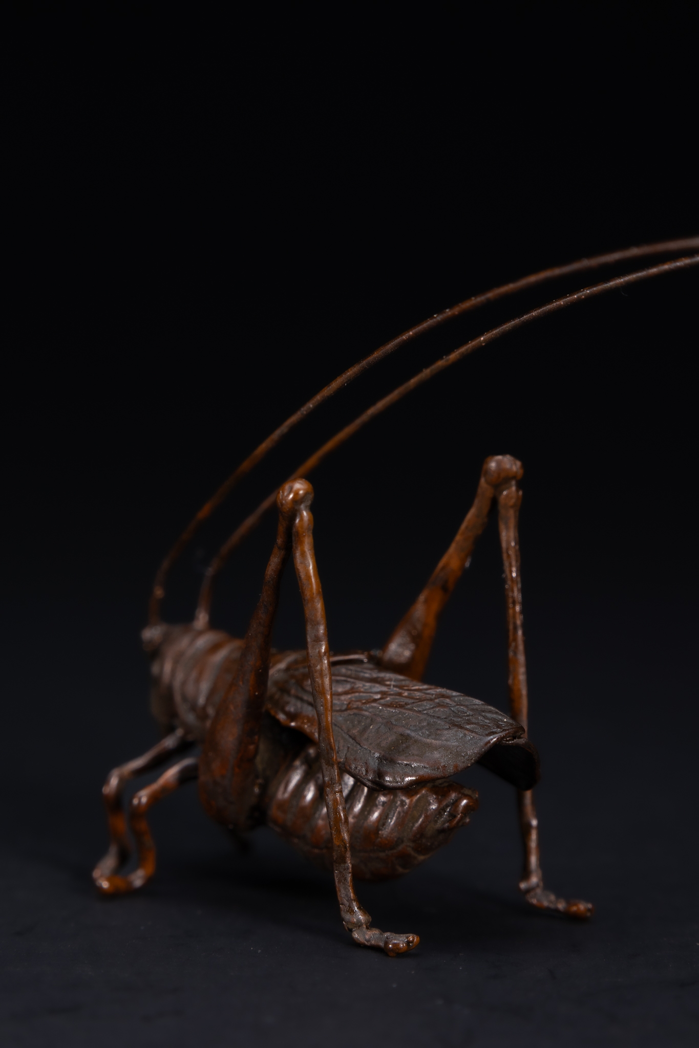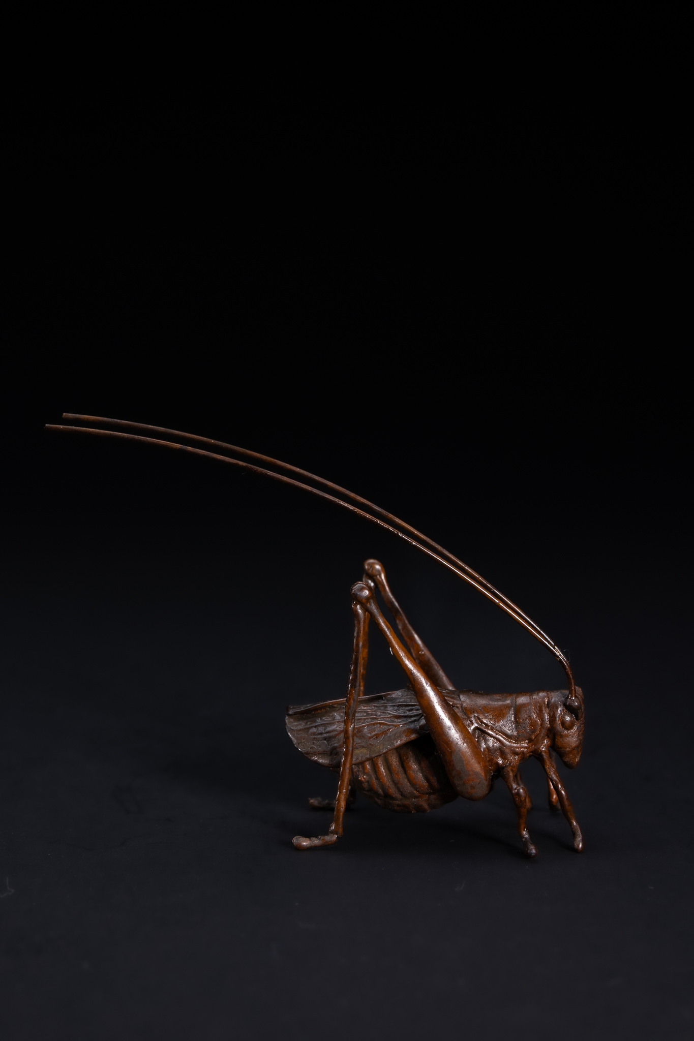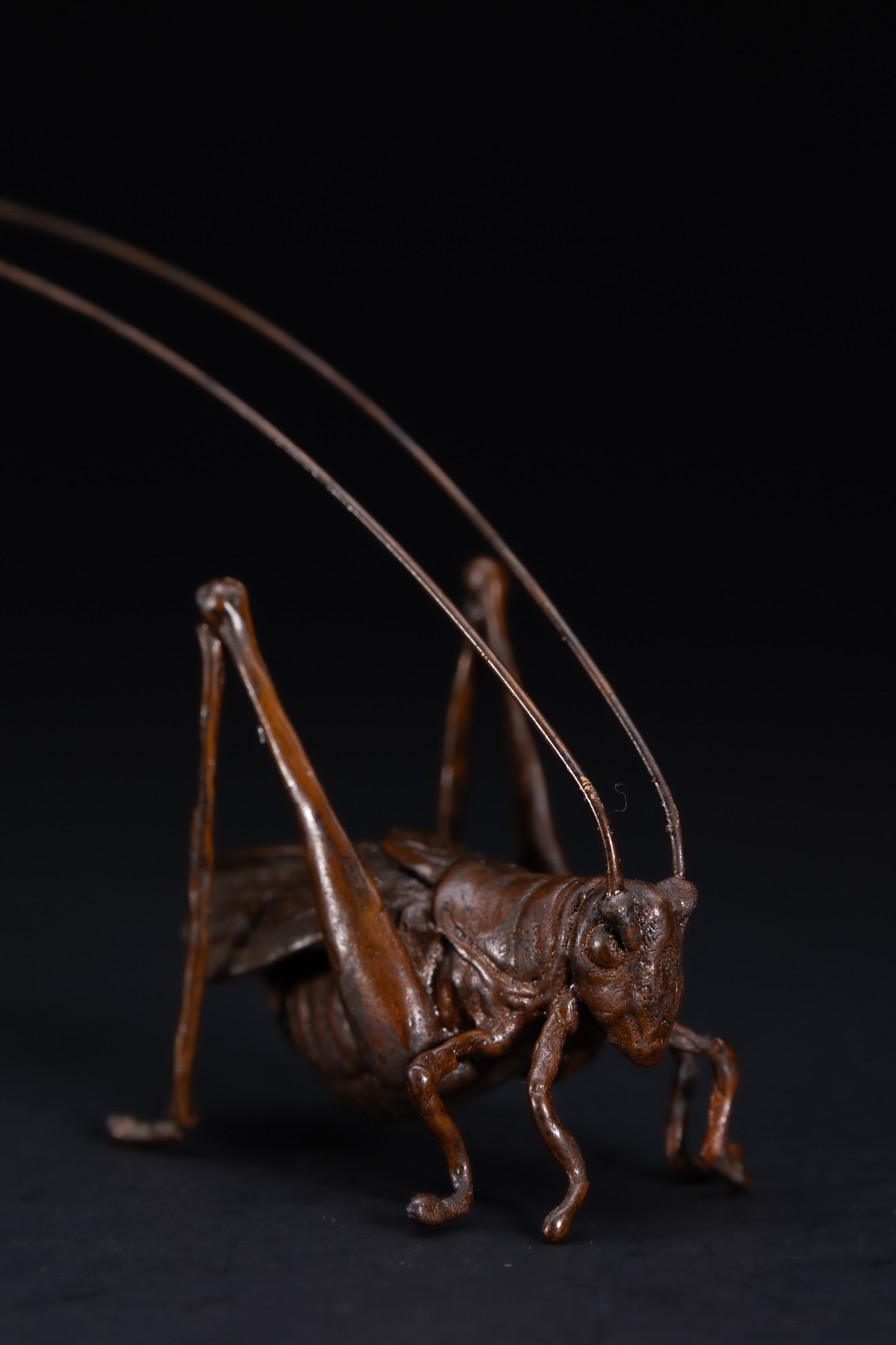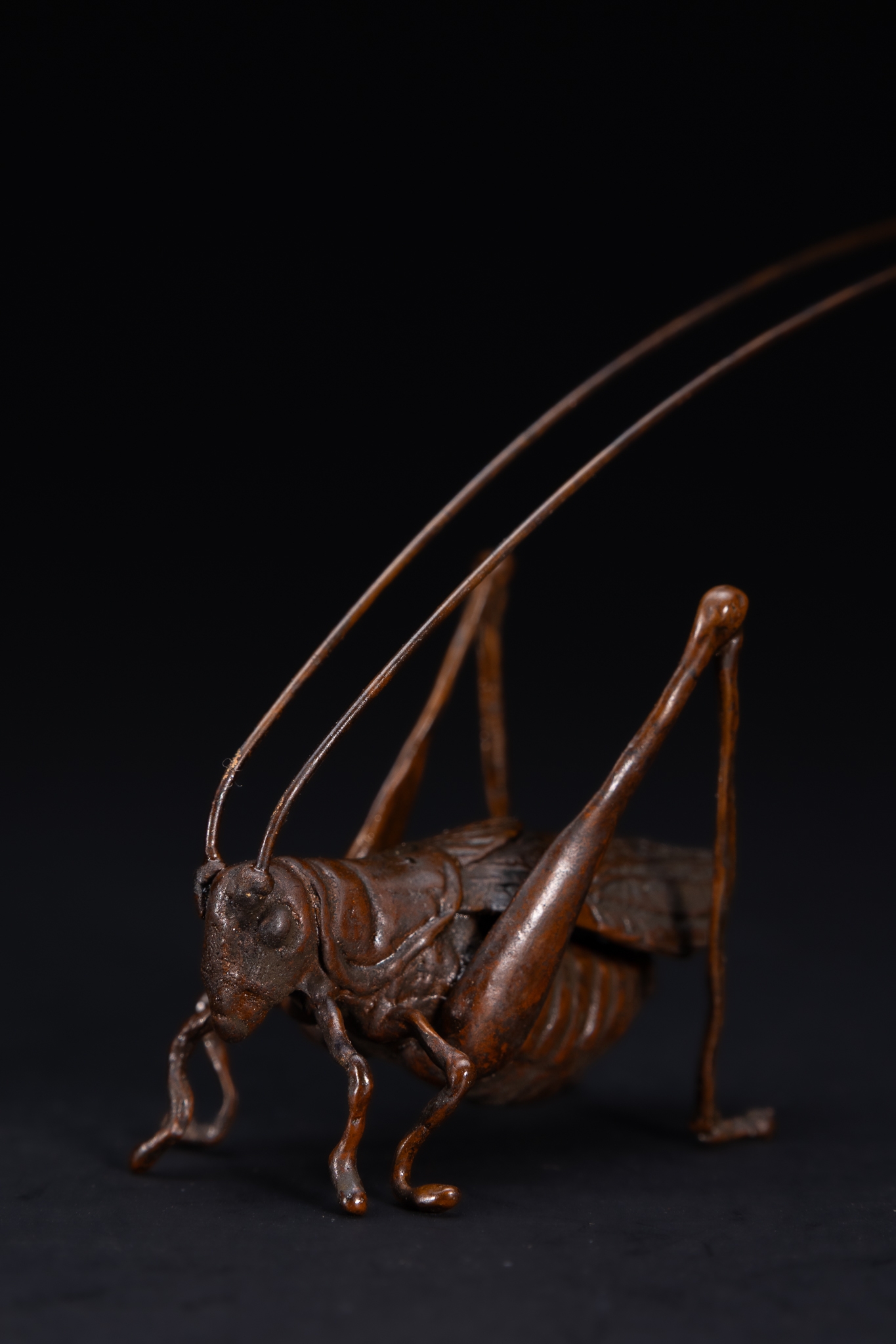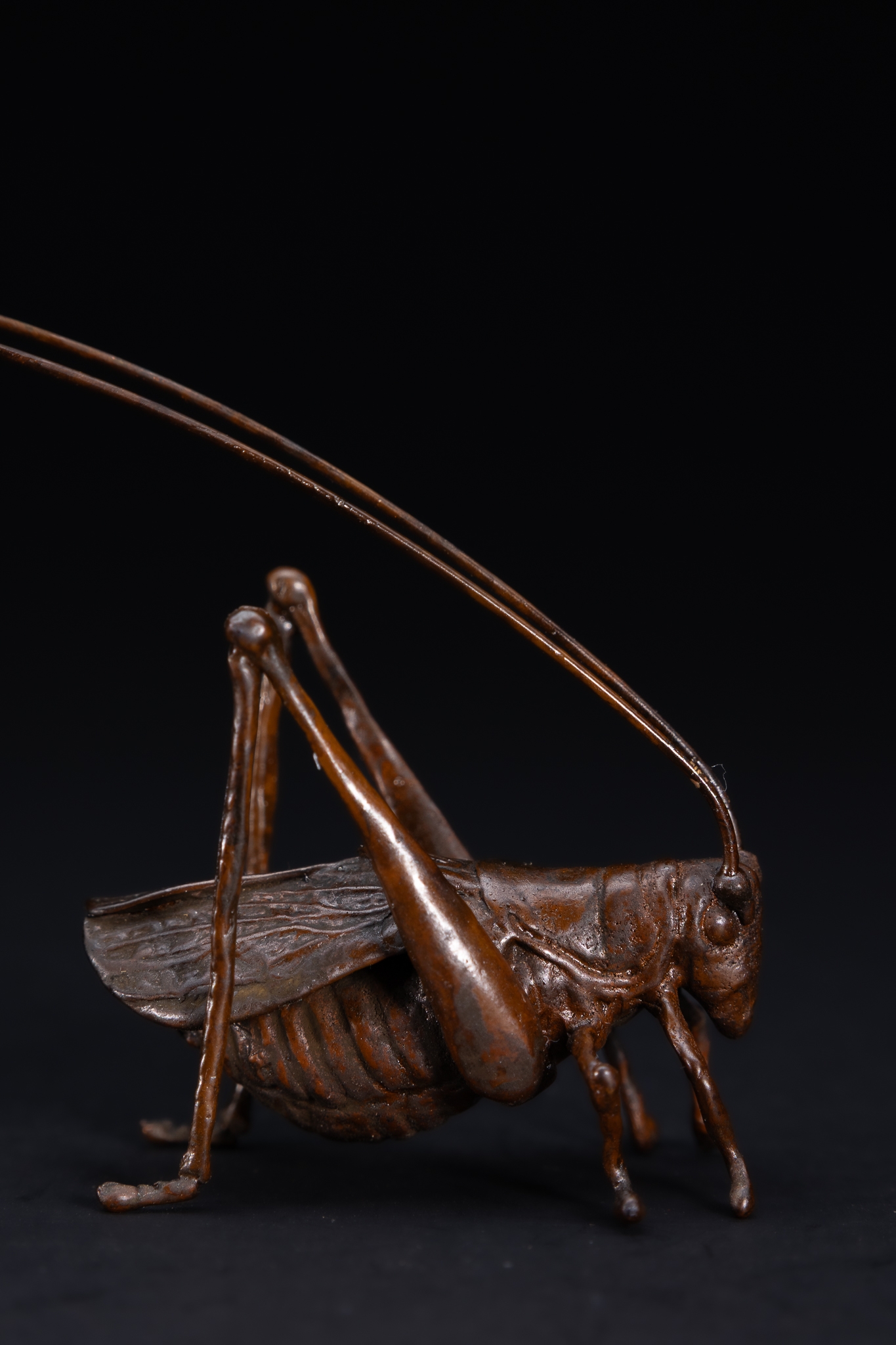 A Japanese Bronze Model of a Long-Horned Grasshopper.