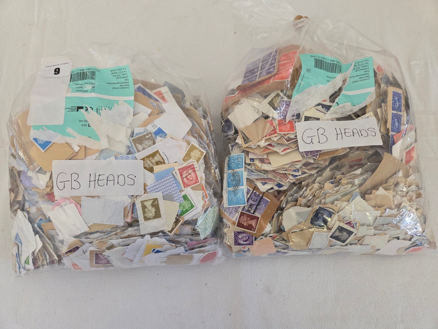 Two bags of cut used GB definitive stamps