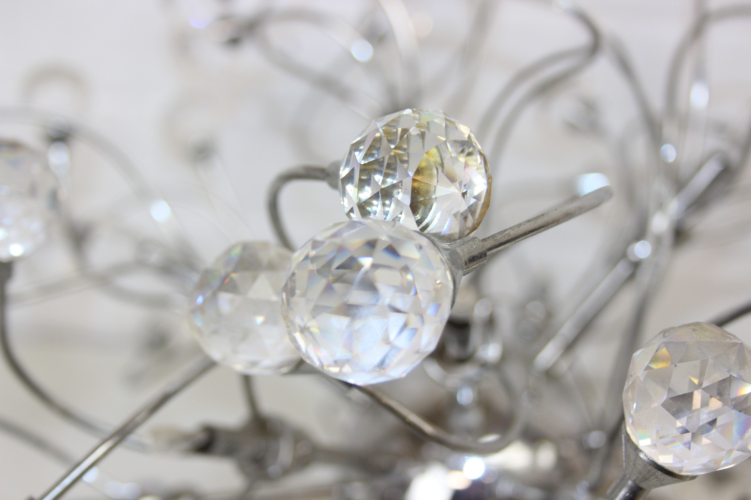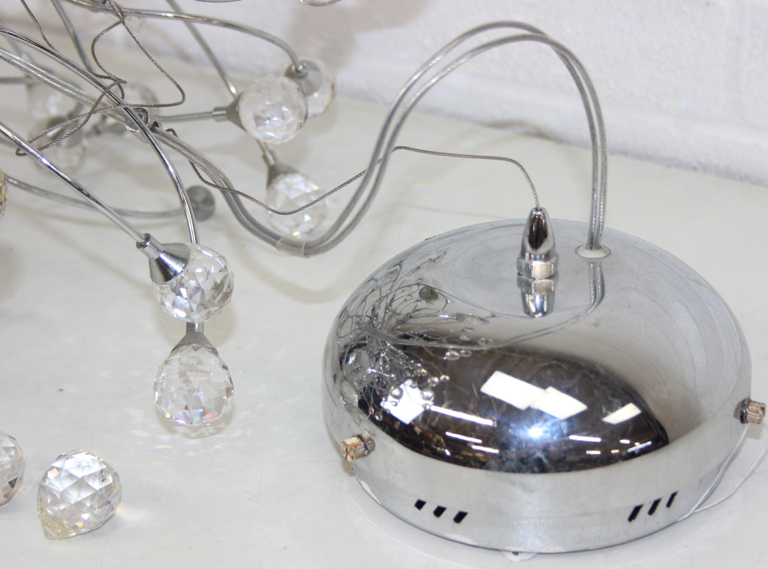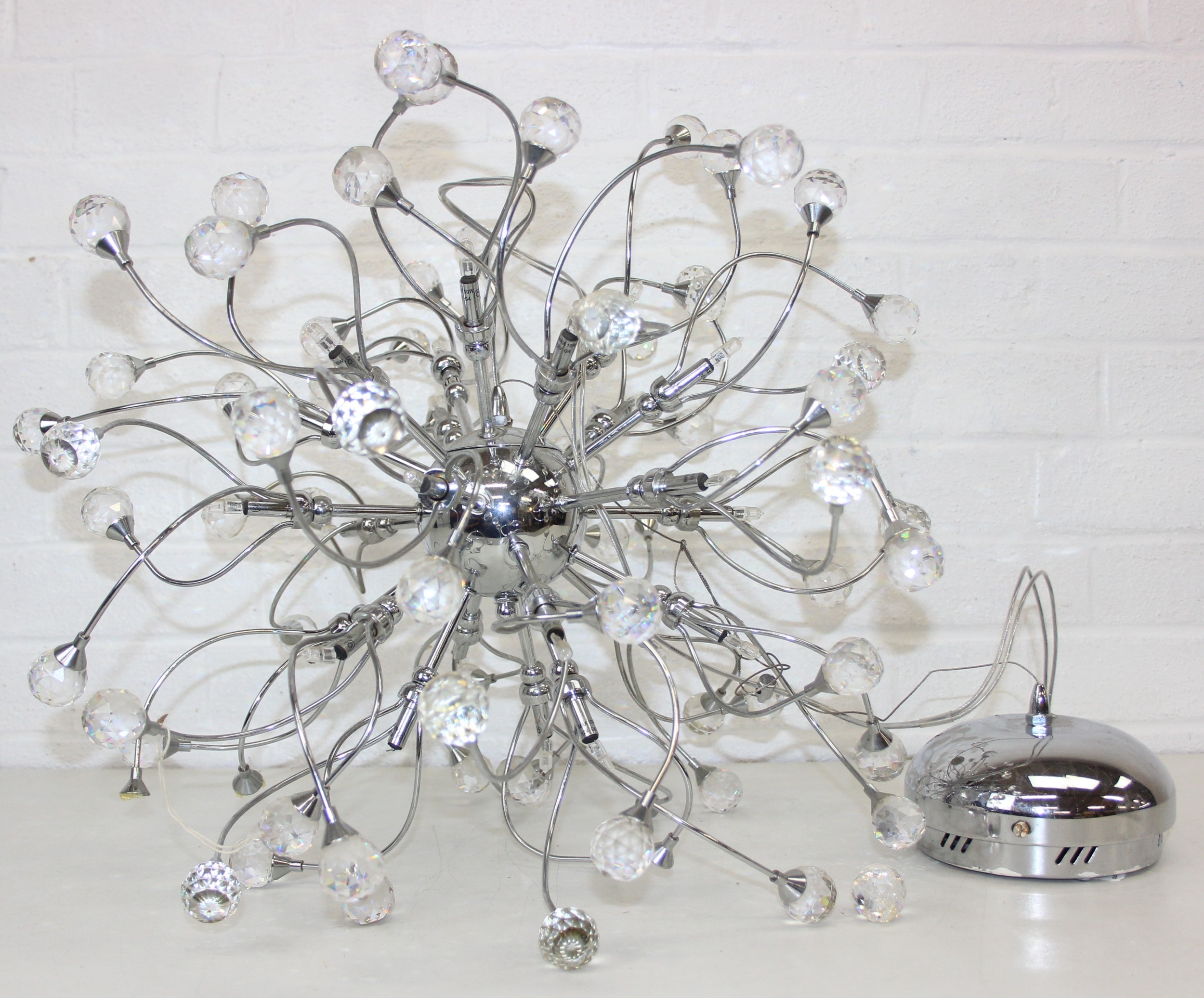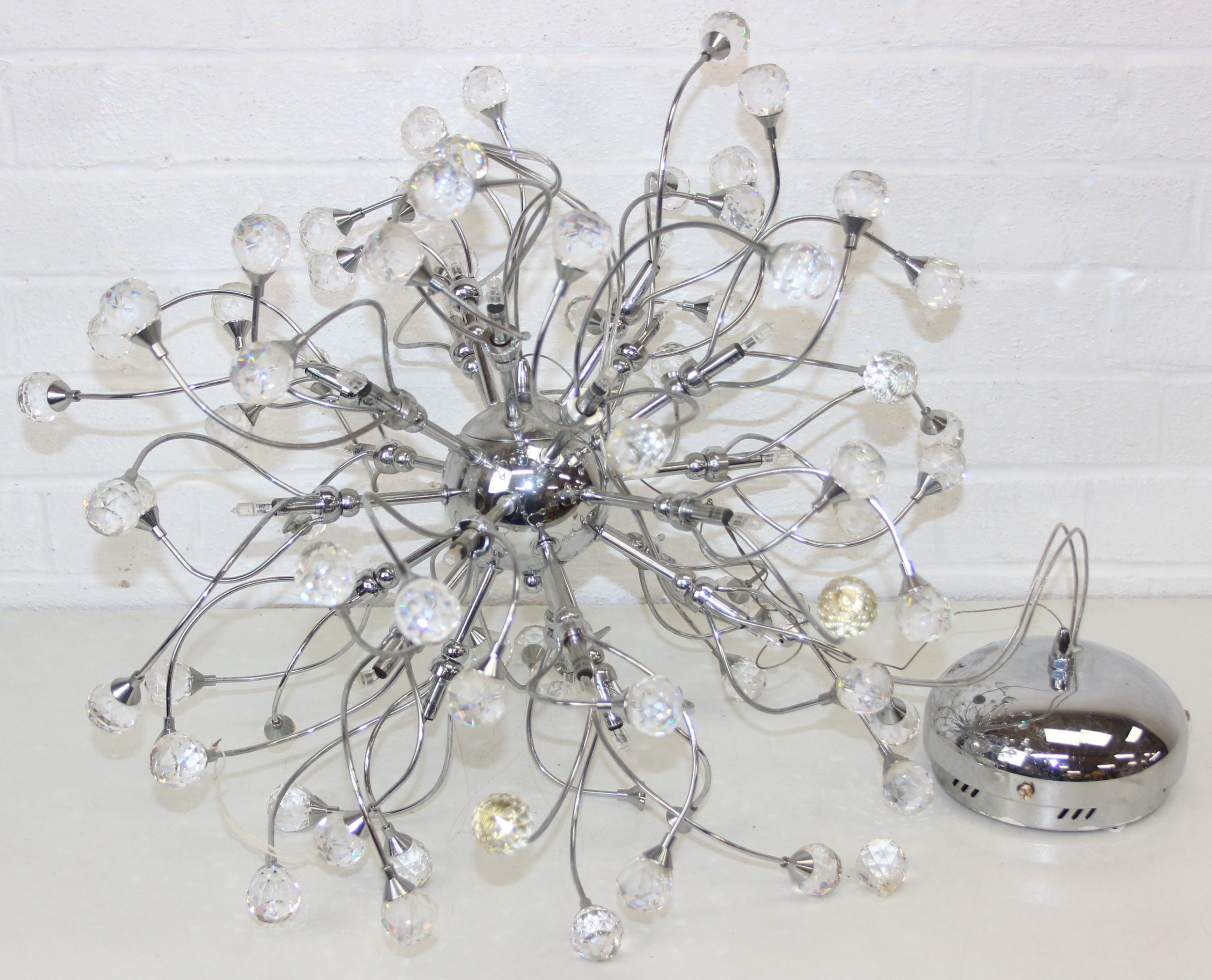 A retro style pendant light with chrome twisted body mounted with crystals, 60cm in diameter