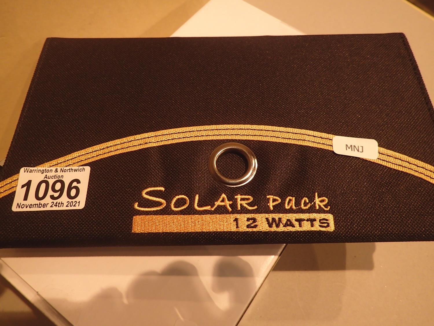 New old stock, 12 watt folding solar panel pack with two USB charging outputs. Integral part of case with magnetic catch and zipped pocket. Measures 260mm x 160mm folded and 410mm x 260mm open. Working at time of lotting. P&P Group 1 (£14+VAT for the first lot and £1+VAT for subsequent lots)