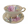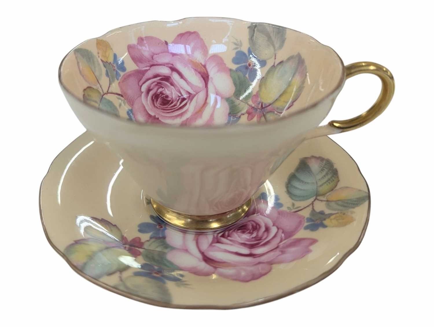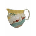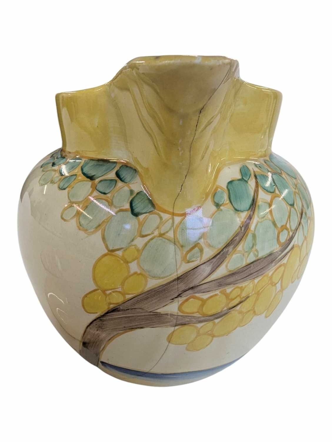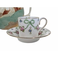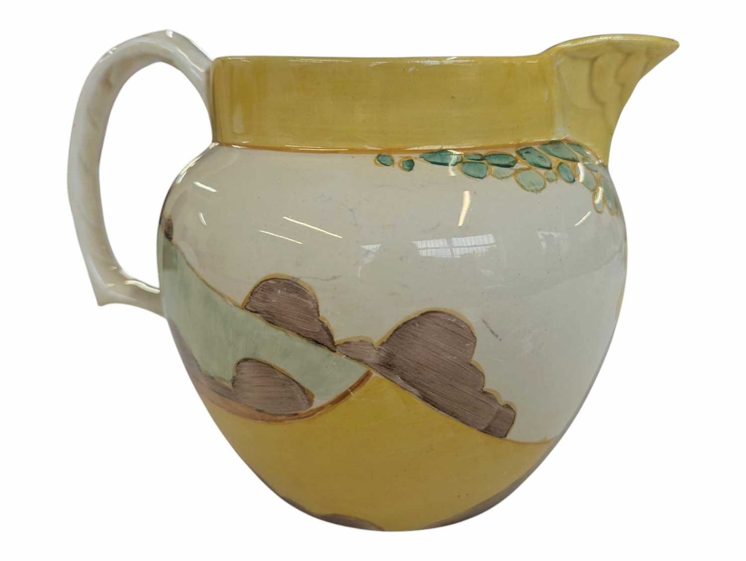 Early 20th century Clarice Cliff pottery jug accompanied by a Paragon tea cup and saucer, and a Crown Staffordshire coffee cup and saucer. Clarice Cliff jug decorated in the Secrets pattern. Crown Staffordshire coffee cup and saucer decorated in a green swags / ribbon and roses. Largest measuring approx. 14cm tall. Sold as seen.