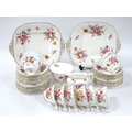 A Royal Crown Derby Porcelain Part Tea Service, decorated in the 'Derby Posies' Pattern, comprising: two bread and butter plates, sugar bowl, milk jug, twelve side plates, twelve saucers and ten tea cups, printed marks, date codes for 1930's. (38)