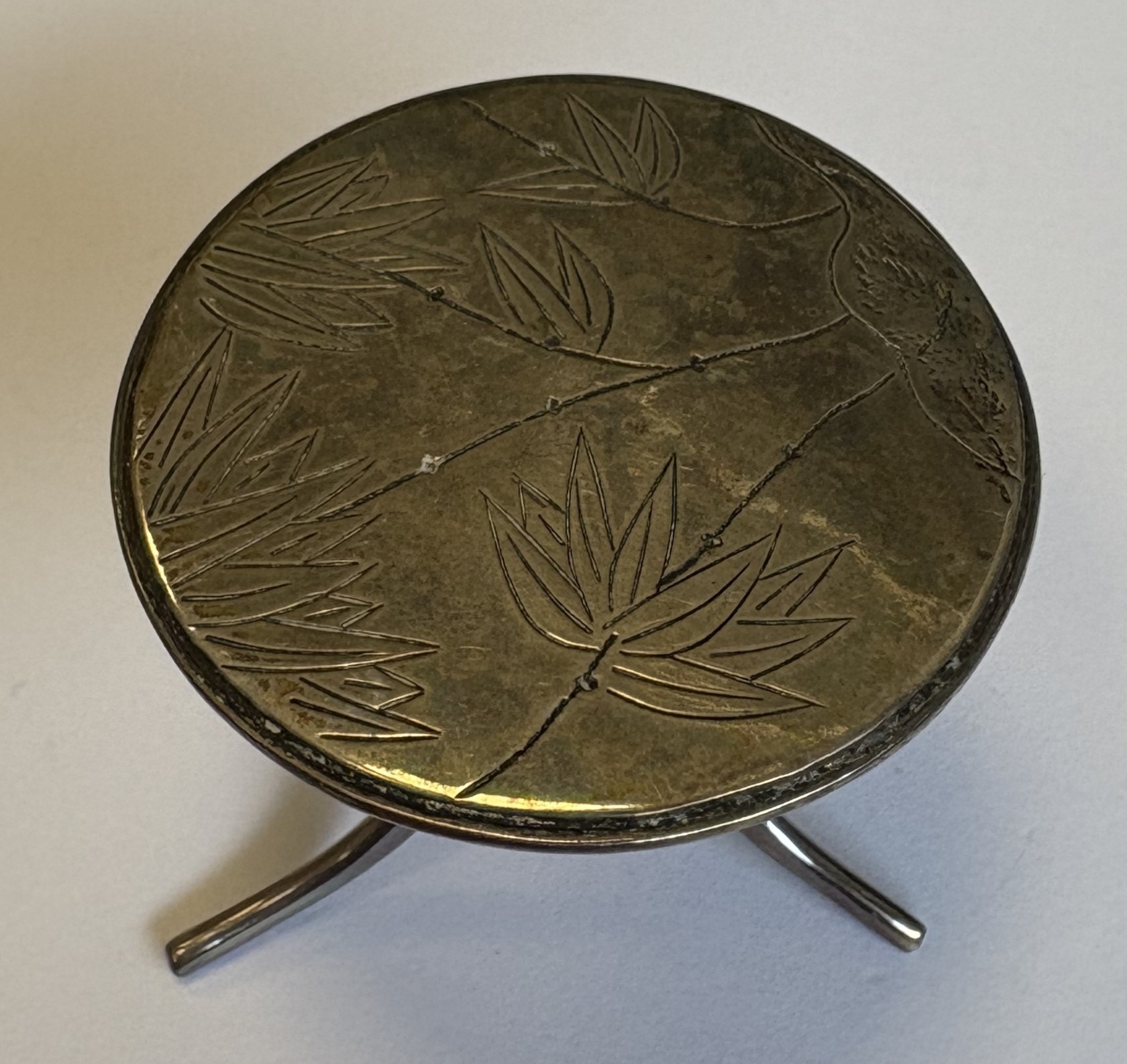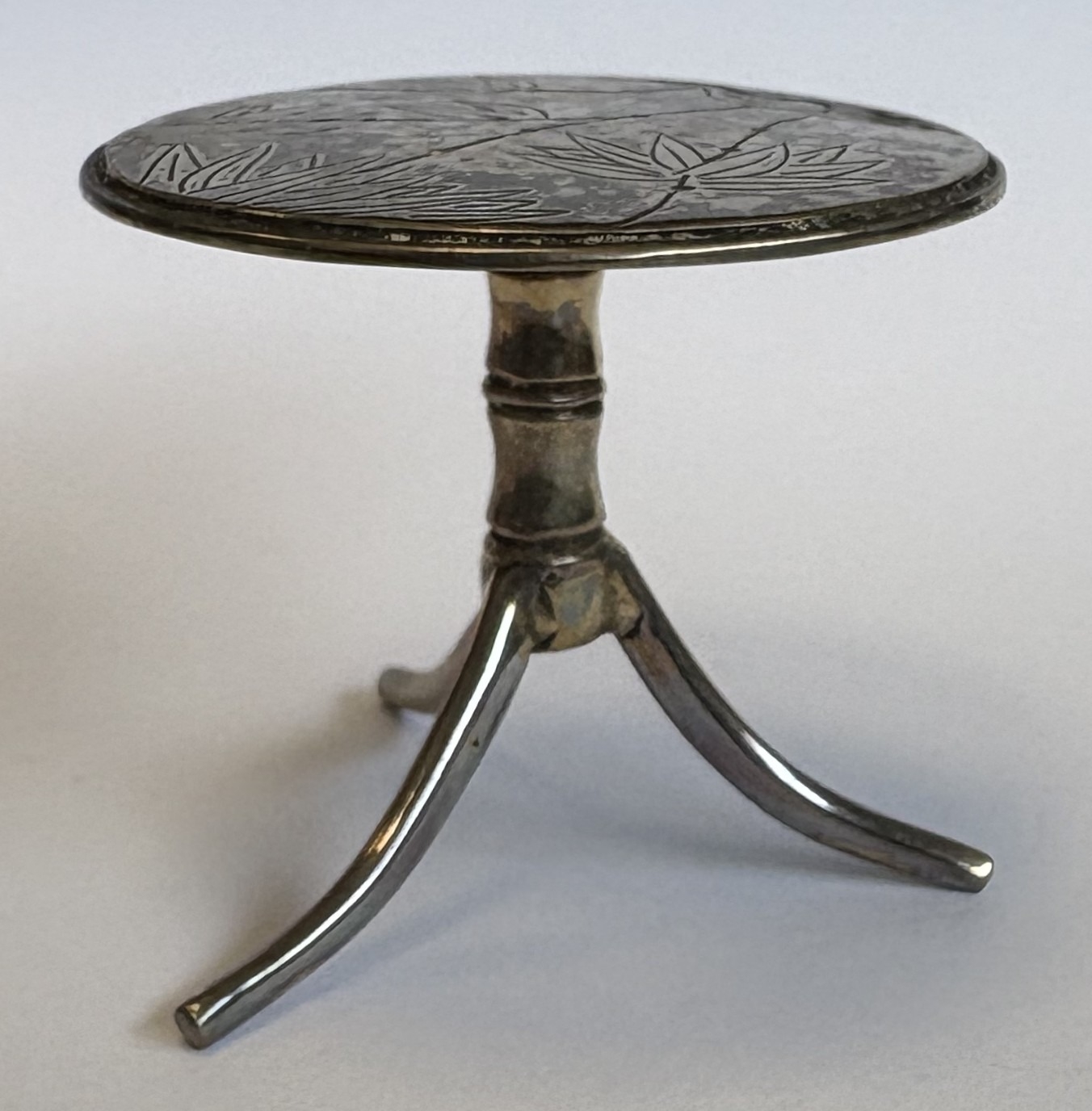 A miniature Chinese silver table with bamboo decoration. Approx. 17 grams. Est. £20 - £30.