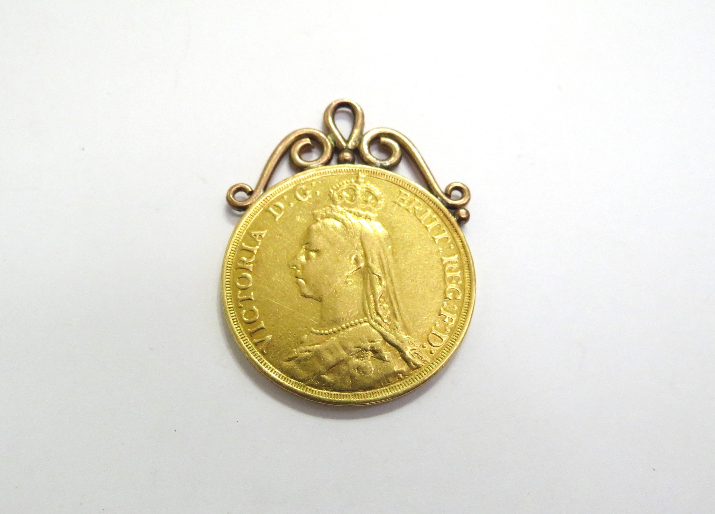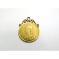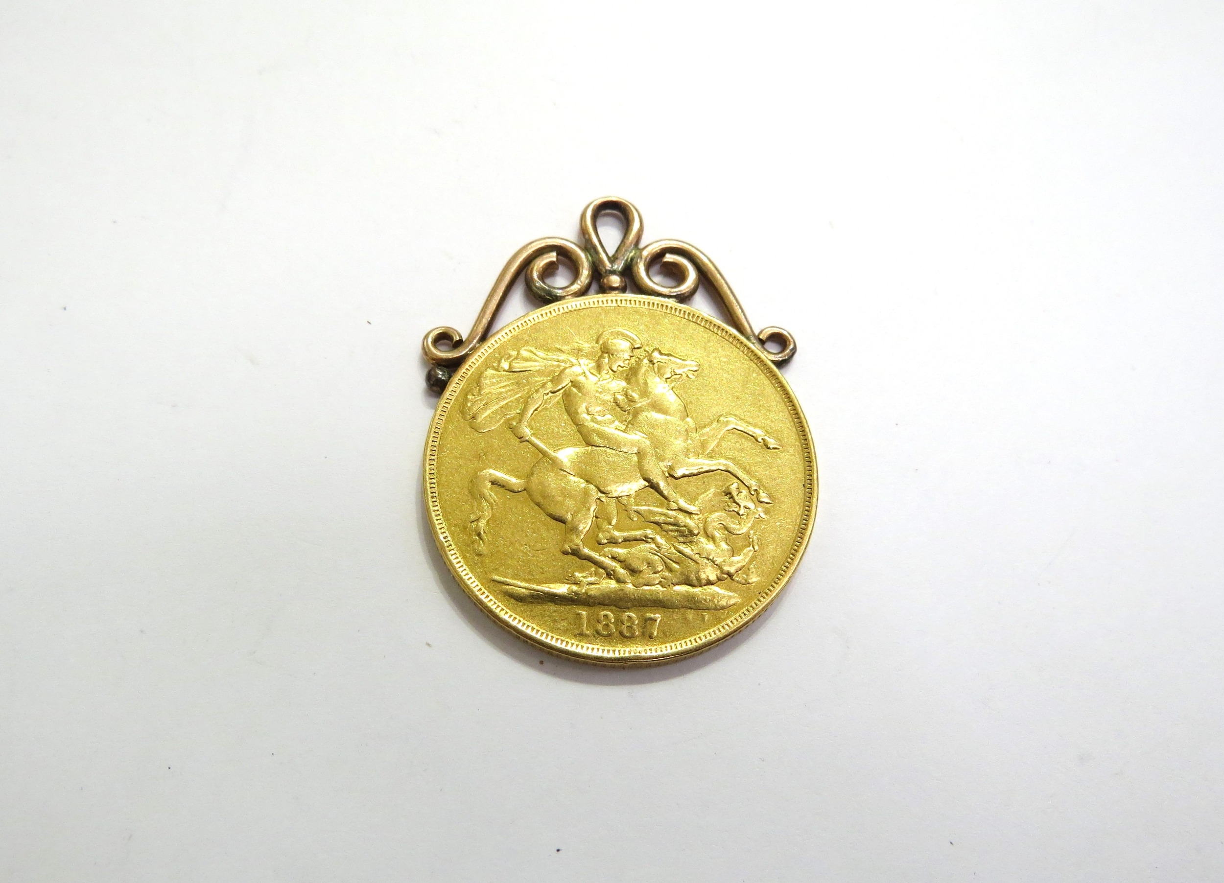 An 1887 gold double sovereign (£2) with soldered pendant loop, 17.4g